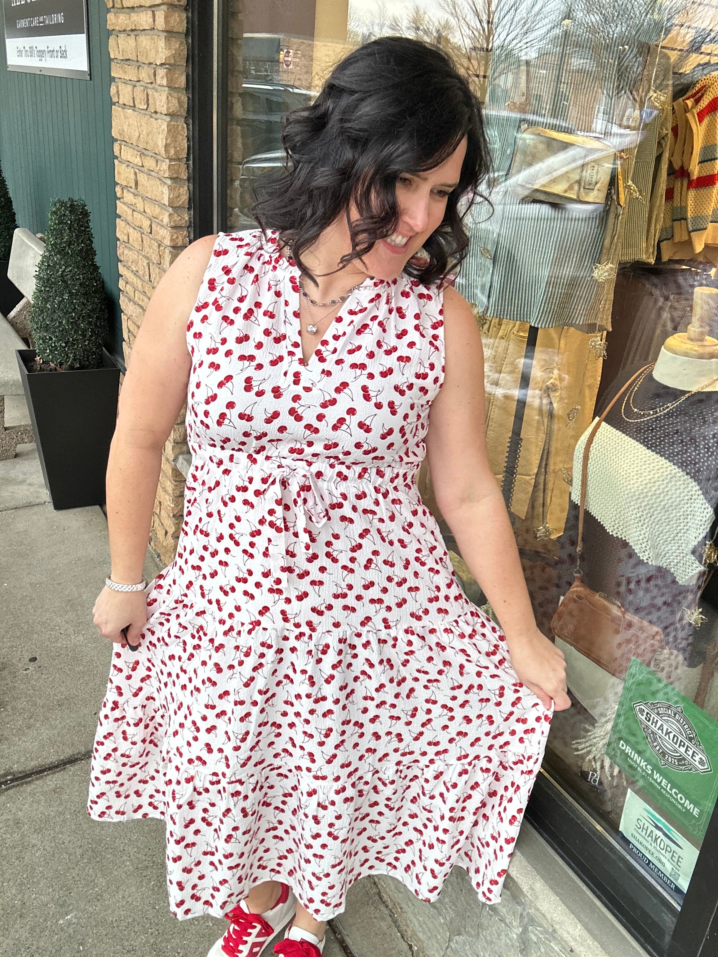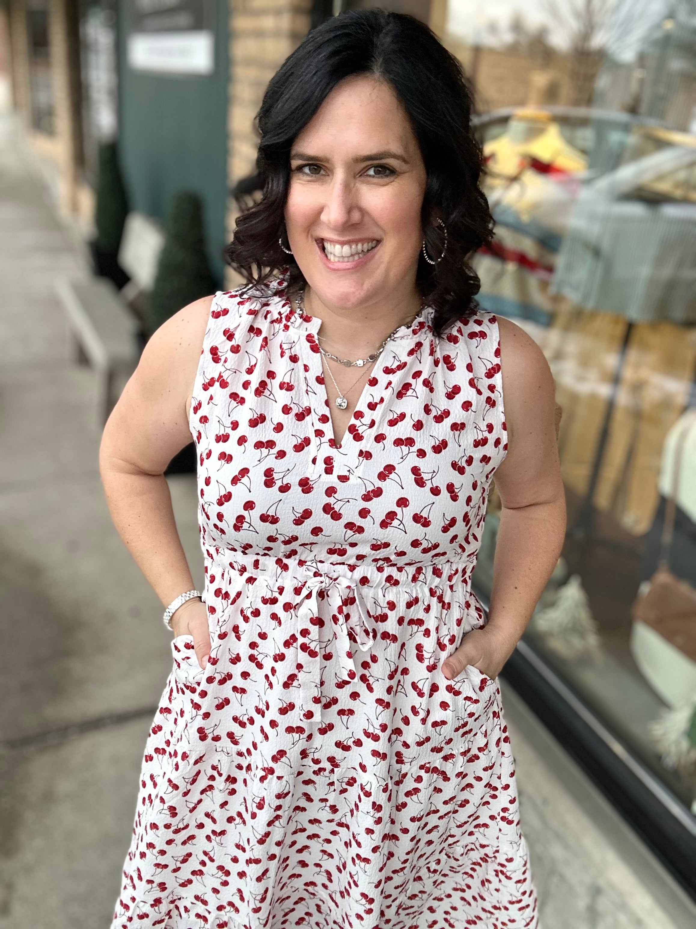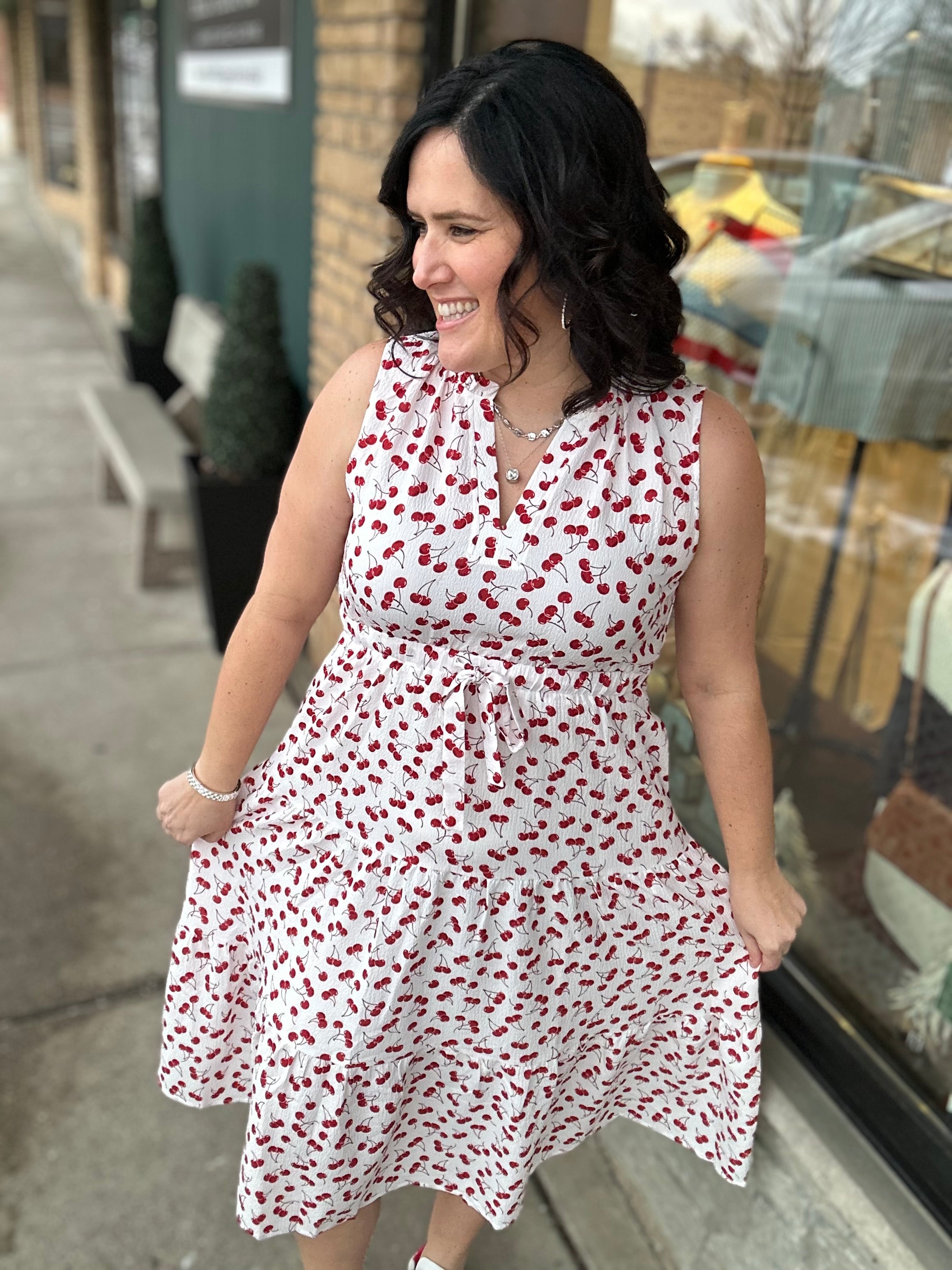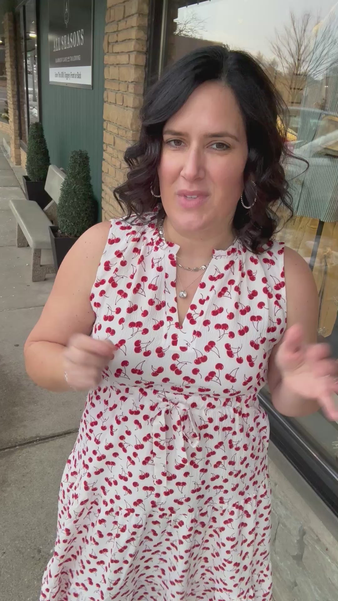 Sweet, playful, and effortlessly flattering—this cherry print dress is made for sunshine-filled days and feel-good moments. It’s feminine without trying too hard and comfortable enough to wear all day long.