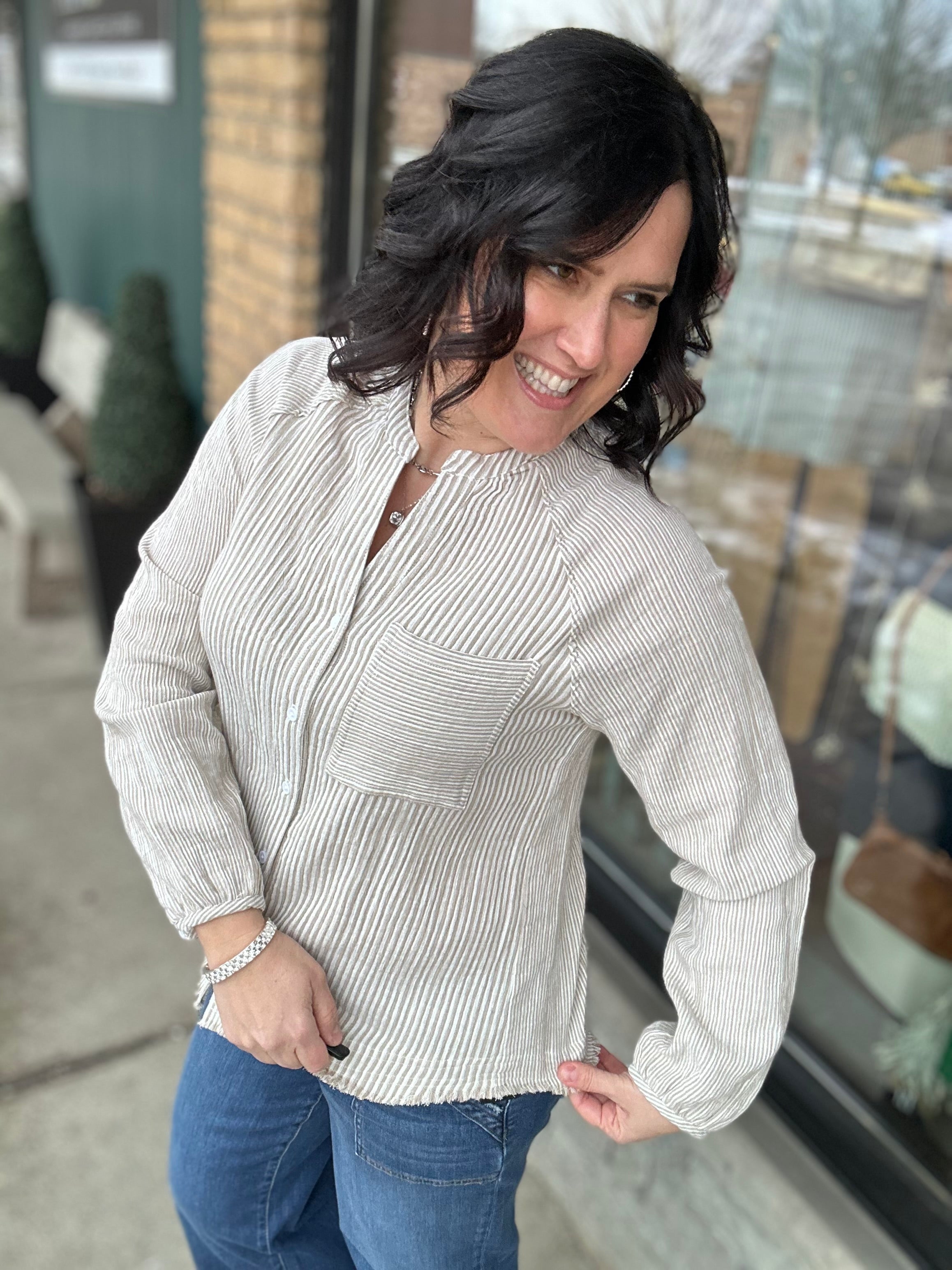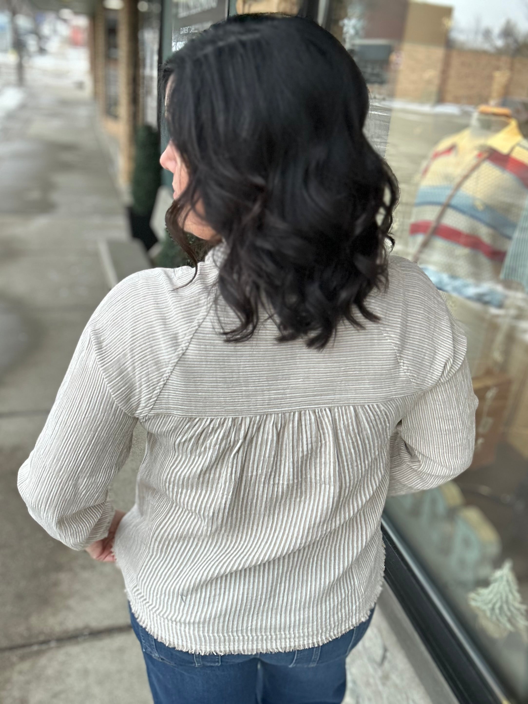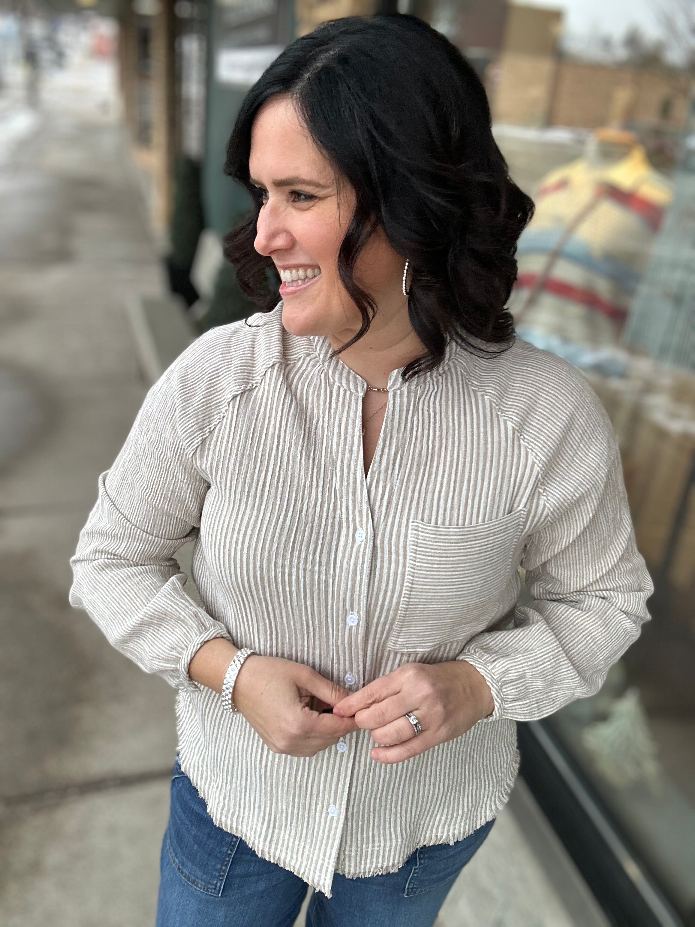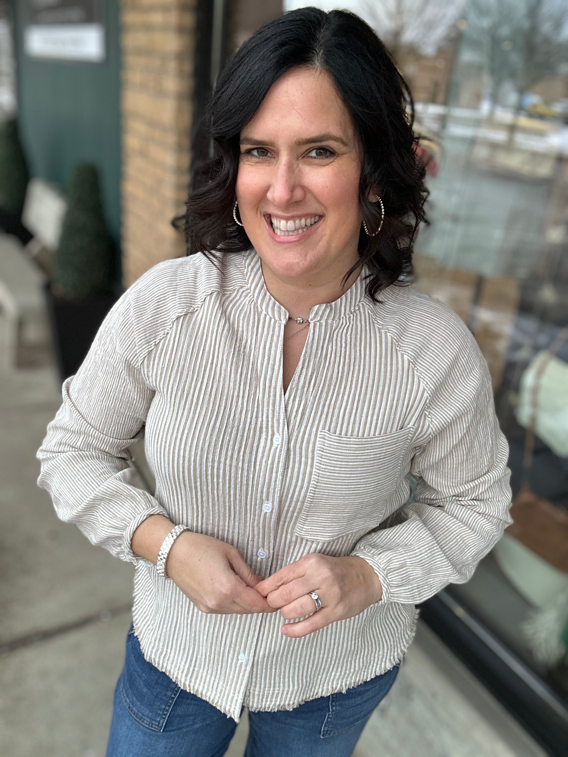 Effortless, lightweight, and endlessly wearable — the Maia Shirt from Thread & Supply is the kind of piece that instantly makes you feel polished without trying too hard. With its soft striped design and airy cotton feel, this button-down is a closet staple you’ll reach for season after season.