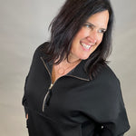 The Ease Half Zip Pullover is the definition of comfort-meets-style. With its sleek half-zip neckline, relaxed silhouette, and buttery soft fabric blend, it’s the layer you’ll want to live in season after season. Whether you’re lounging at home, running errands, or heading out with friends, this pullover keeps you looking put-together while feeling completely at ease.