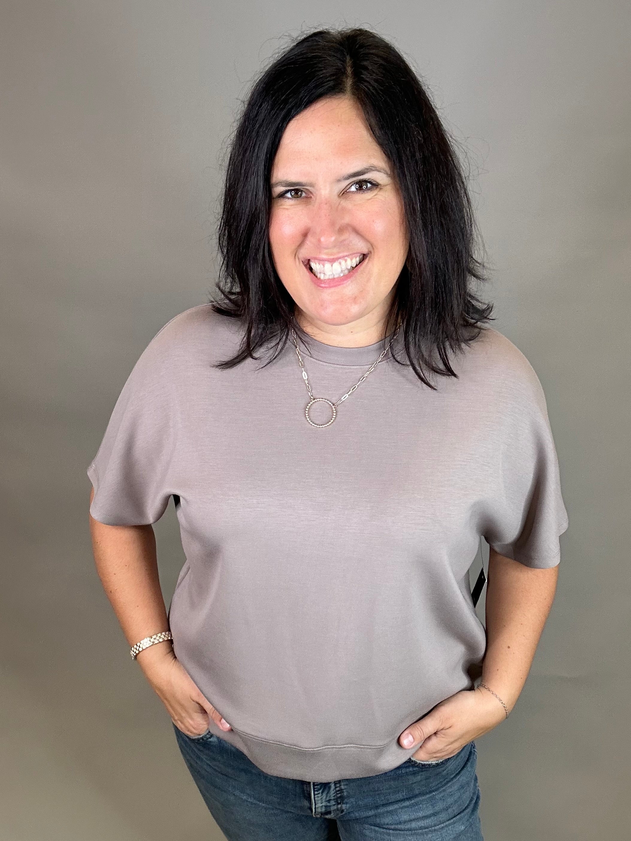 ✨ How it makes you feel: Put-together yet carefree. It’s the kind of tee that looks elevated while still feeling like your comfiest lounge piece—soft, stretchy, and confidence-boosting.
