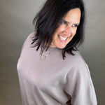 No defined shoulder seams + slight batwing sleeves for a drapey, relaxed vibe