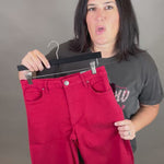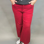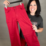 Make a bold statement with the Ruby Red Meg Jeans—a vibrant twist on your favorite wide-leg silhouette. With their flattering Fab Ab pockets and striking color, these jeans are made to stand out while keeping you comfortable and confident all day long.