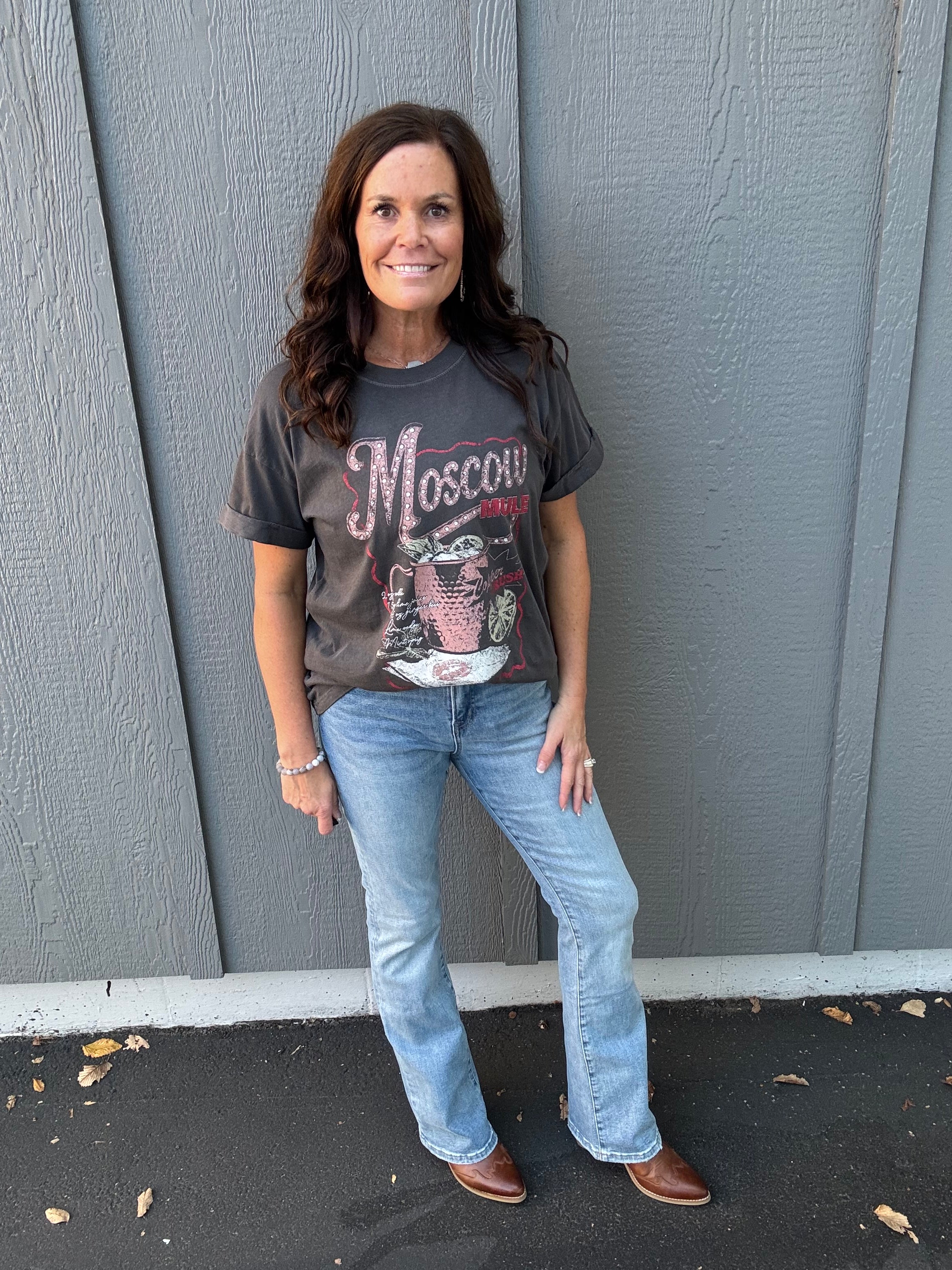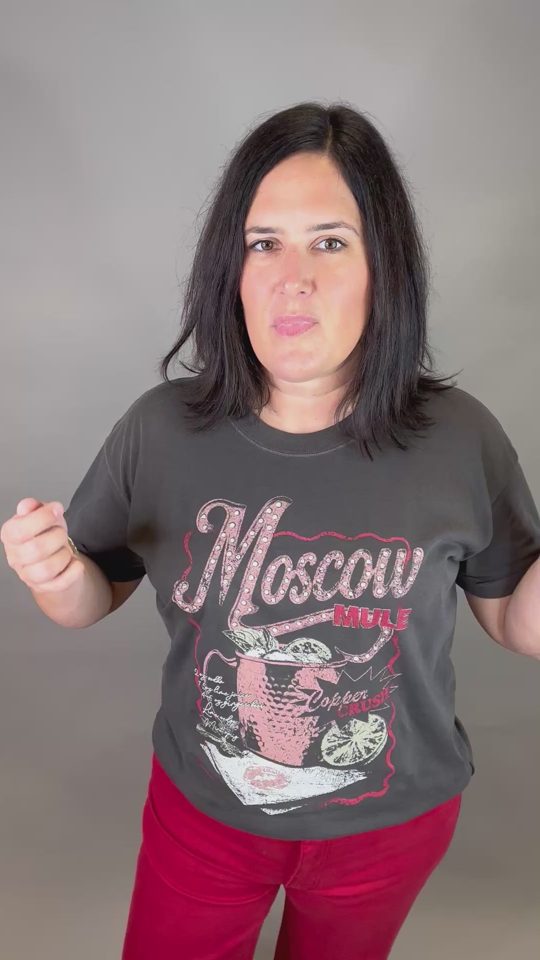 Sip, savor, and style—this tee is all about effortless cool. The Vintage Black Moscow Mule Tee gives you that relaxed, borrowed-from-the-boys vibe with a touch of feminine detail in its rolled cuff sleeves. The Moscow Mule graphic adds a playful edge, making it a must-have for casual days that deserve a little personality.