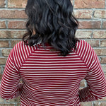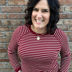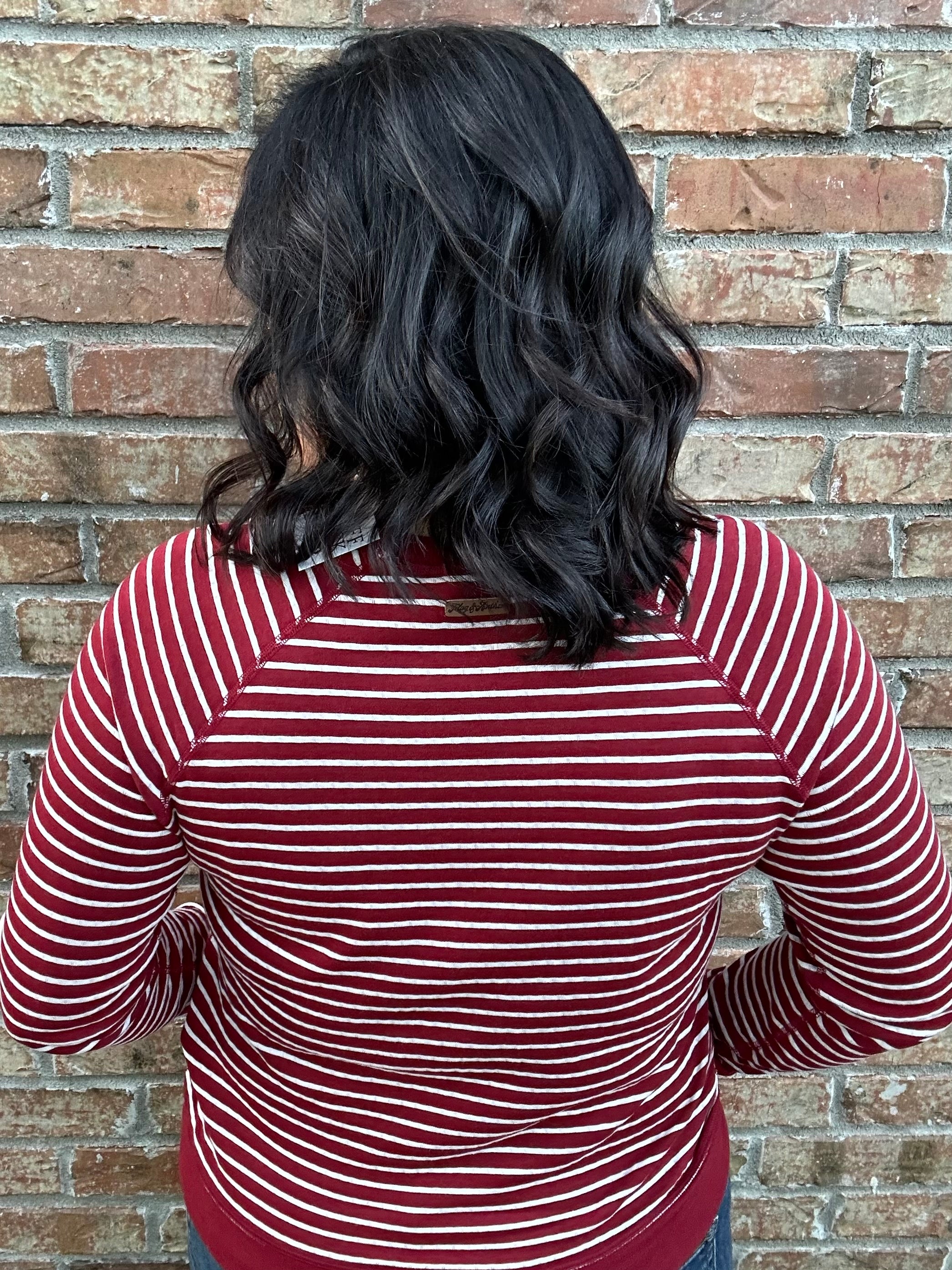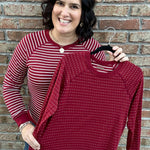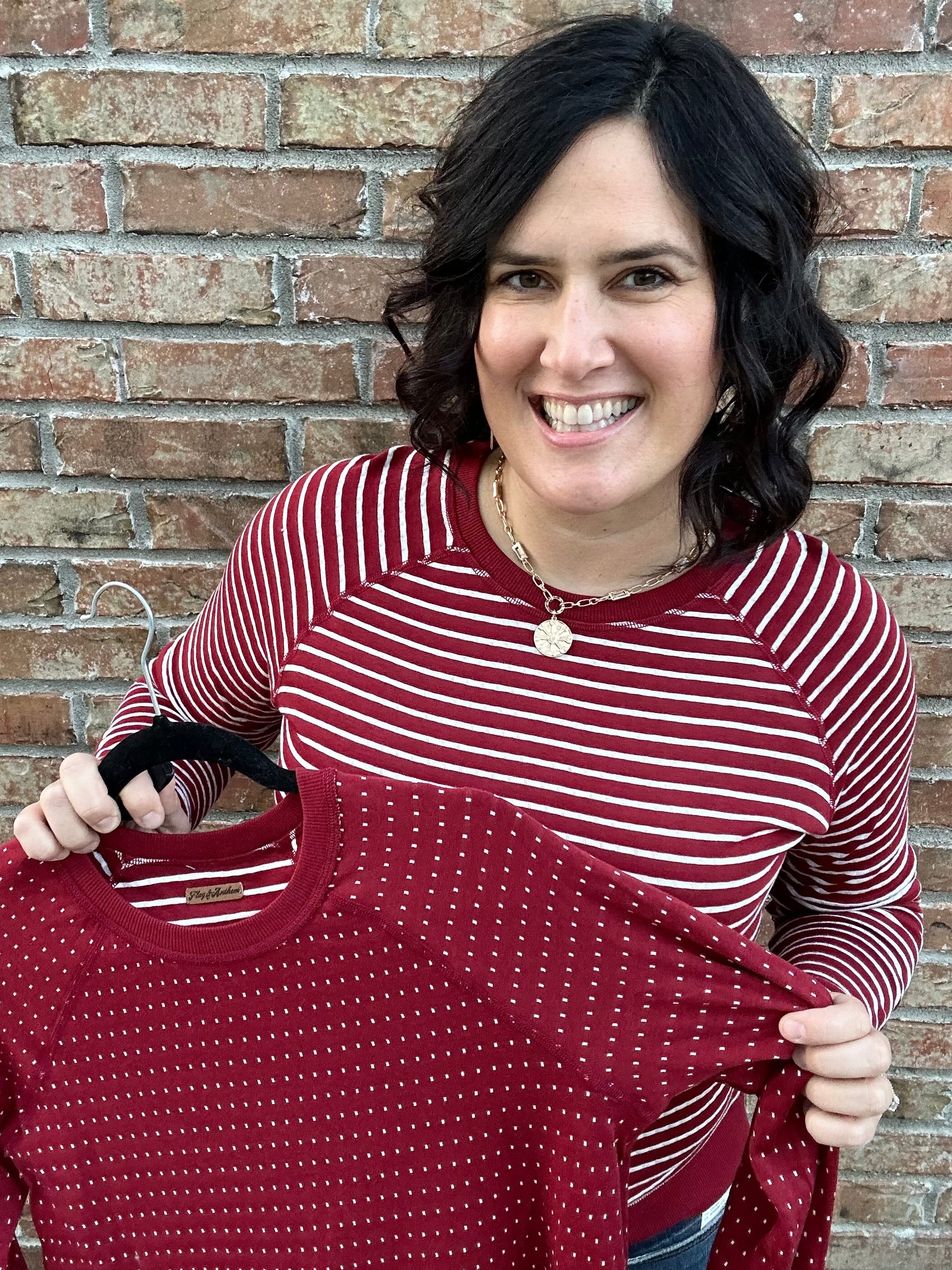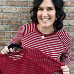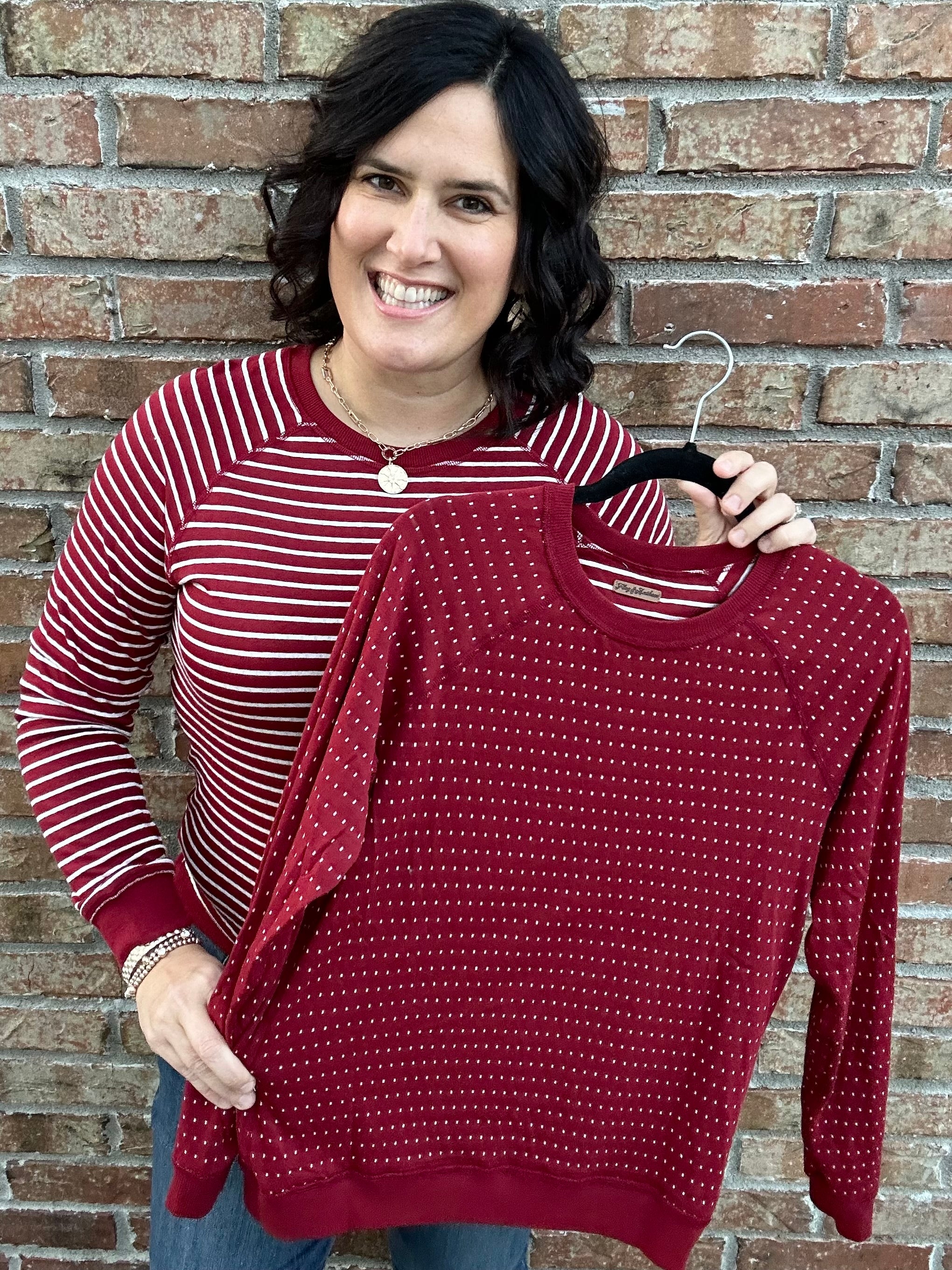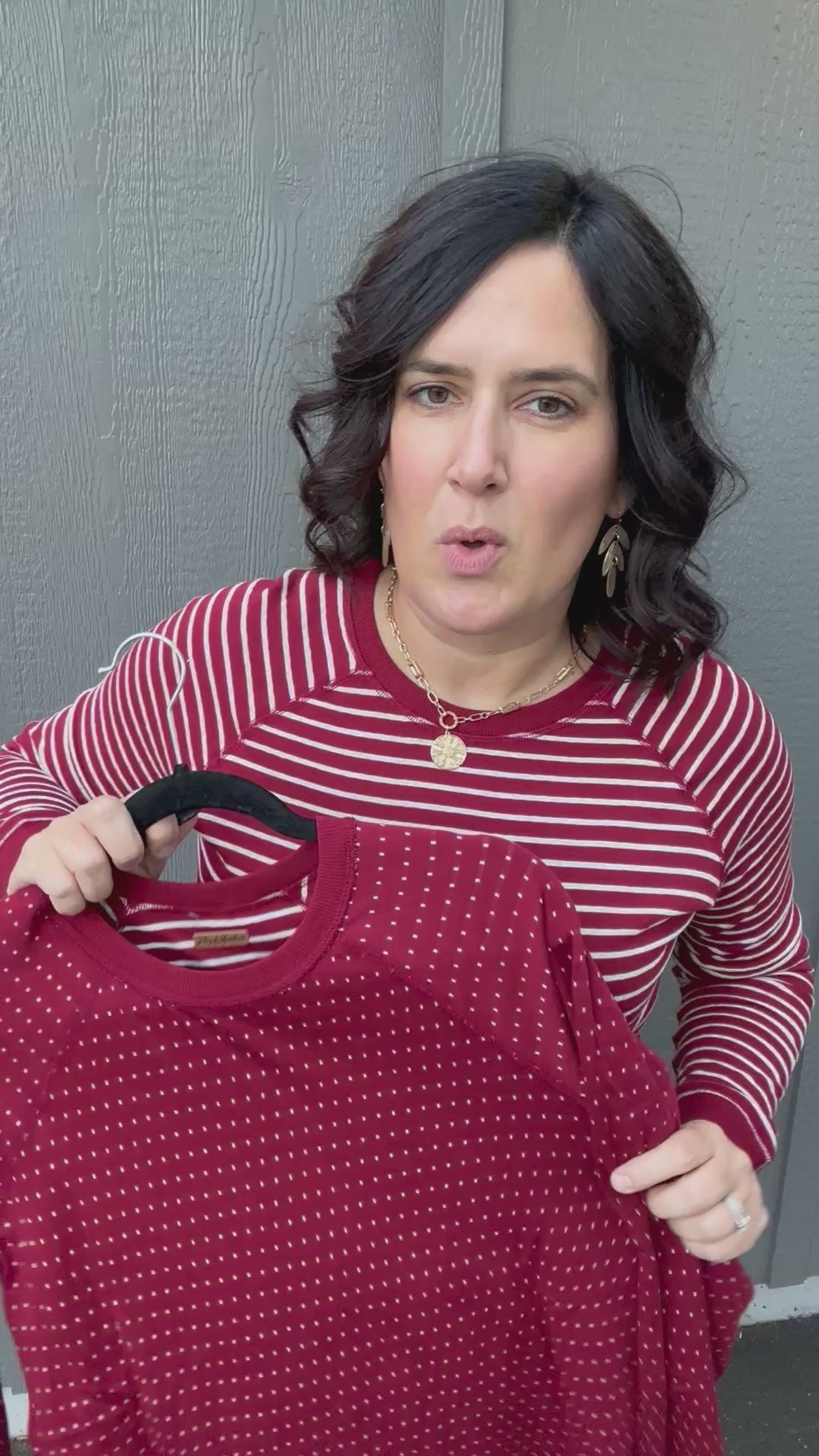 Double the style, double the comfort — the Berry Frannie Reversible Top from Flag and Anthem is the ultimate versatile essential. Crafted from a soft, breathable rayon-cotton blend, this reversible long-sleeve top gives you two cozy looks in one: bold berry stripes on one side and sweet white polka dots on the other.