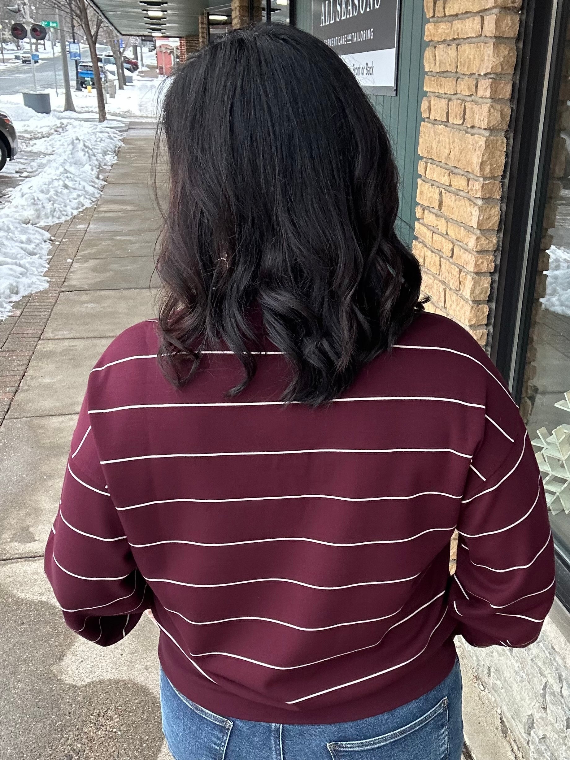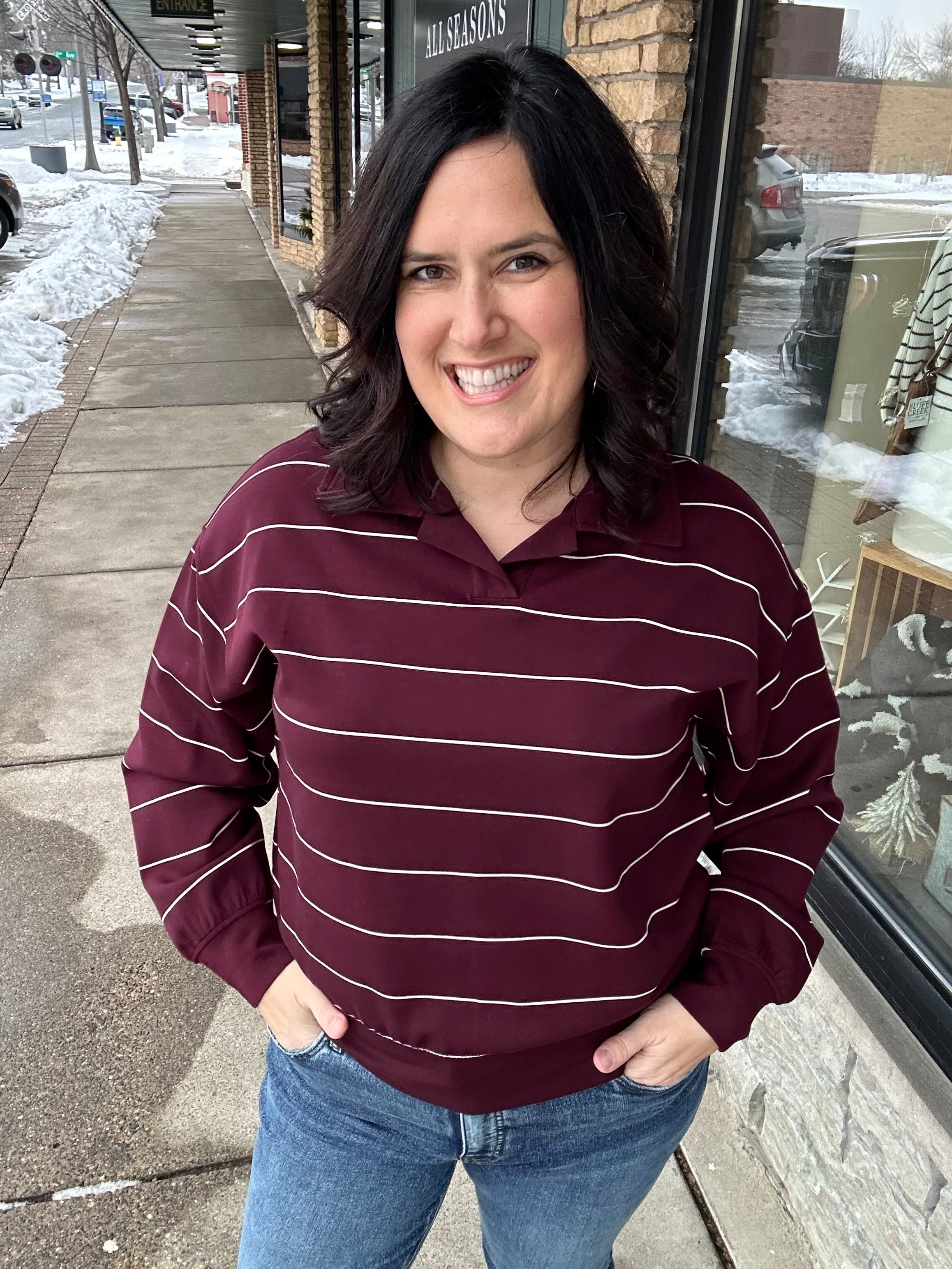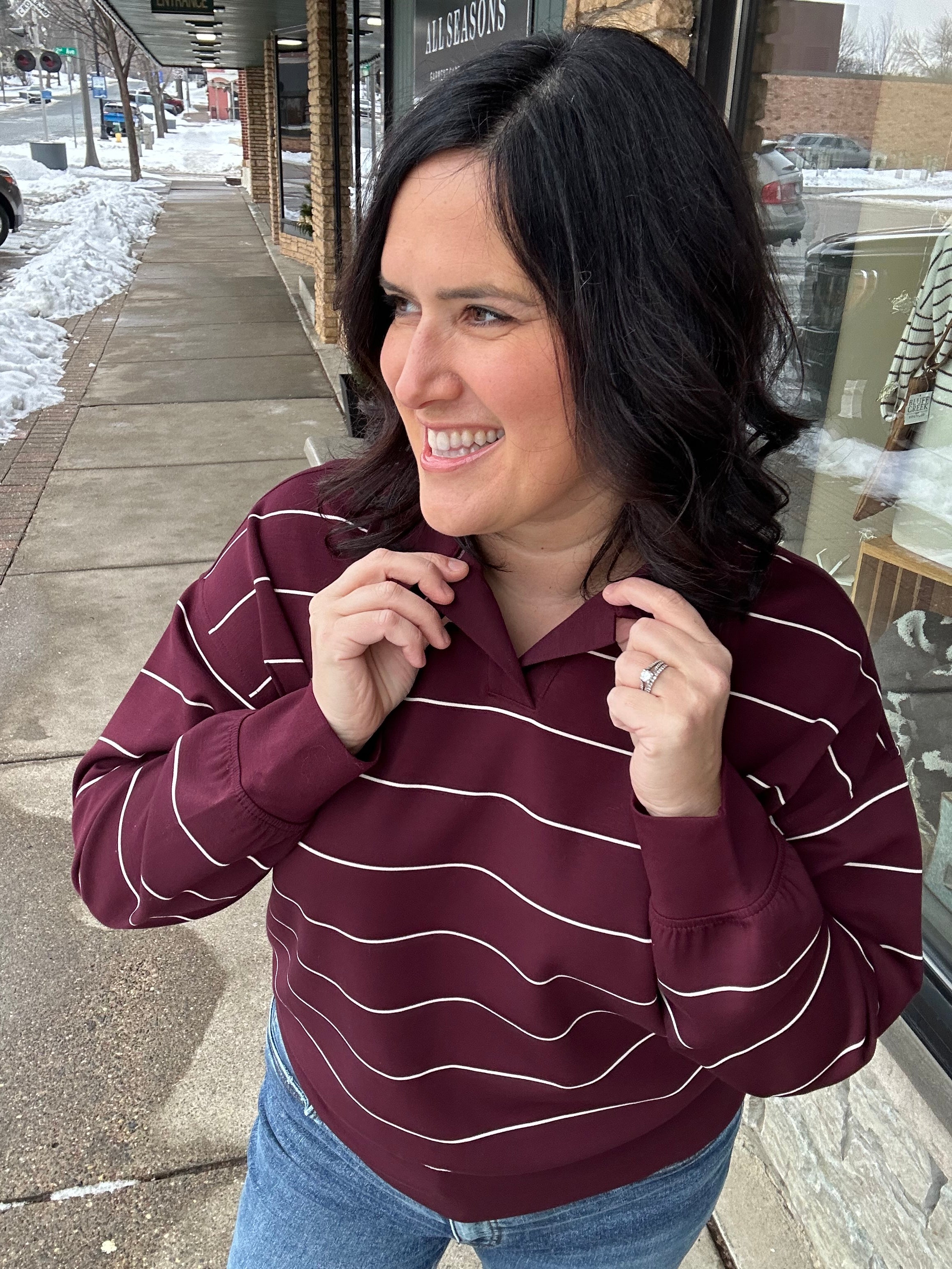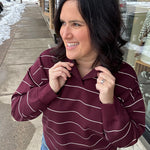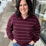 Dark Cherry/Cream Stripe Polo Top