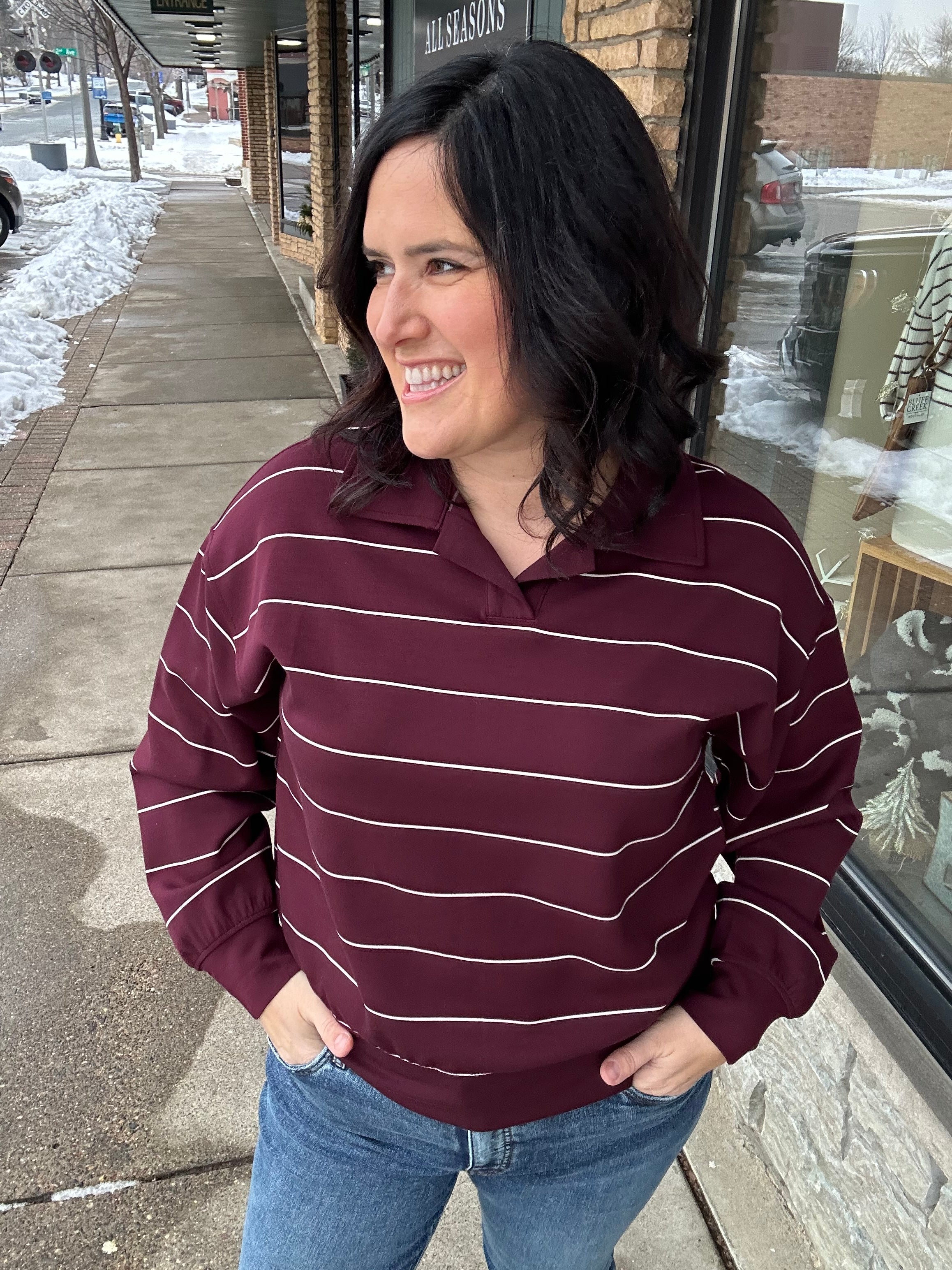 ✨ Effortlessly refined and endlessly wearable — the Stripe Polo Top from Rae Mode is your new go-to for chic comfort.