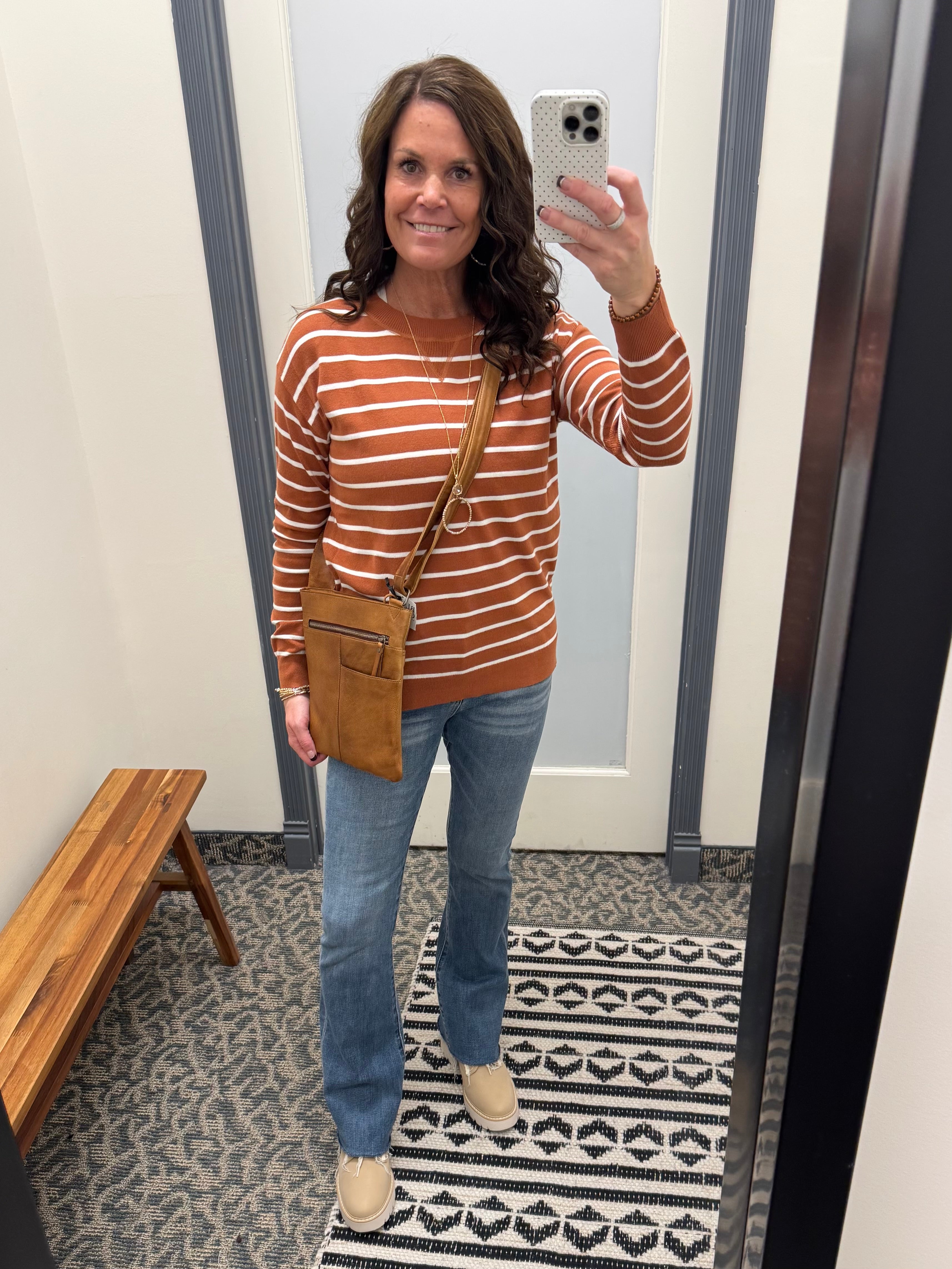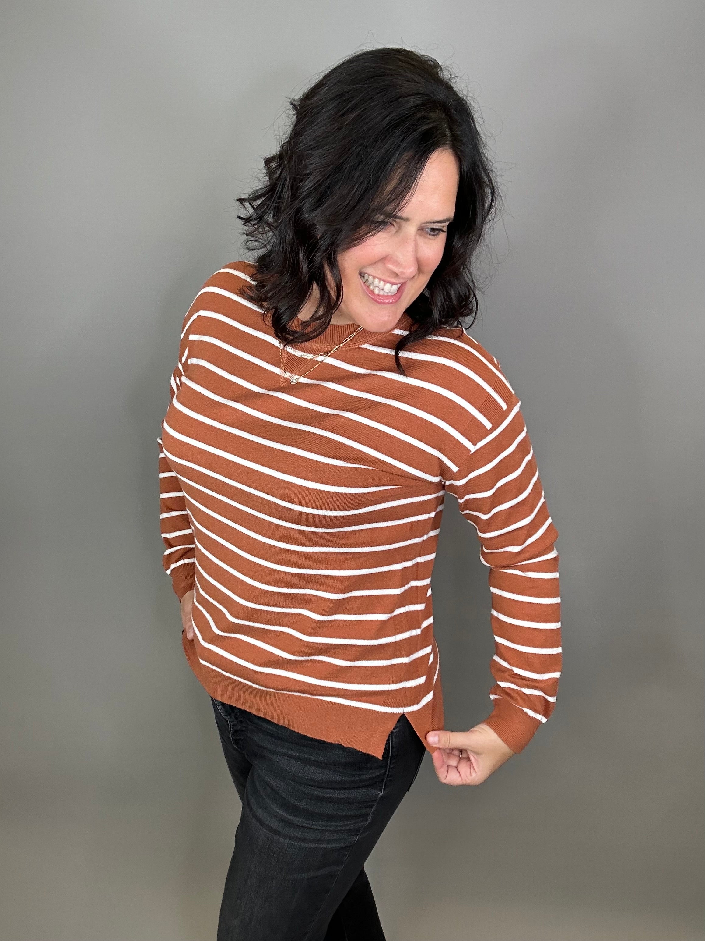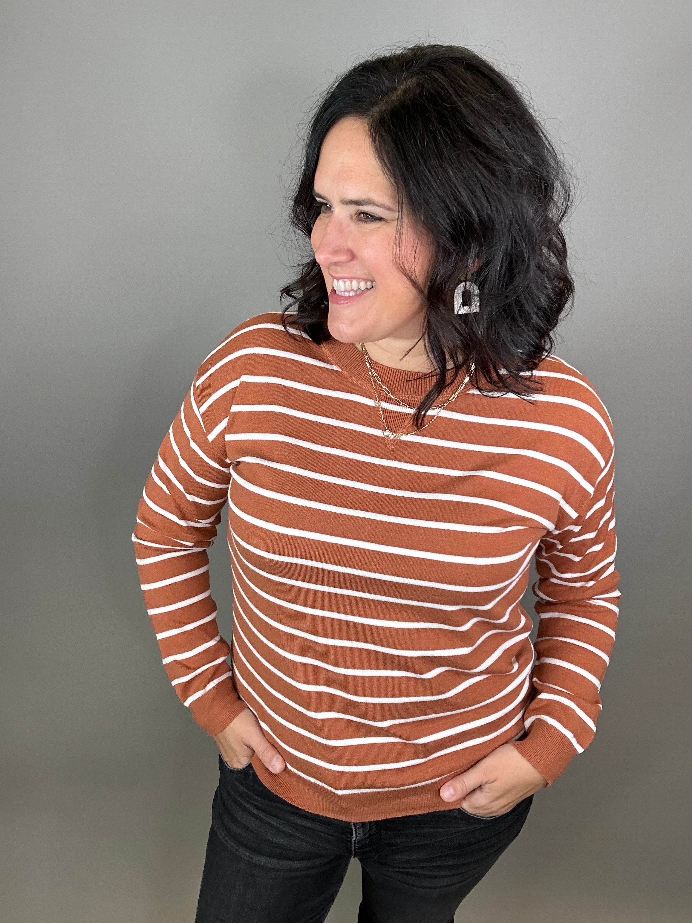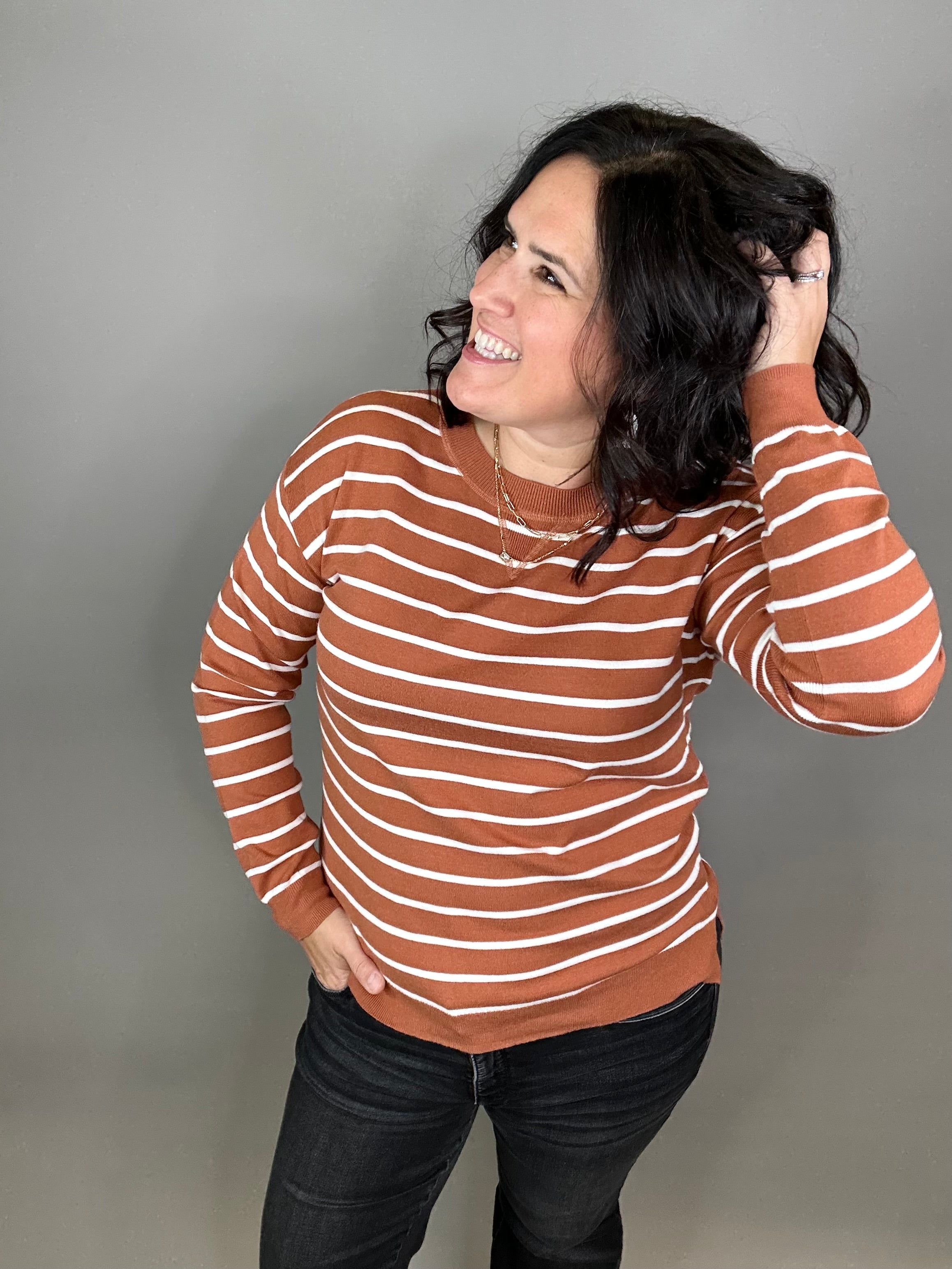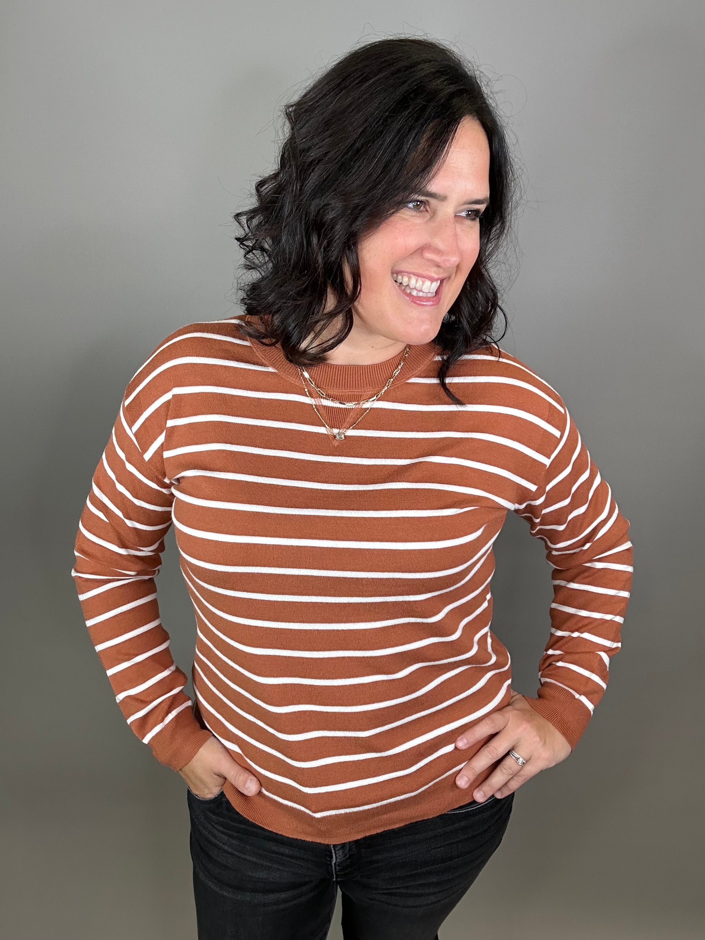 Slip into this sweater and instantly feel put-together, relaxed, and ready for anything. The buttery-soft knit and flowy shape keep you comfortable all day while the clean stripe design gives it that timeless touch.