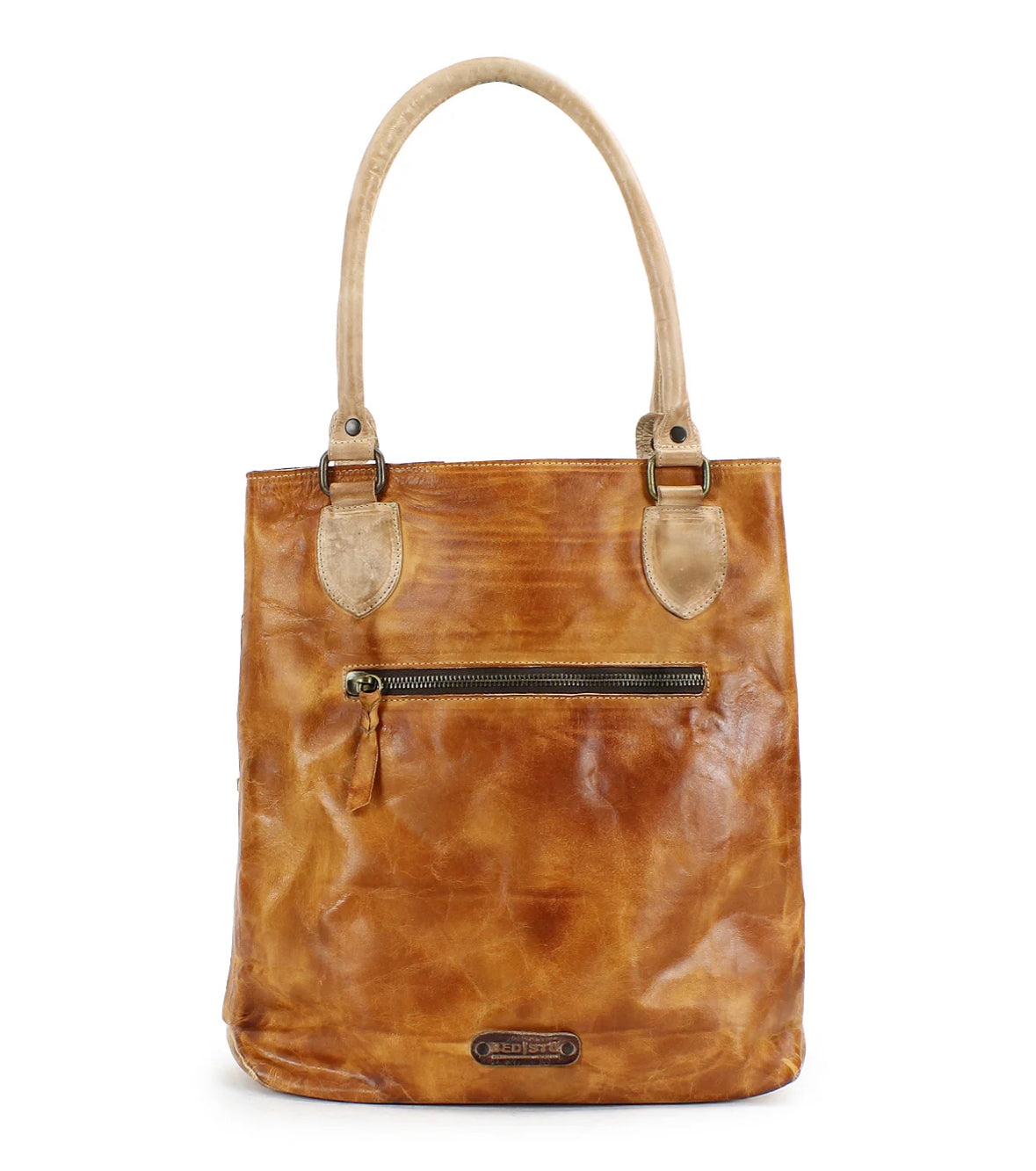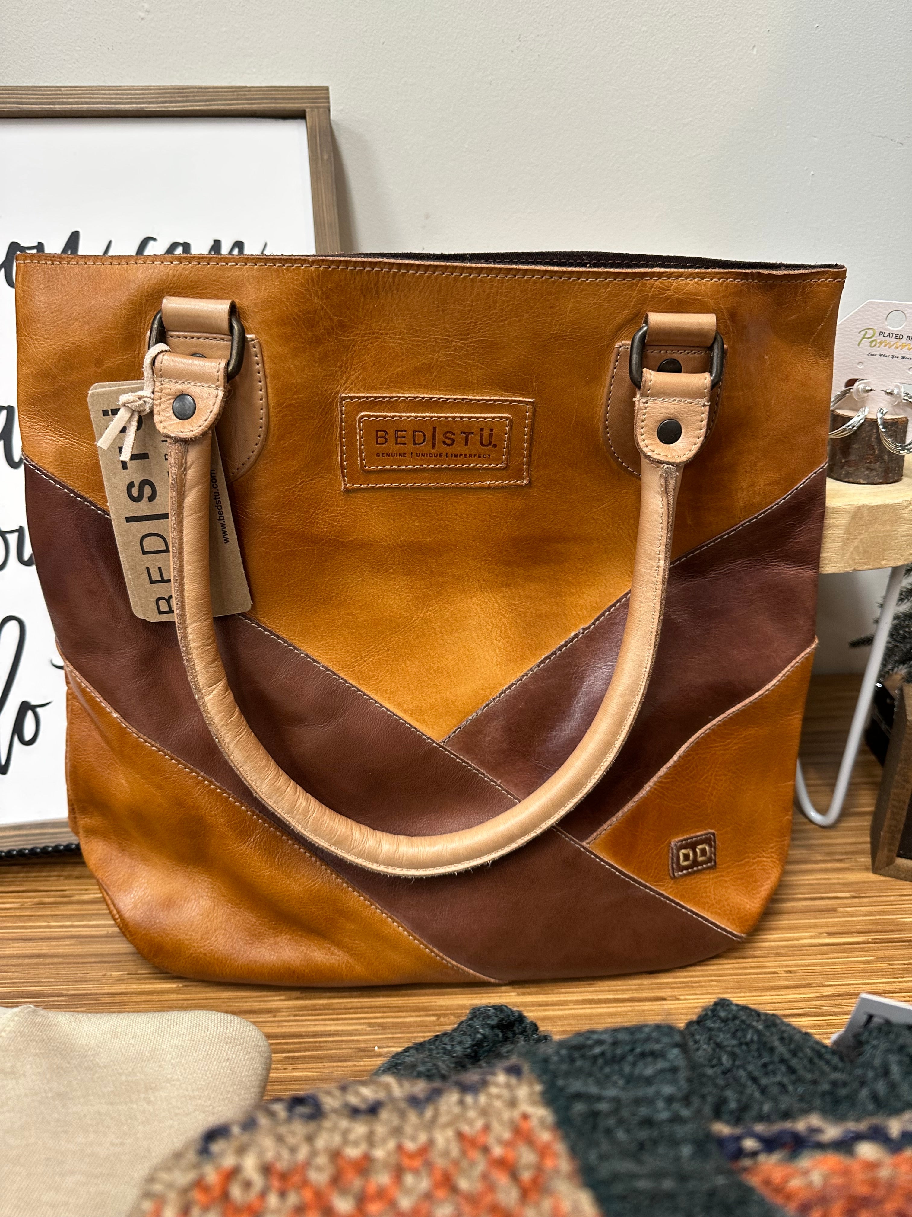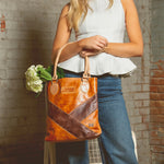 - Shoulder tote bag with padded shoulder straps, two-toned color-blocked face