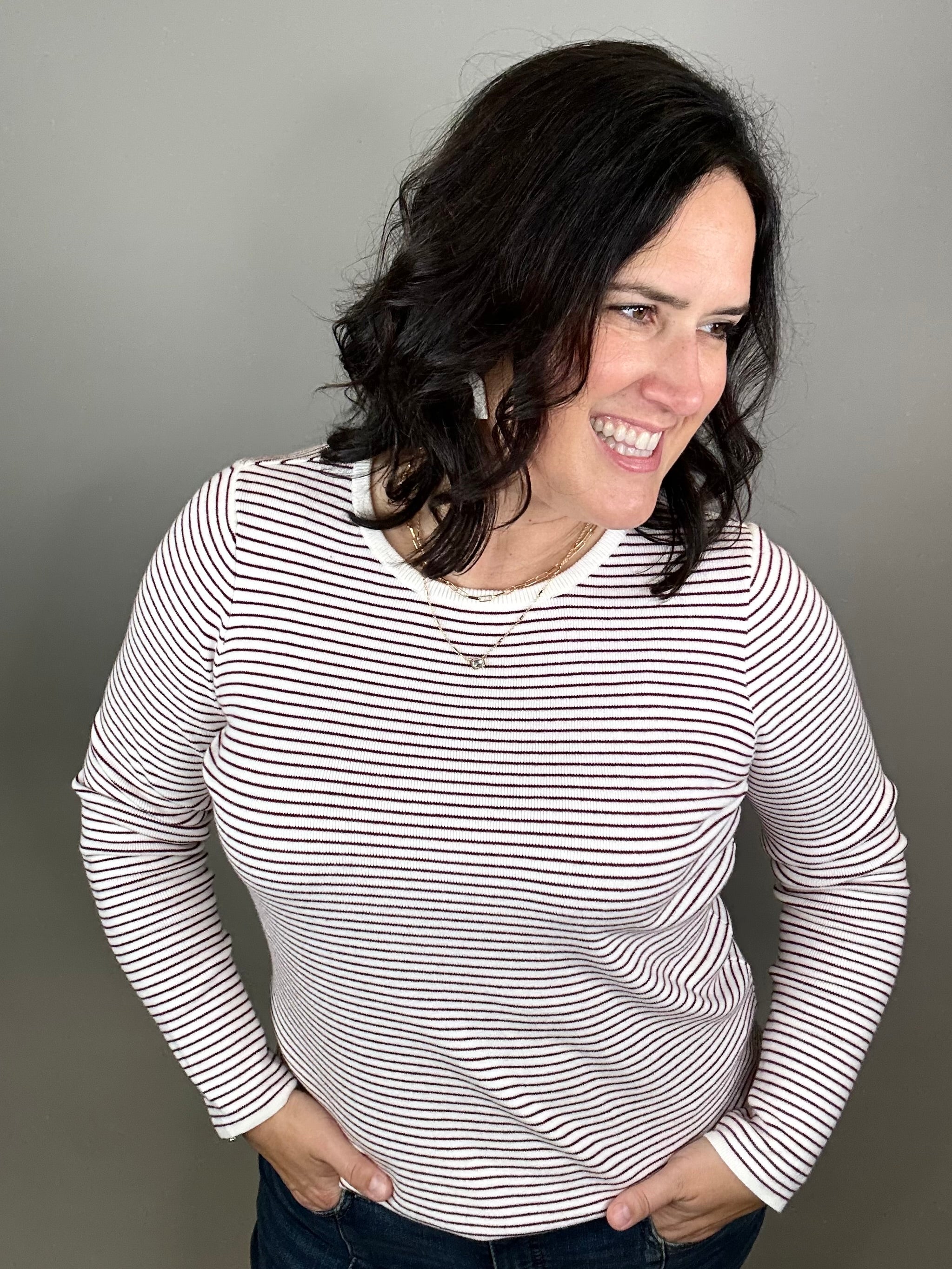 Slip into comfort and confidence with our Pinstripe Sweater - a timeless staple with a modern twist. This lightweight pullover feels soft against the skin and brings a polished edge to any outfit with its classic pinstripe pattern. The true-to-size fit and crew neckline keep it effortlessly flattering and easy to wear.