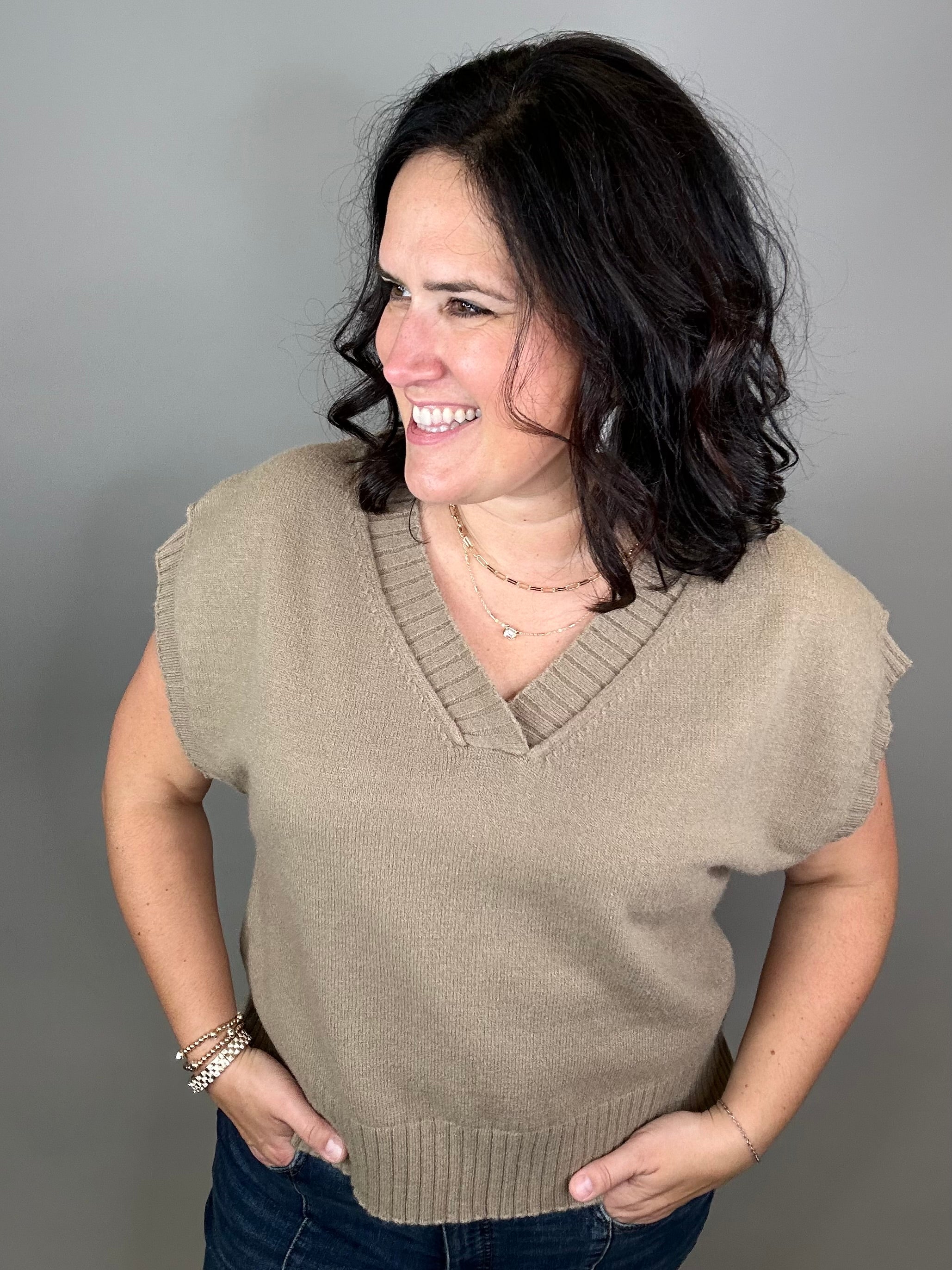 Chic, cozy, and completely effortless — the Mocha Sleeveless Sweater Vest is that timeless layering piece your wardrobe’s been missing. With its lightweight softness and relaxed fit, this vest adds just the right touch of polish whether worn alone or layered over your favorite shirt.