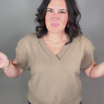 Slip it on and feel stylish, confident, and pulled together with ease. The soft mocha hue and lightweight knit bring instant warmth and comfort, while the V-neckline flatters every look.