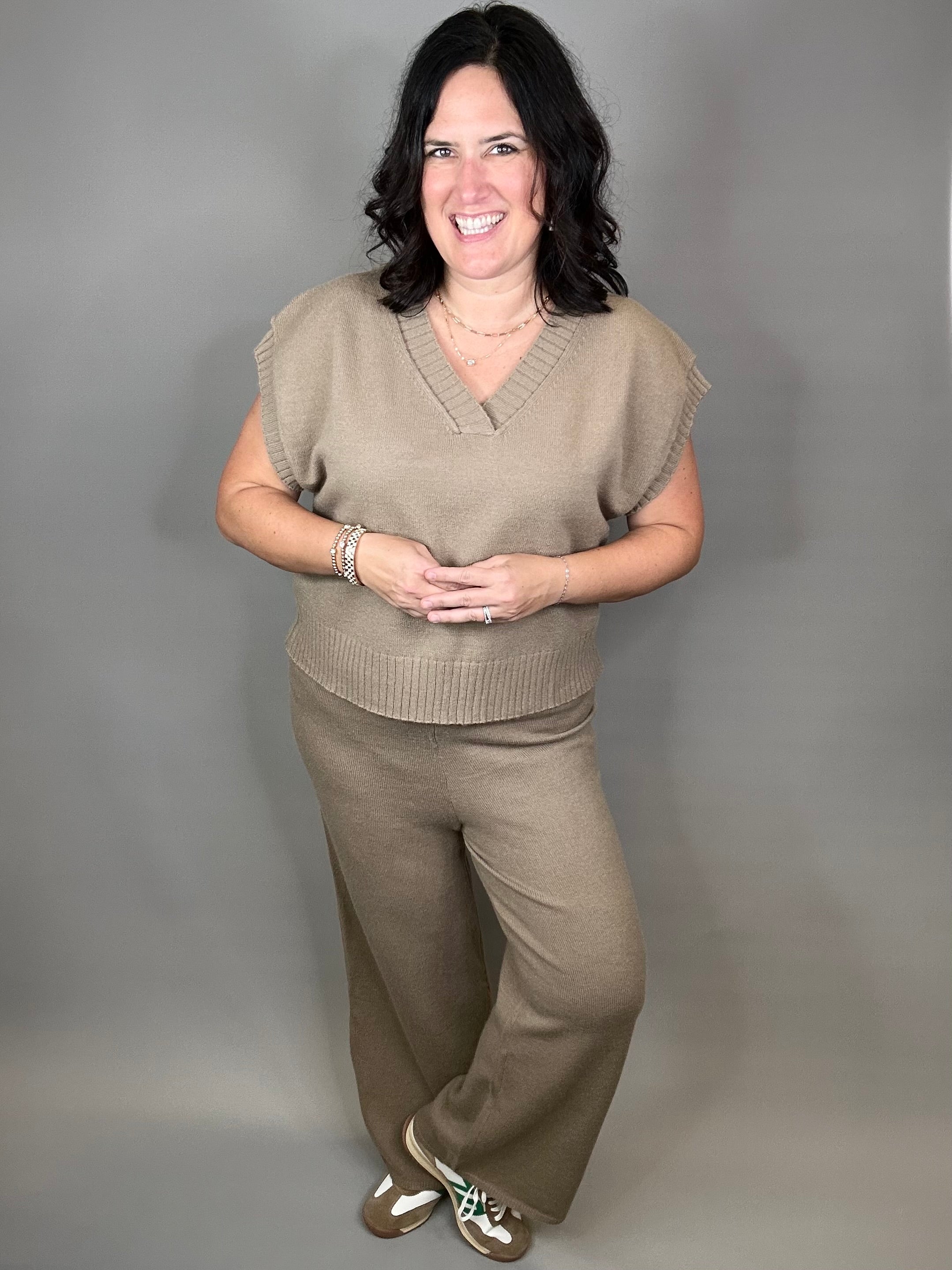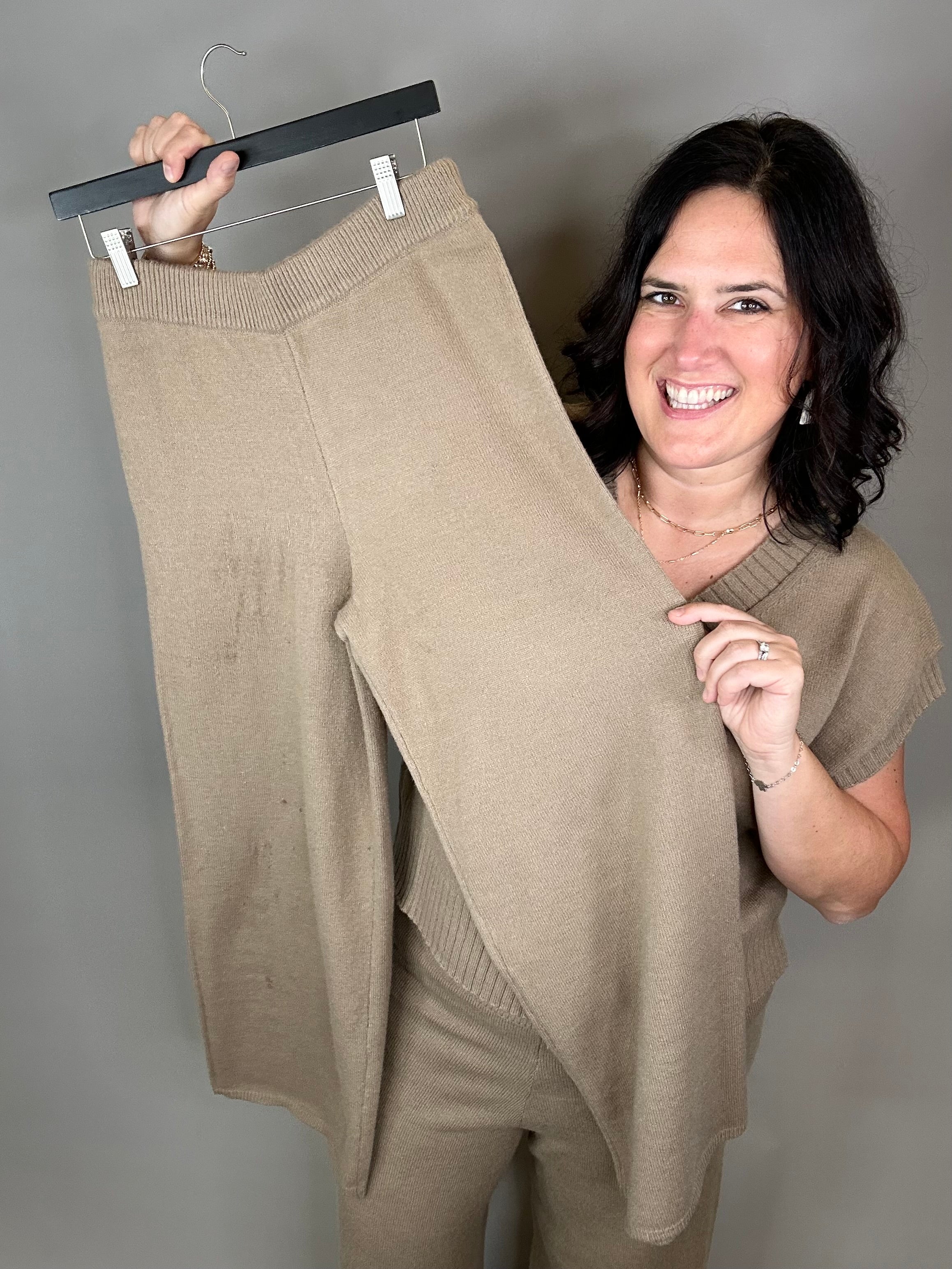 Say hello to your new go-to lounge-to-street staple. The Mocha Wide Leg Sweater Pants blend softness, style, and comfort in one effortlessly flattering fit. Crafted from a lightweight sweater knit, these pants drape beautifully with a relaxed, wide-leg silhouette that moves with you.