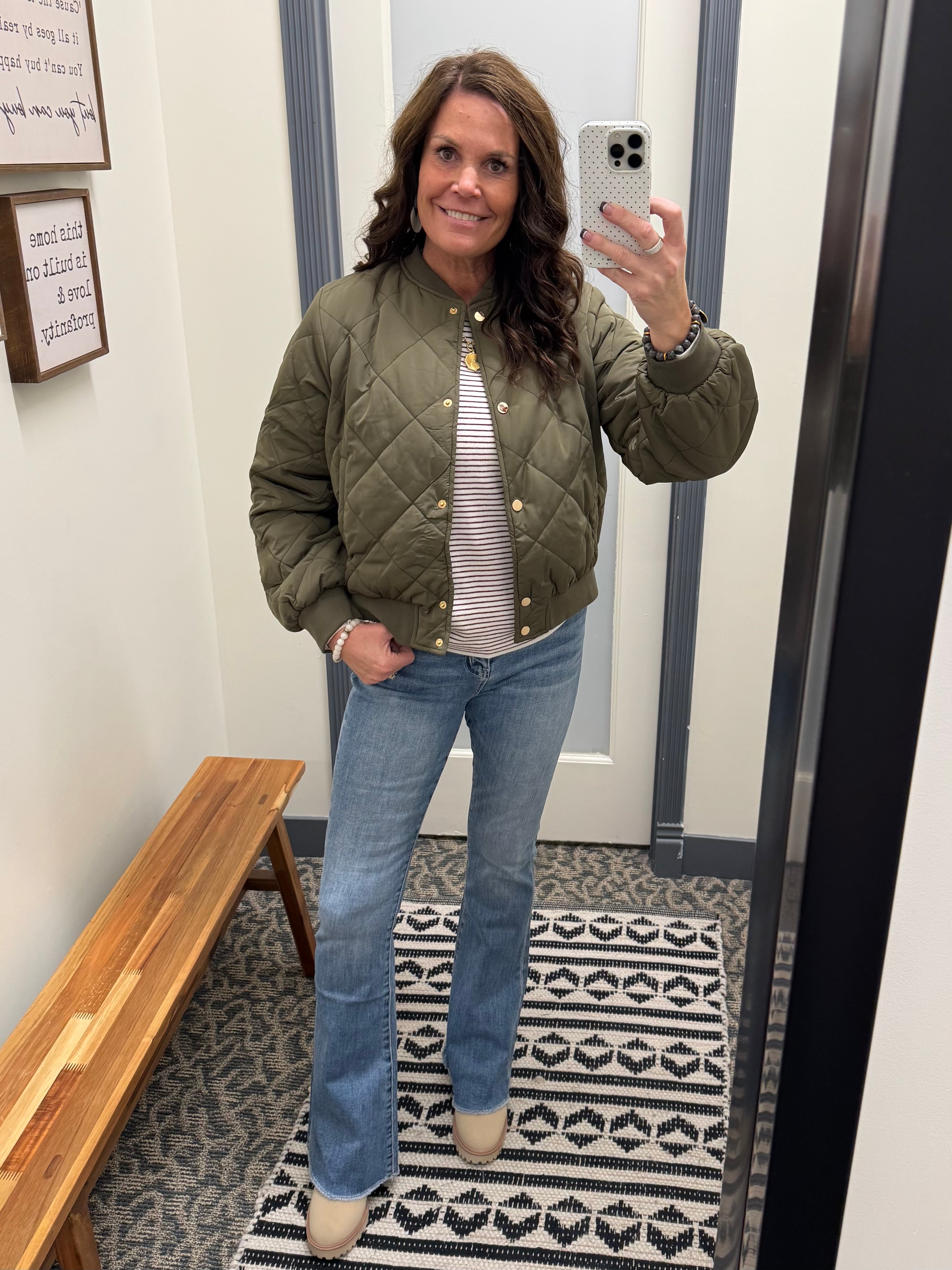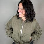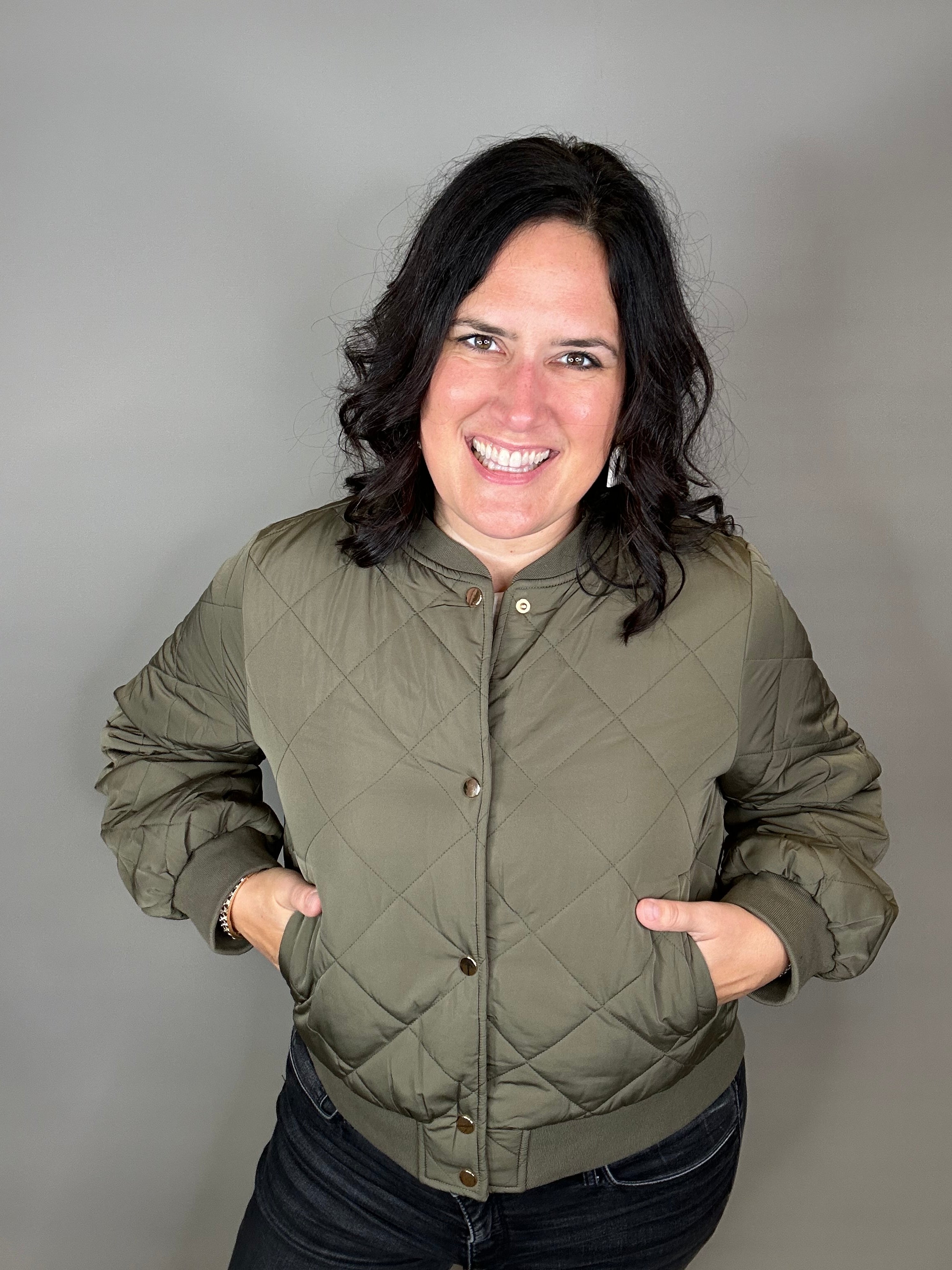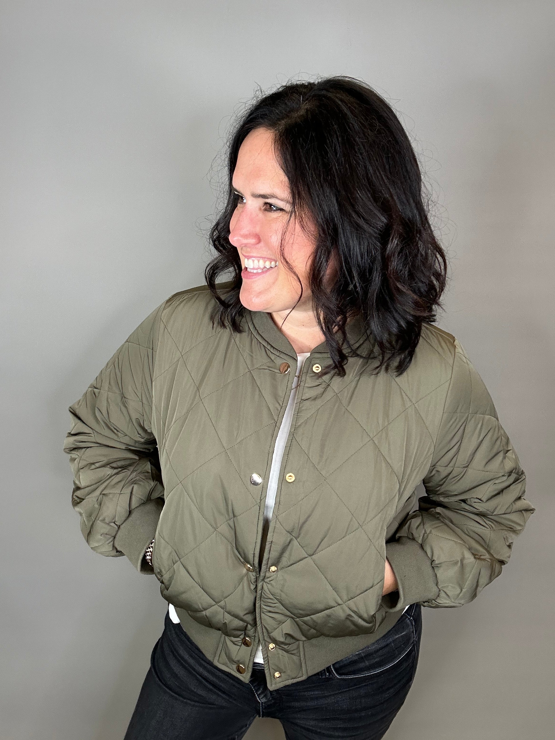 Your new go-to layer for effortless cool and cozy comfort, the Olive Quilted Bomber Jacket from Mystree blends classic bomber style with quilted sophistication. Lightweight yet warm, it’s that perfect in-between piece you’ll reach for season after season.