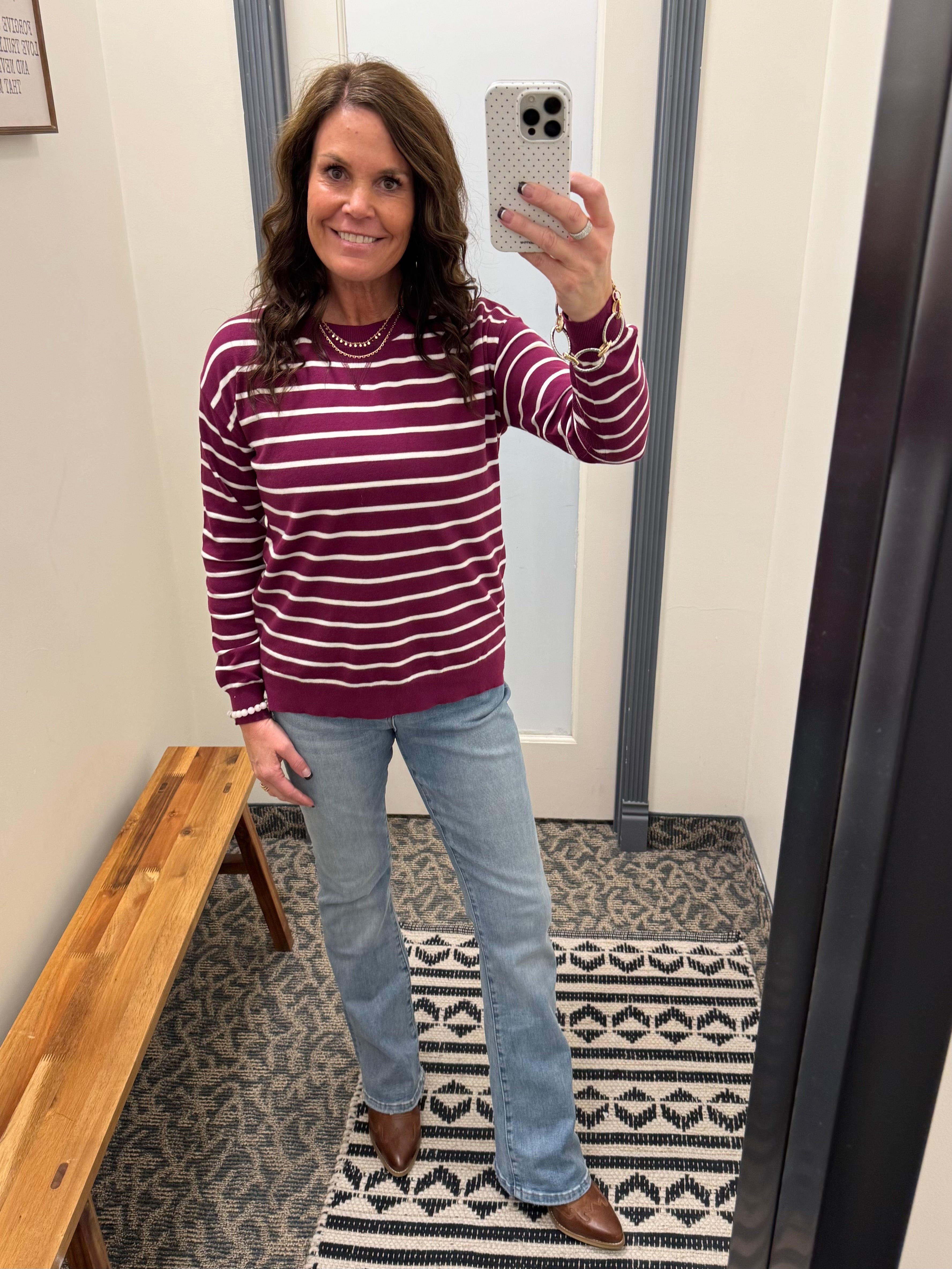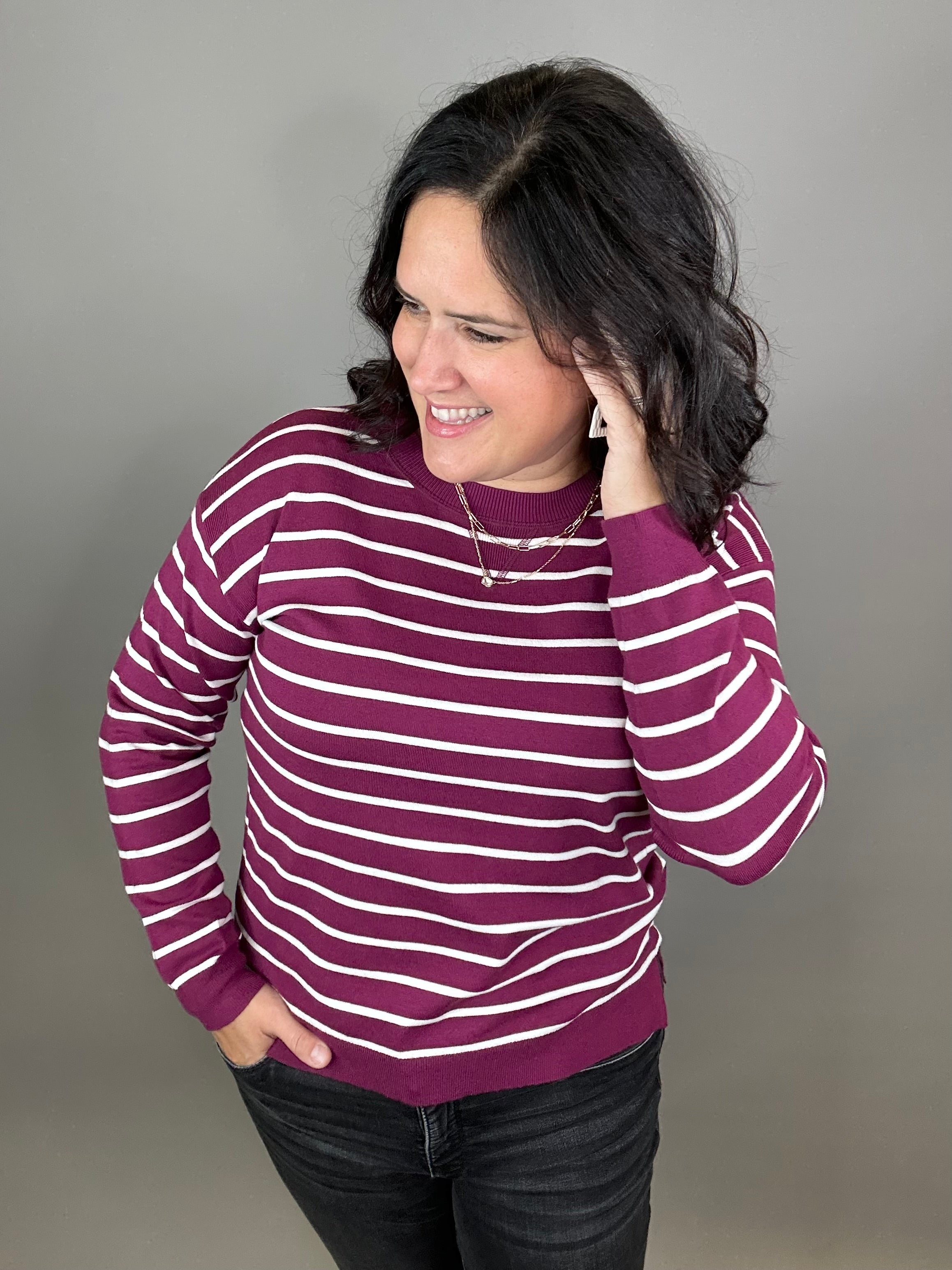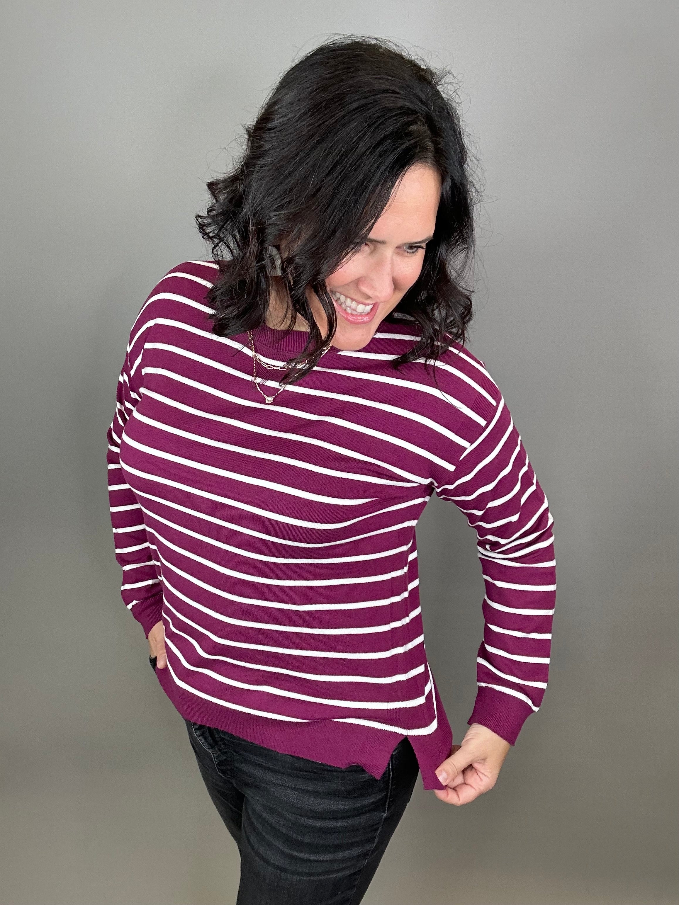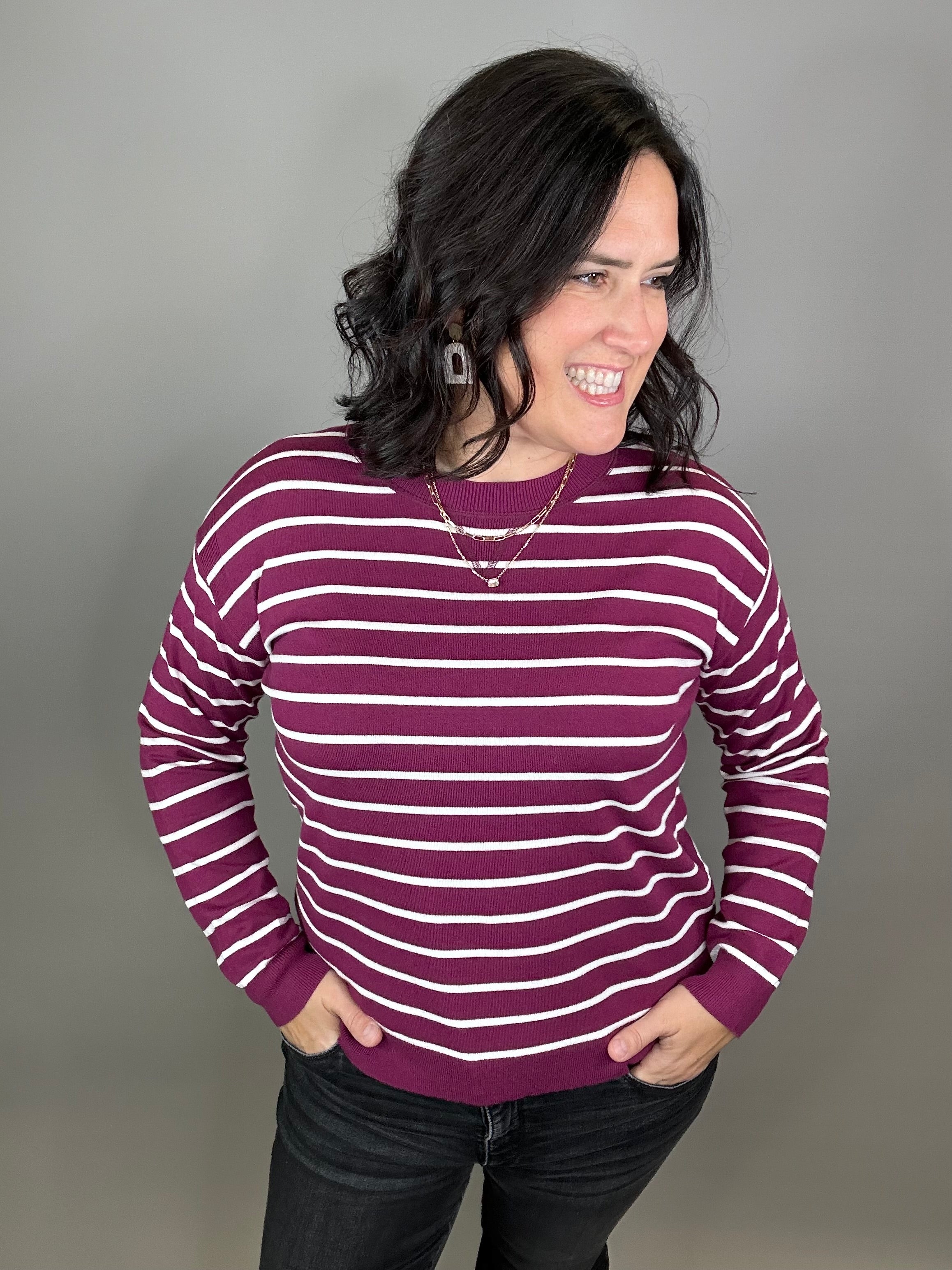 Slip into this sweater and instantly feel put-together, relaxed, and ready for anything. The buttery-soft knit and flowy shape keep you comfortable all day while the clean stripe design gives it that timeless touch.