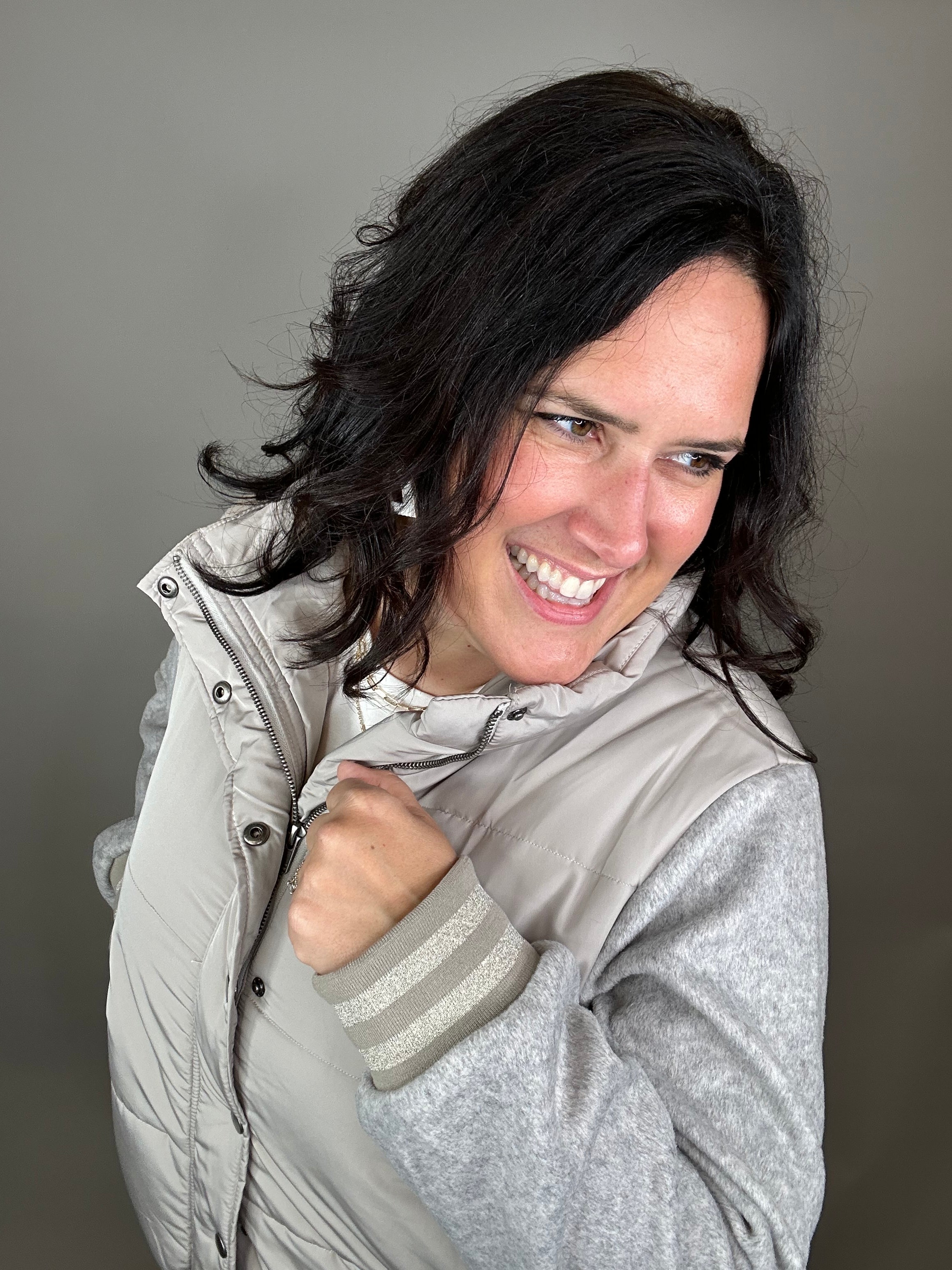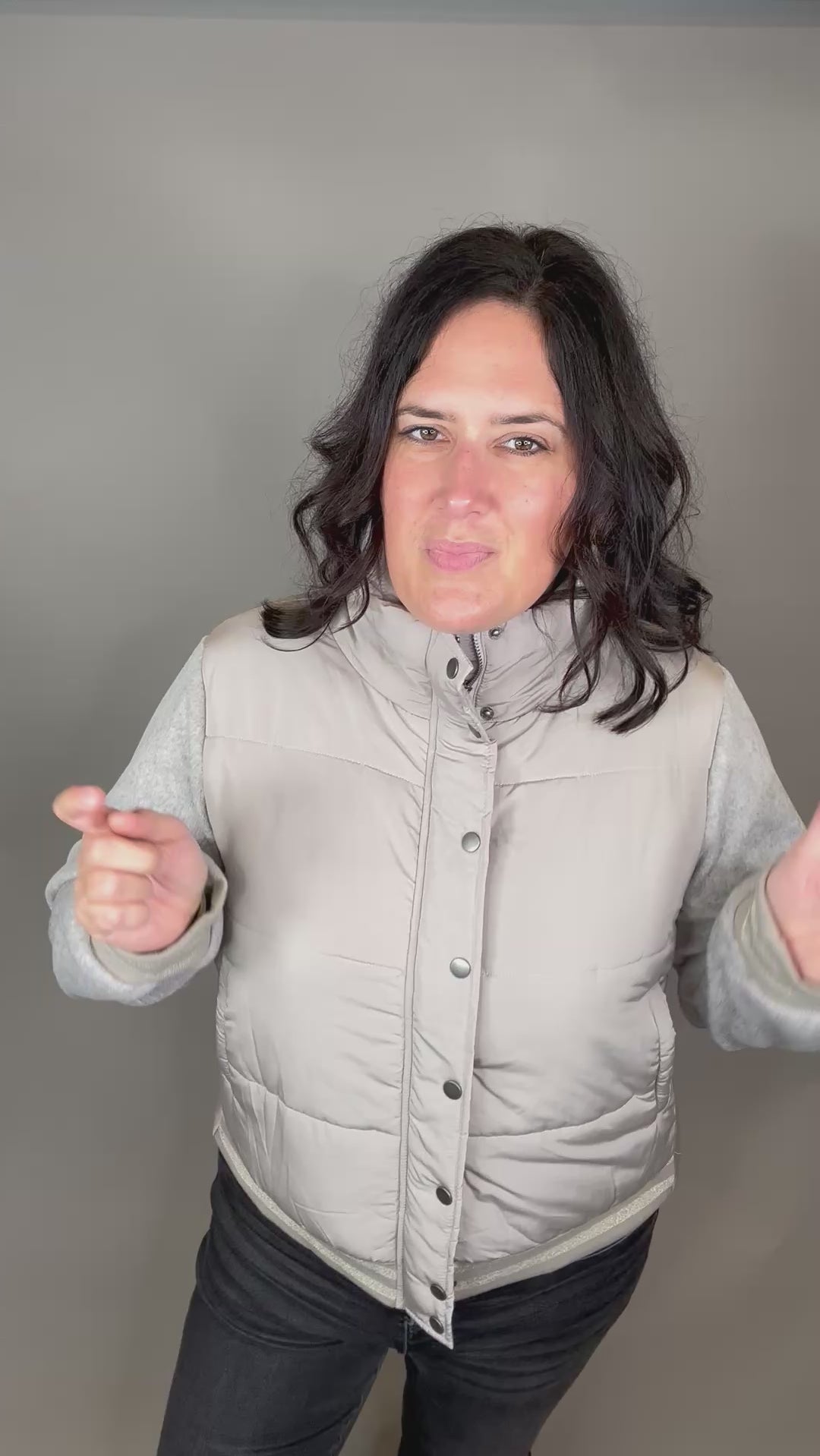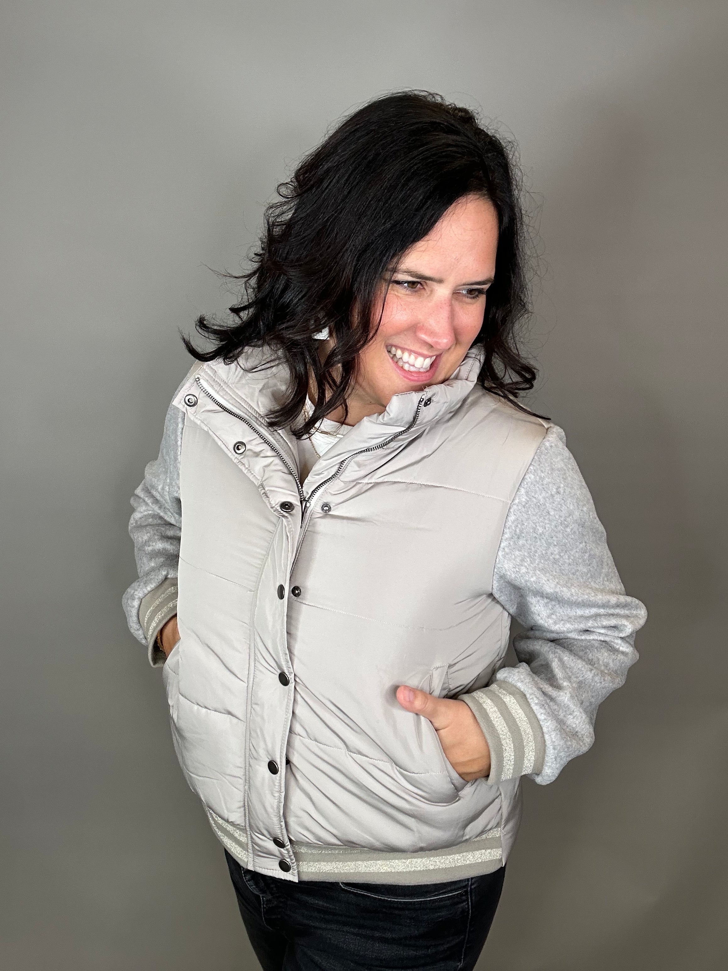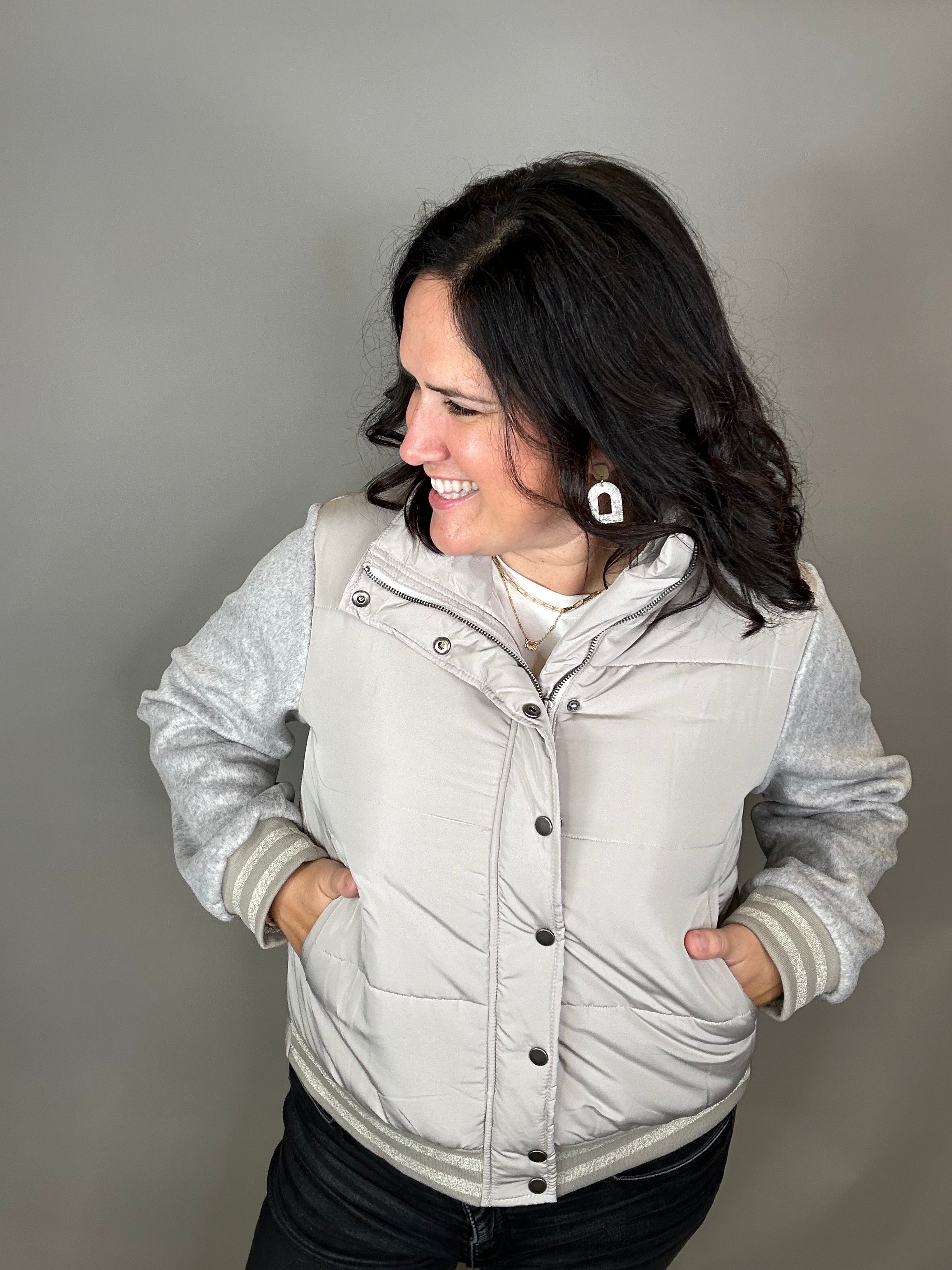 Stone Mixed Media Puffer Jacket