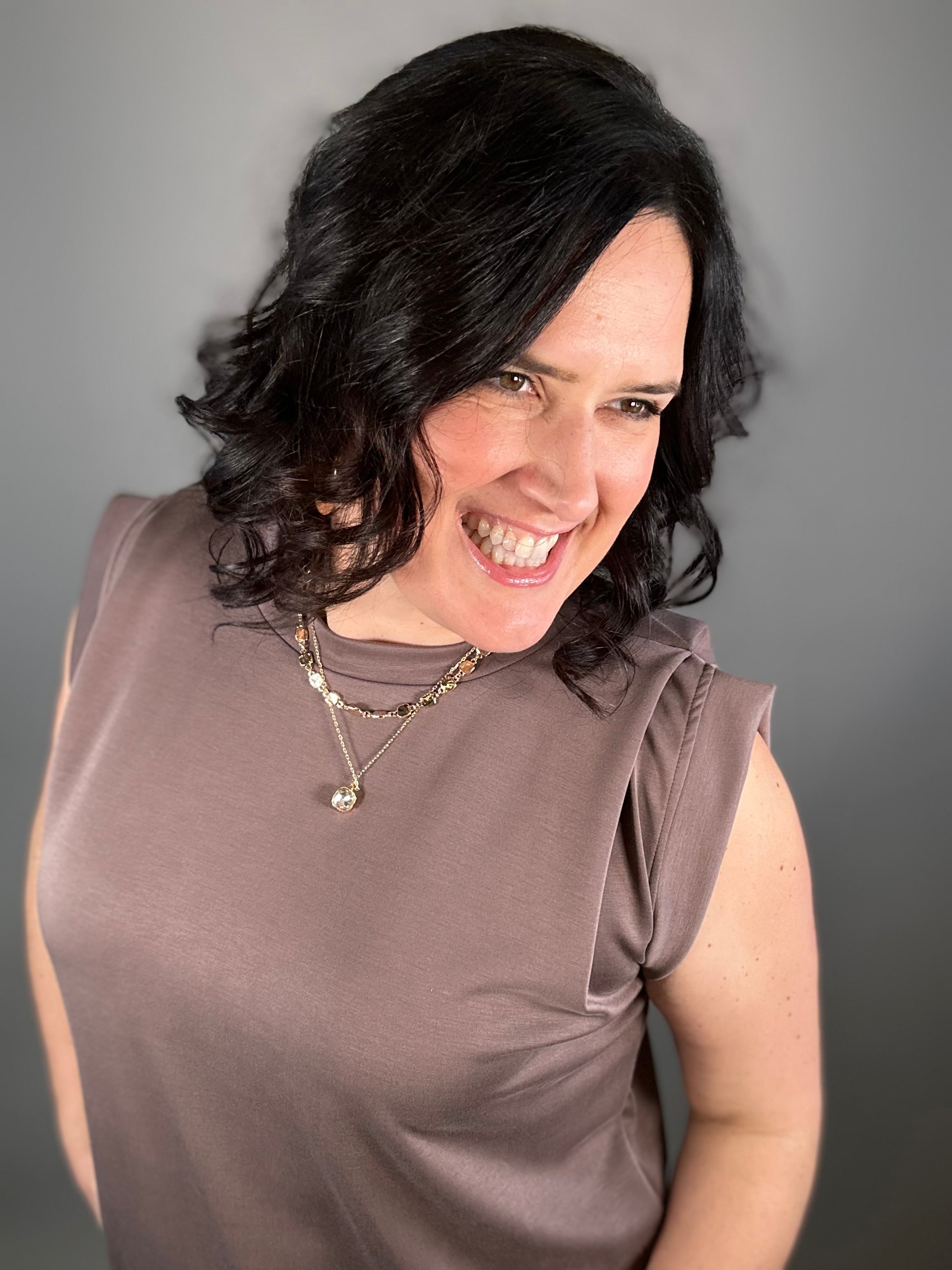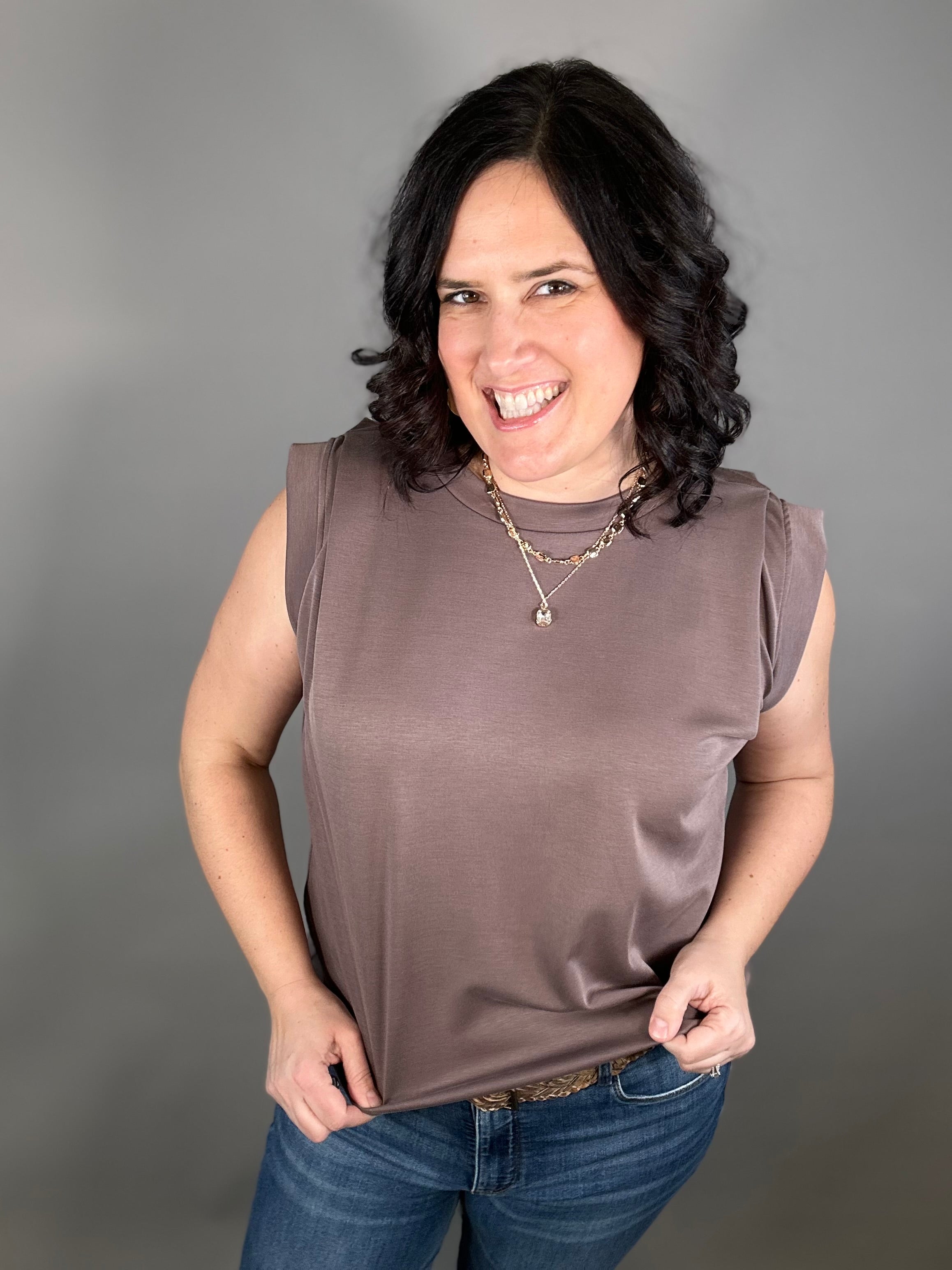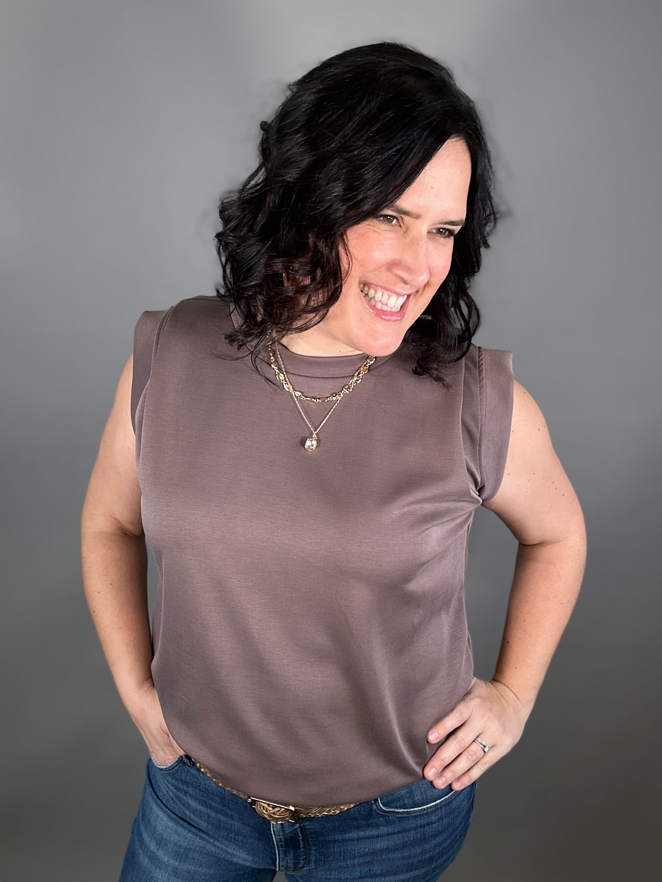 The tucked shoulder detail adds a subtle, stylish touch that instantly elevates this everyday piece. With its flowy fit and easy drape, this top moves beautifully and feels effortless to wear from morning errands to dinner out.