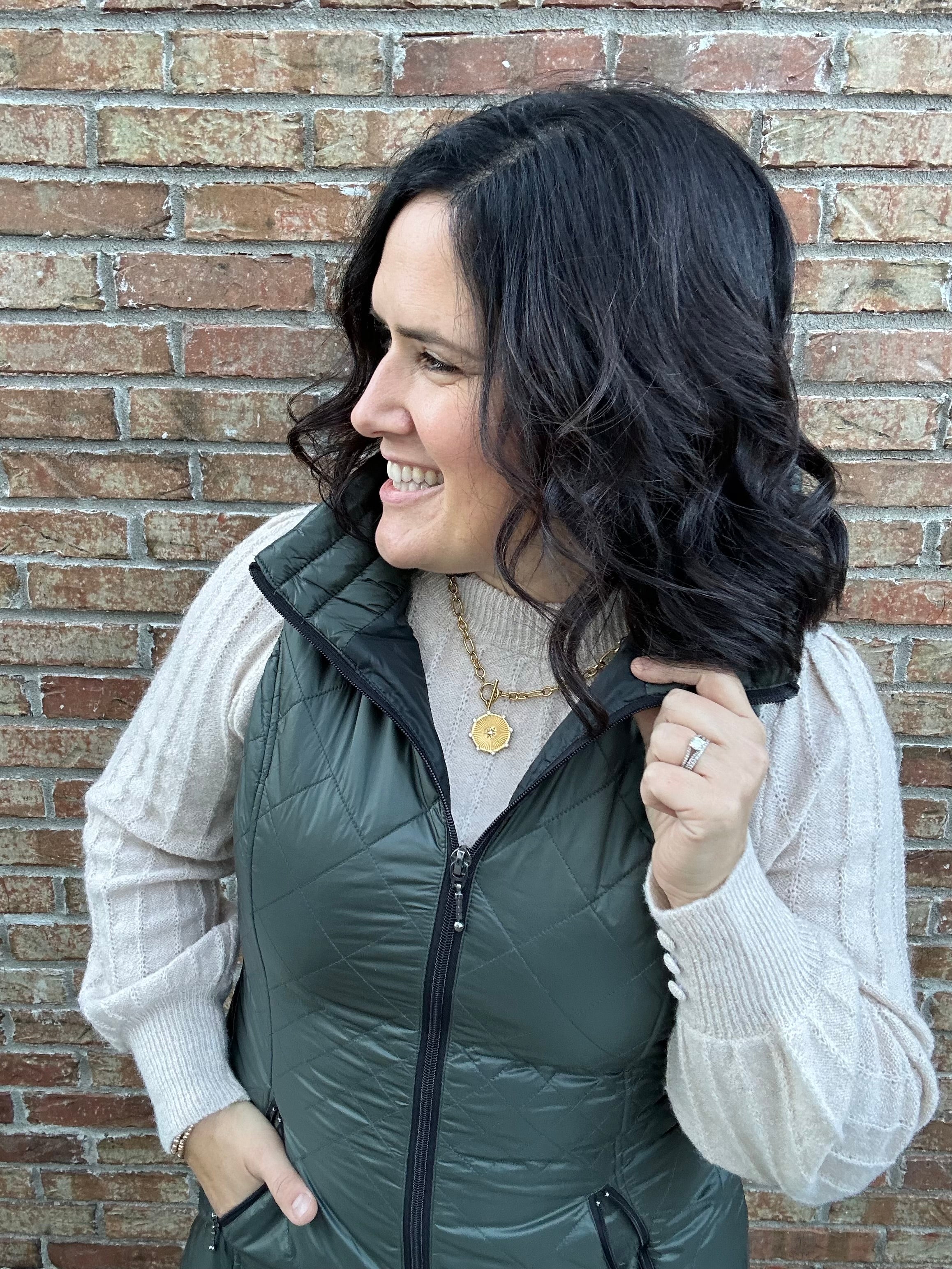 Layer over a sweater and denim for a cozy yet elevated fall outfit.