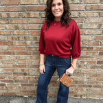 The Burgundy Puff Sleeve Sweatshirt is where cozy comfort meets a touch of feminine flair. With its rich burgundy hue and chic 3/4 puff sleeves, this sweatshirt instantly elevates your casual look while still keeping you perfectly comfortable. The relaxed fit and ultra-soft fabric make it an easy piece to throw on, yet stylish enough to stand out.