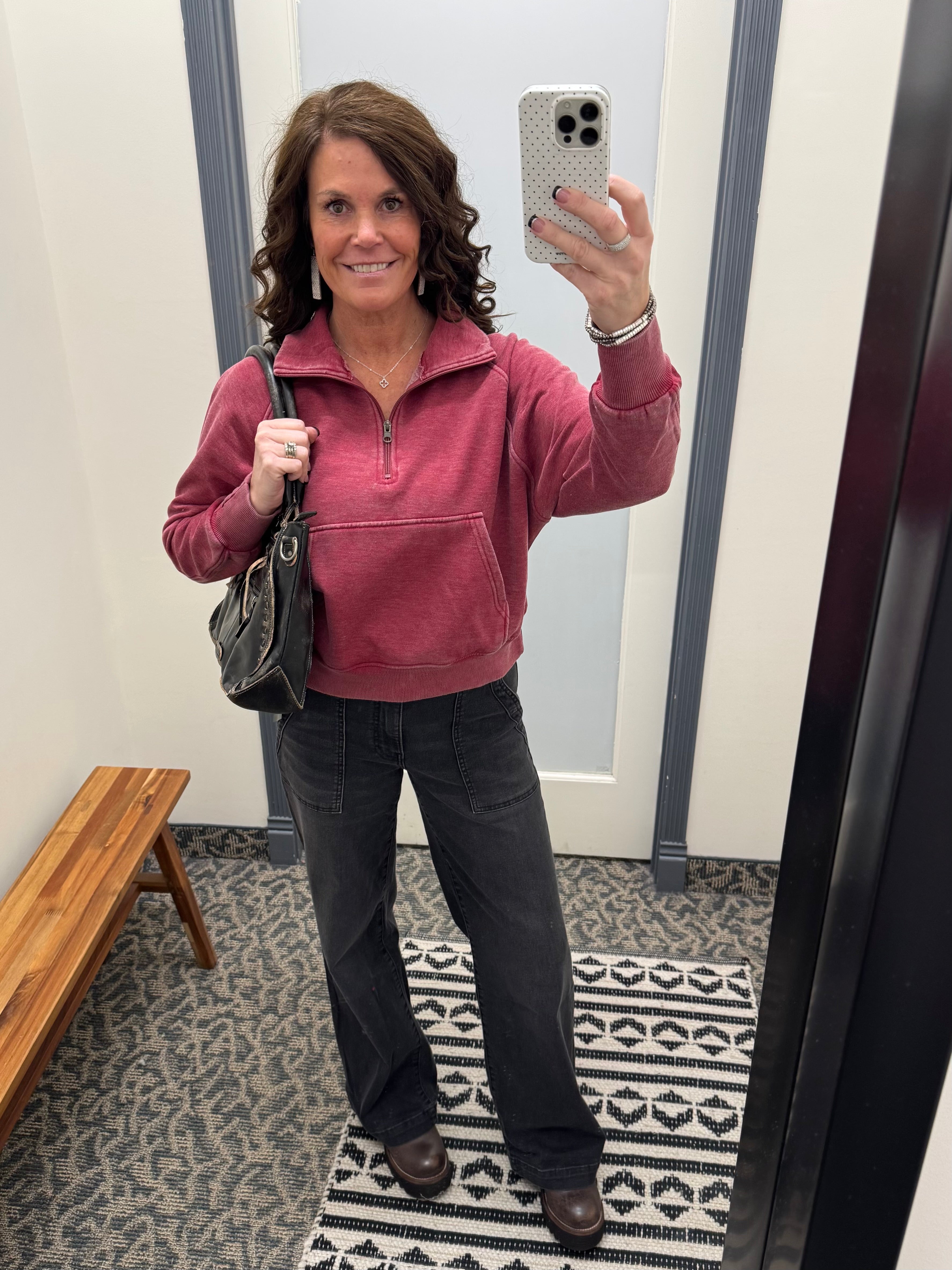 Slip this on and instantly feel comfortable, confident, and put-together. The soft fabric and relaxed fit wrap you in coziness, while the cropped hemline and funnel neck add a modern, flattering twist.