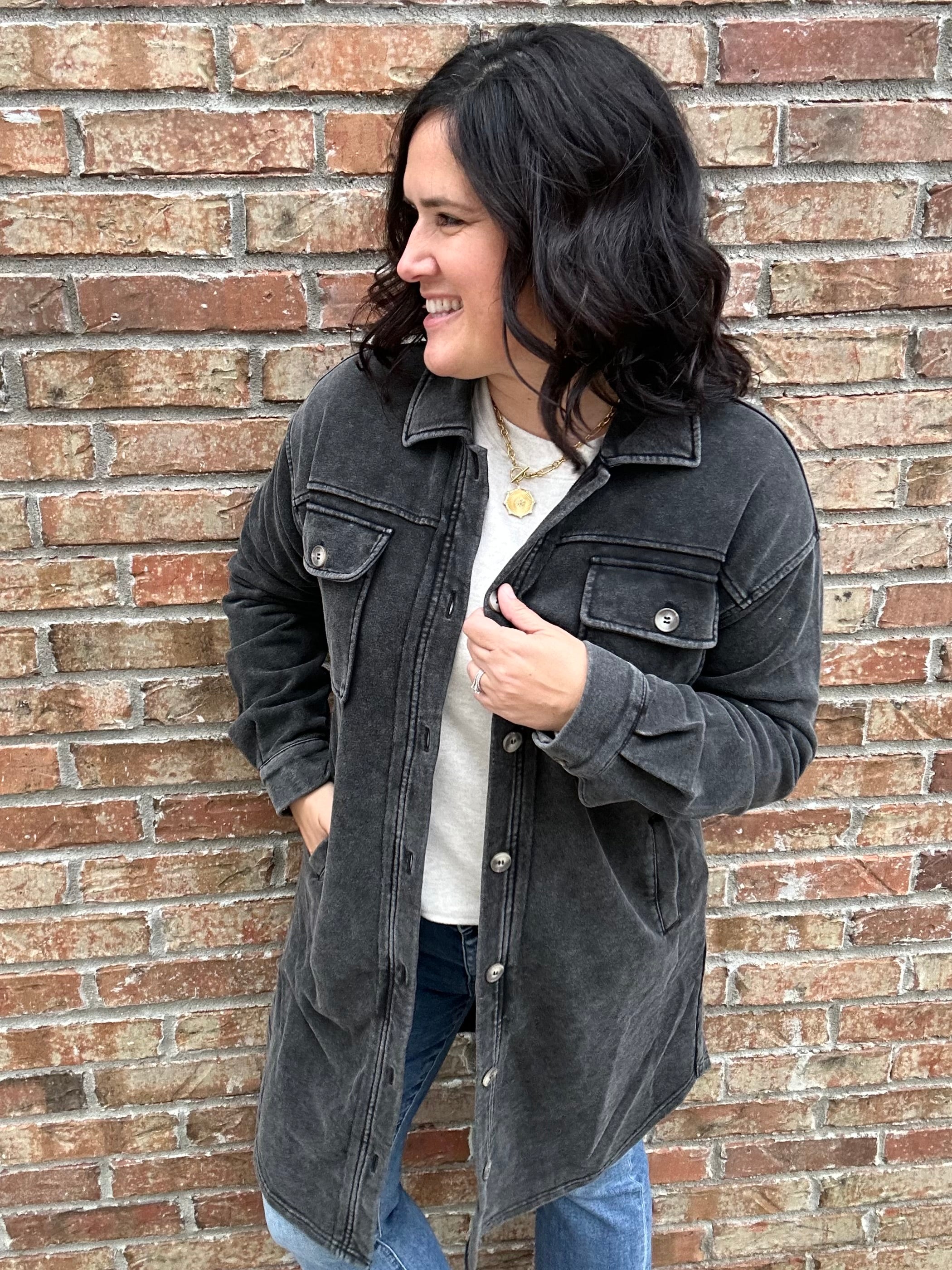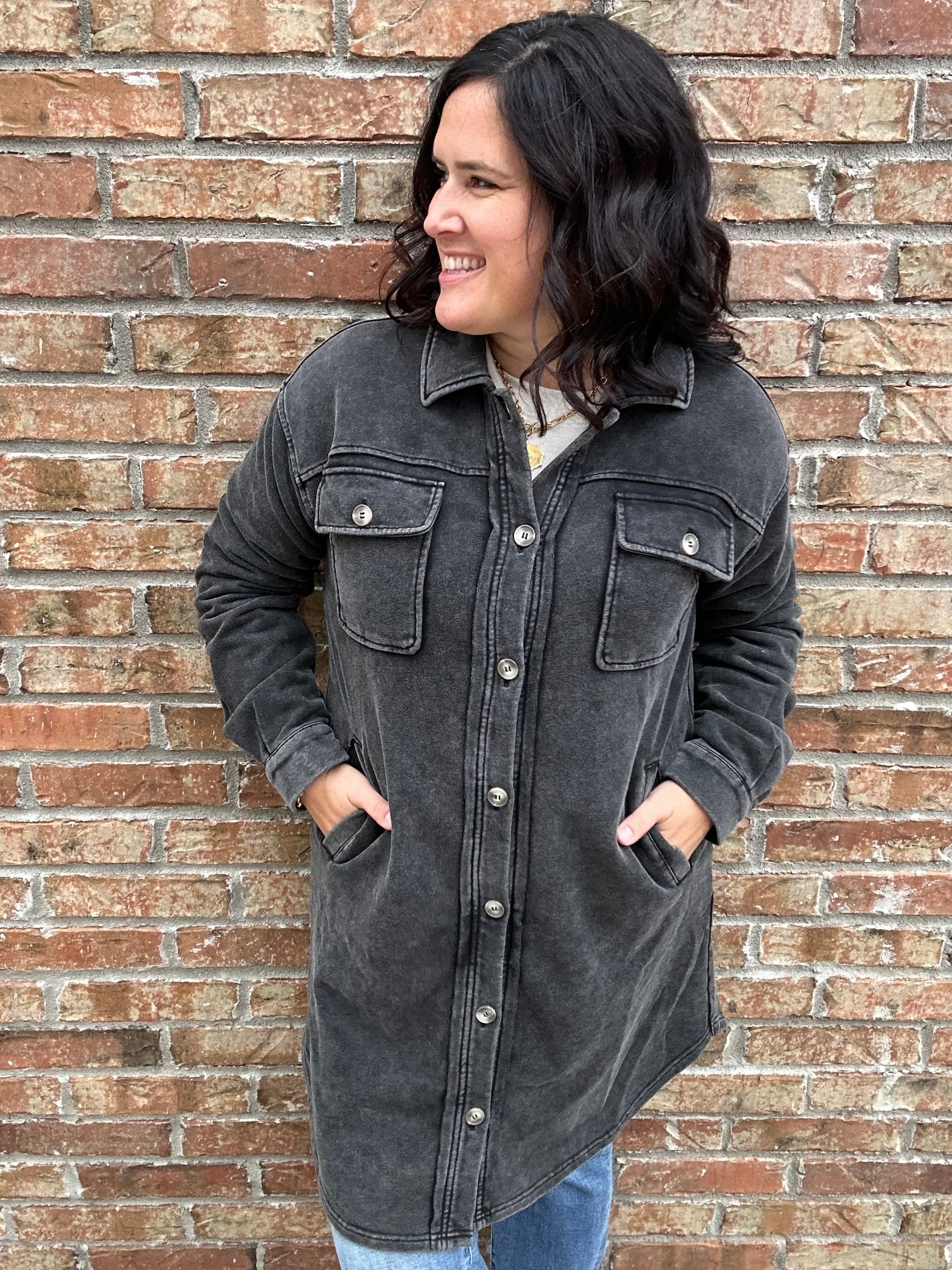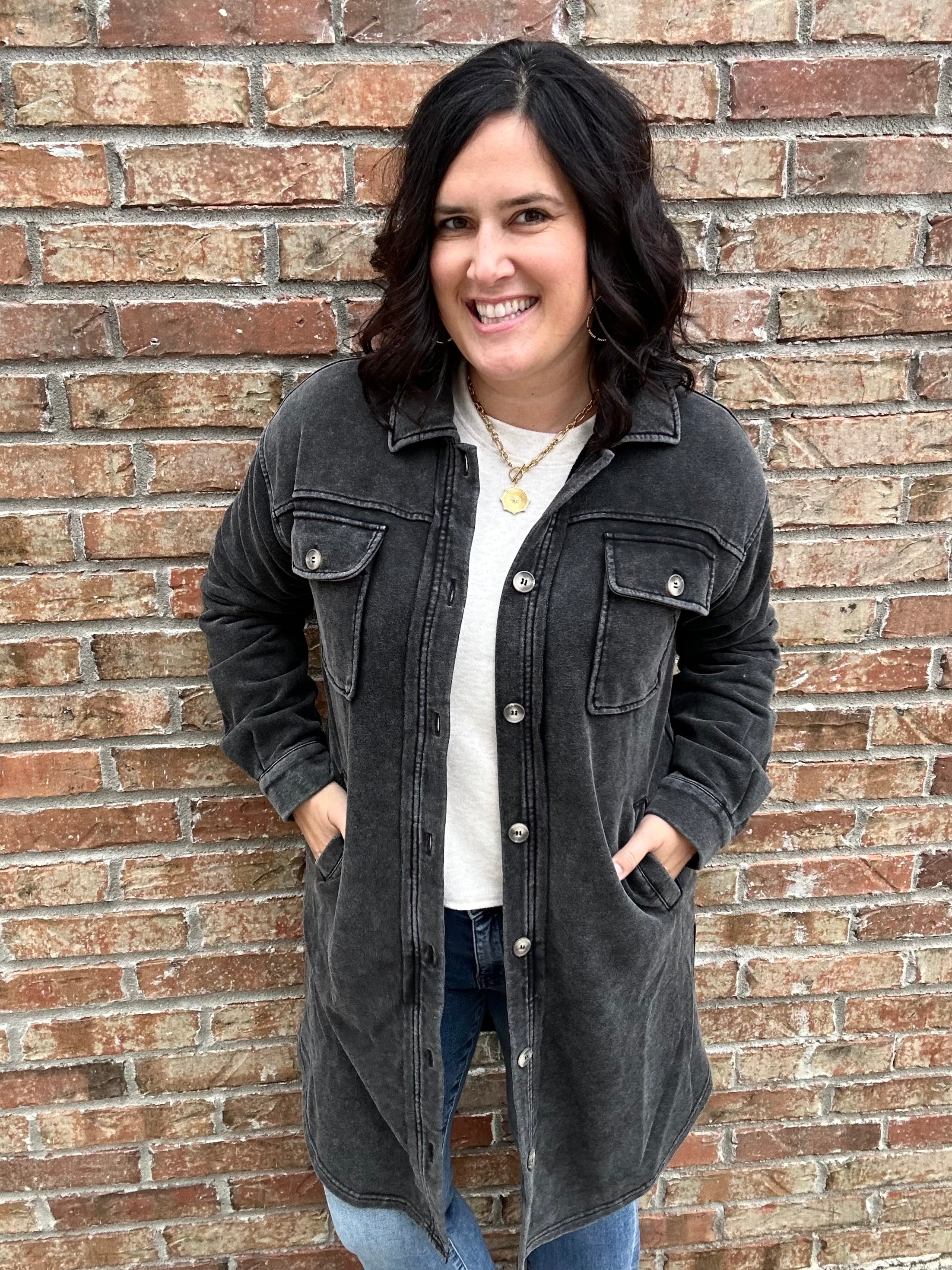 Meet the jacket that redefines casual cool — the Washed Black Terry Long Jacket from Mystree. With its soft terry fabric and lived-in wash, this longline layer delivers that effortlessly edgy look you’ll reach for again and again. It’s the perfect mix of comfort, structure, and everyday versatility.