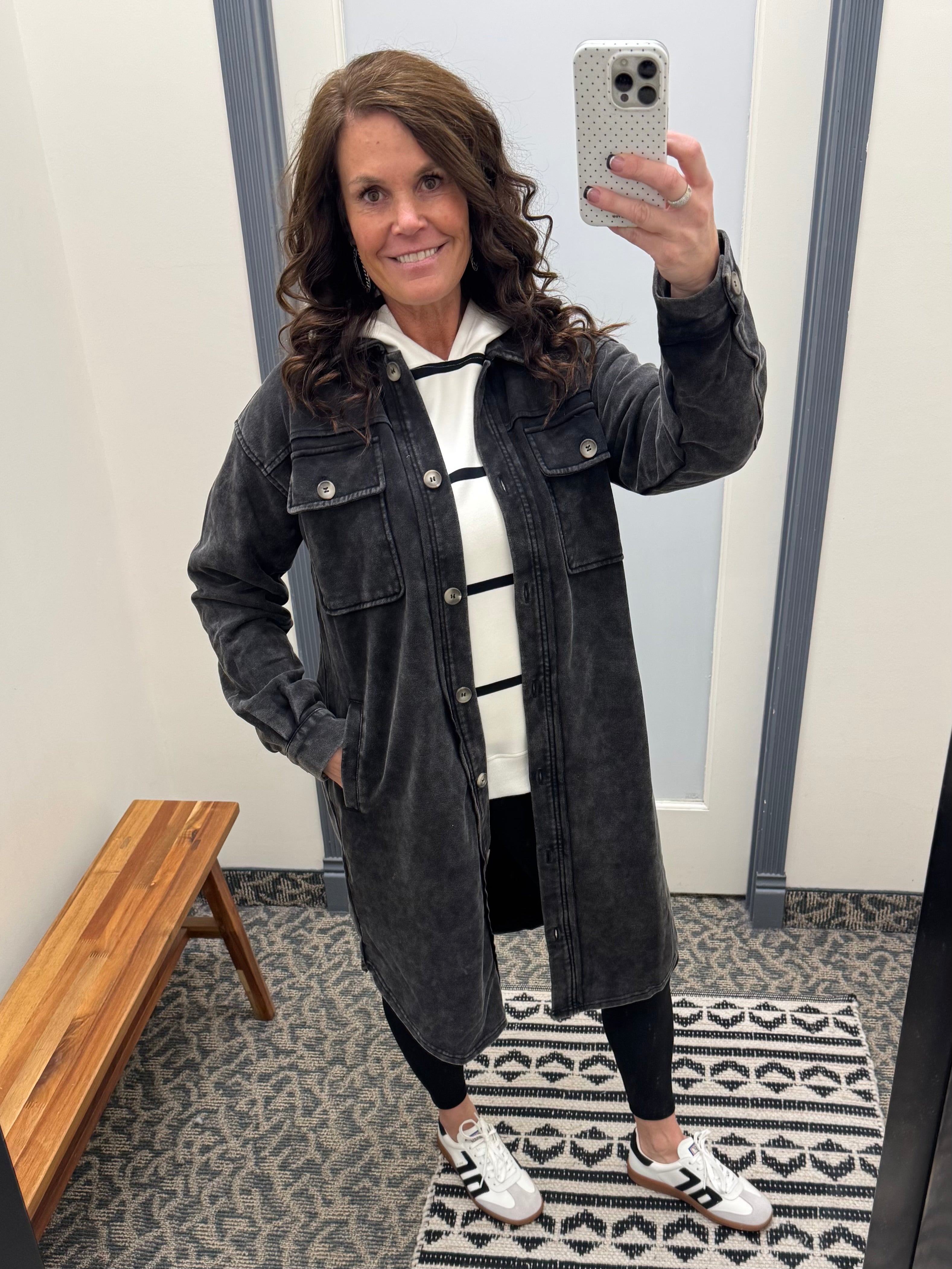 Layer over leggings and a hoodie for cozy weekend errands.