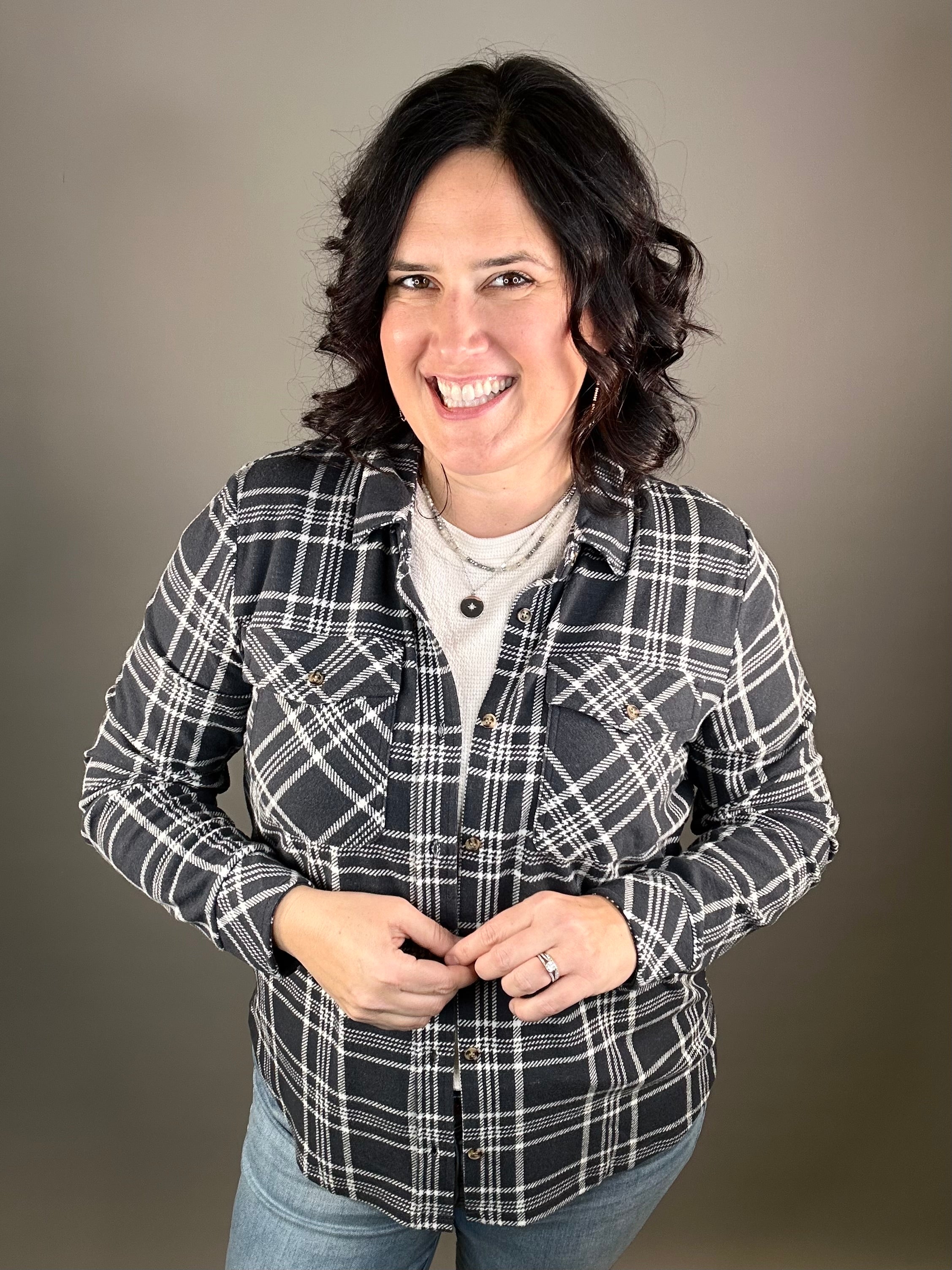 Slip it on and instantly feel effortlessly put-together yet relaxed. The soft, brushed feel gives all the comfort of your favorite lived-in flannel, while the tailored shape and western-inspired details make it feel elevated and fresh.