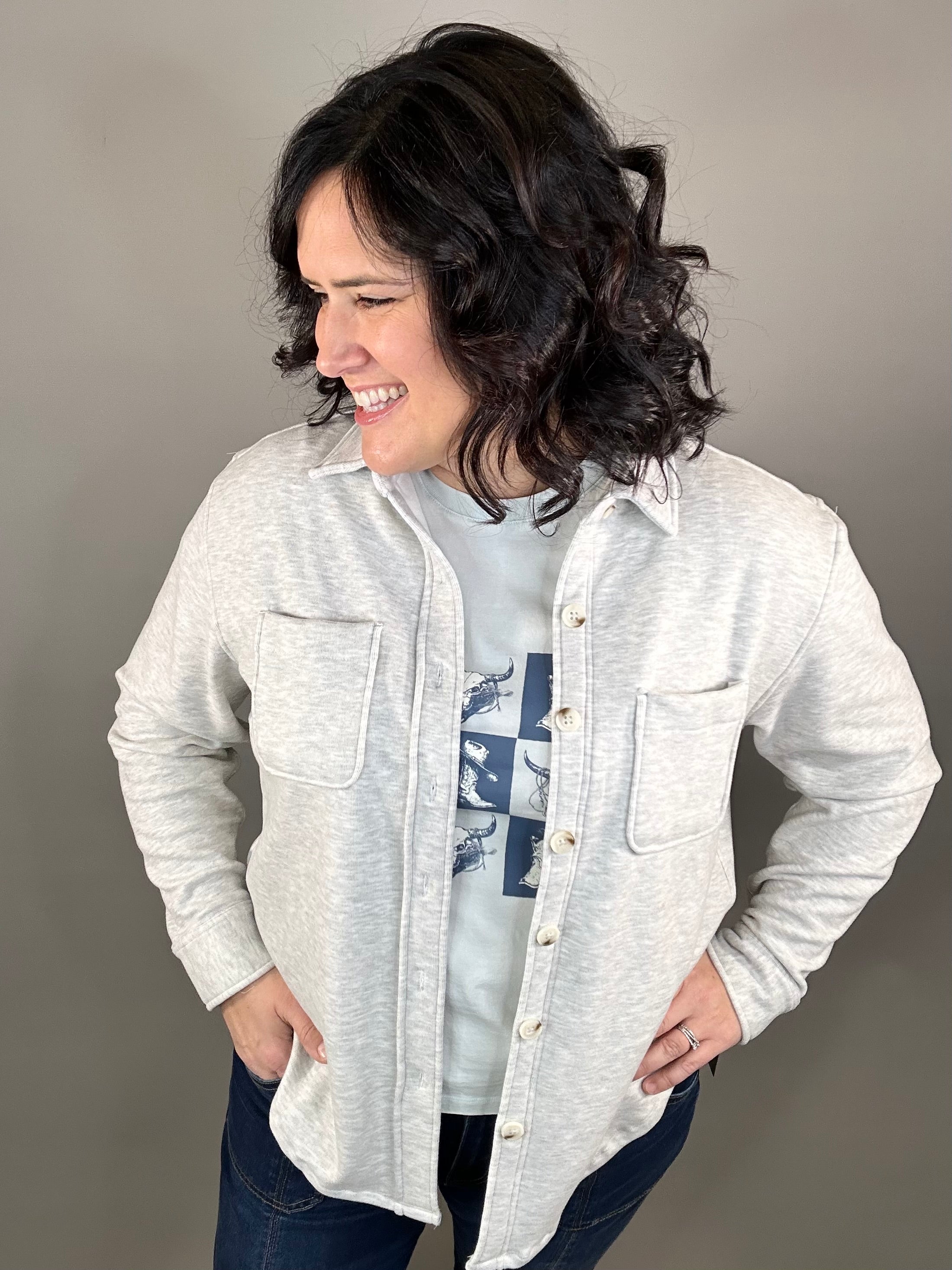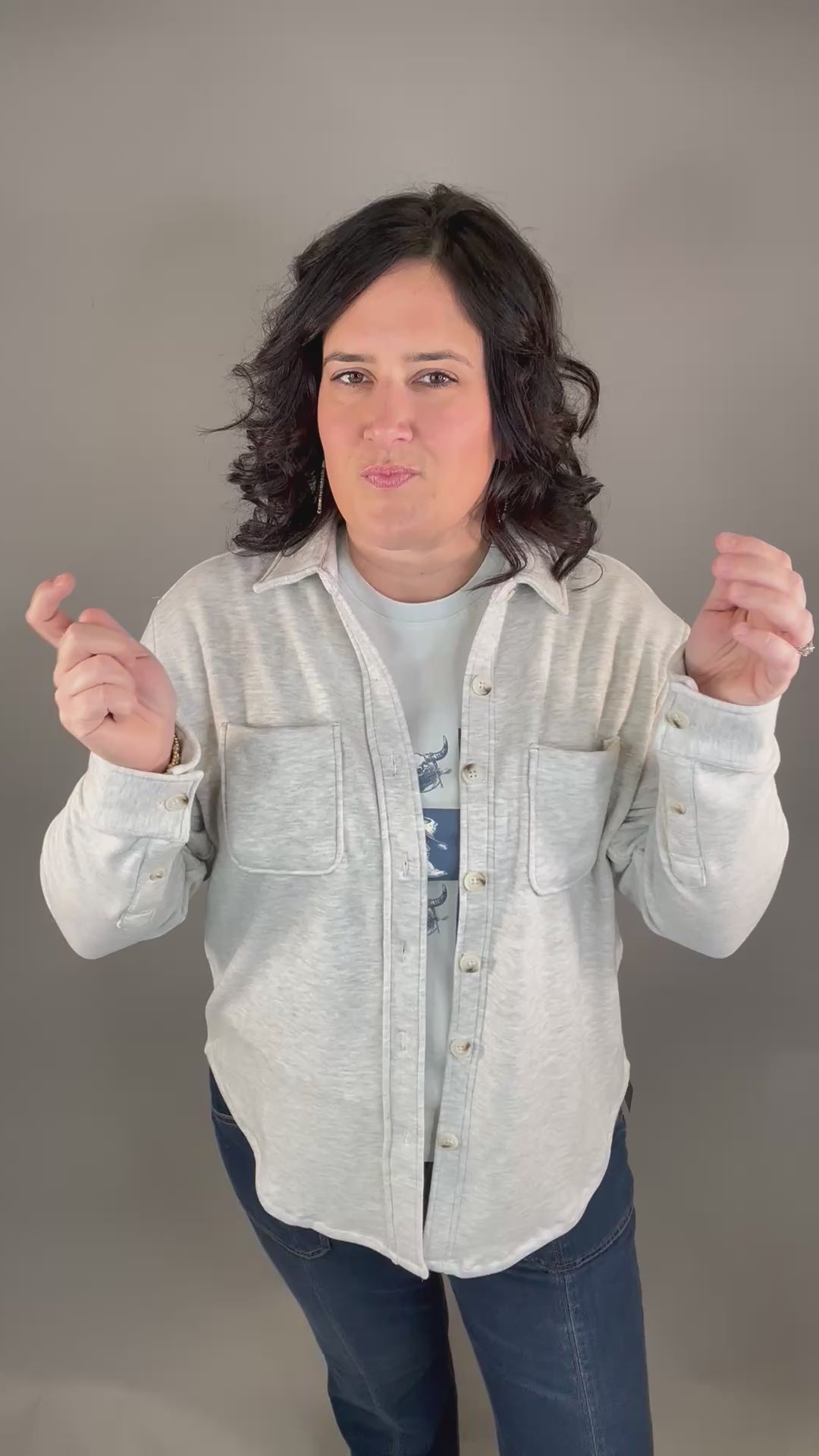 Heather Grey Plush Shacket Outerwear - Shacket FLAG AND ANTHEM