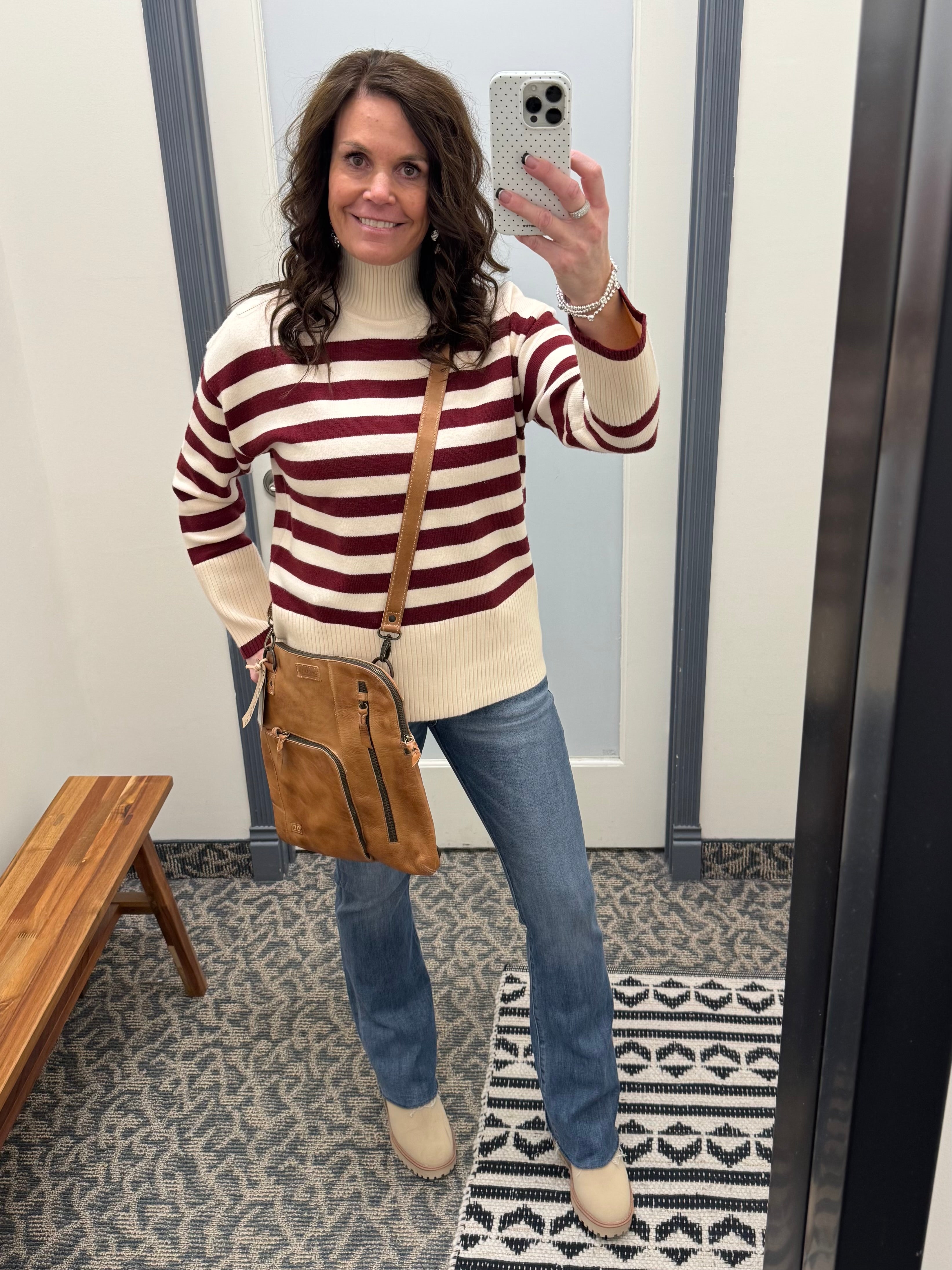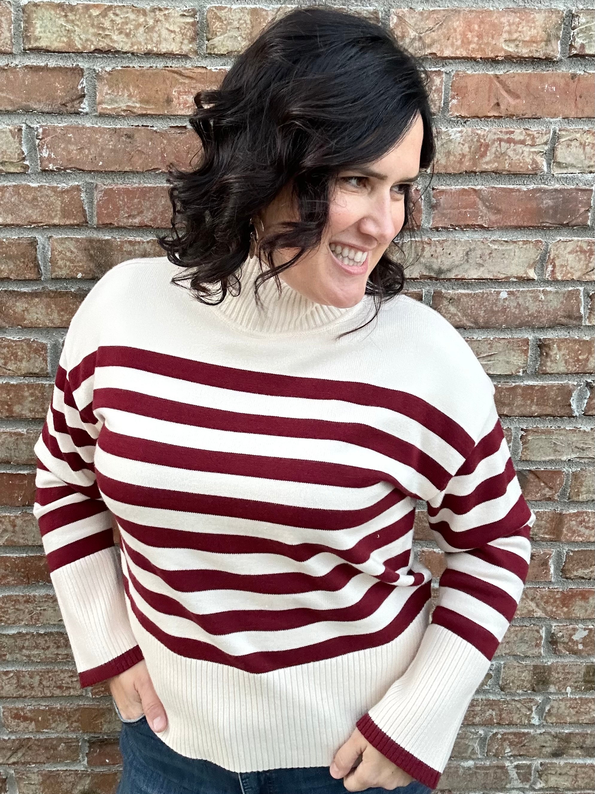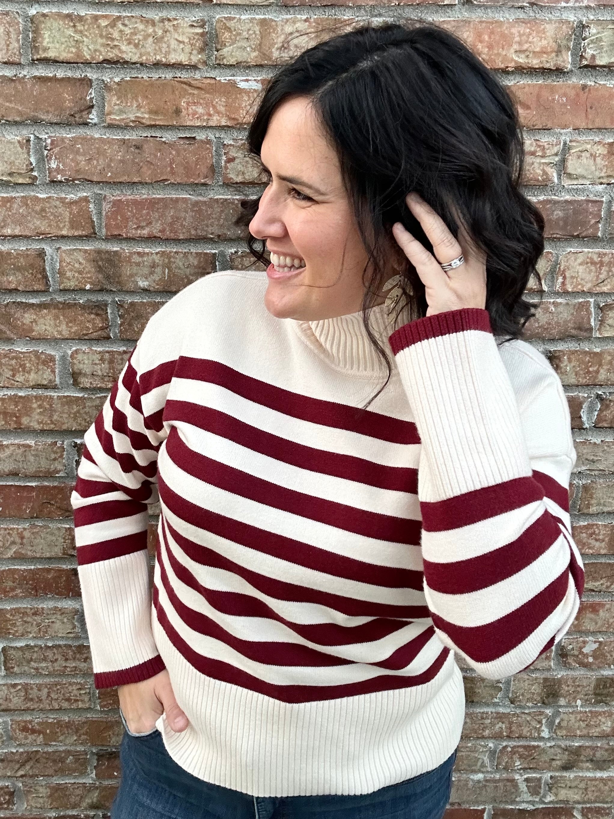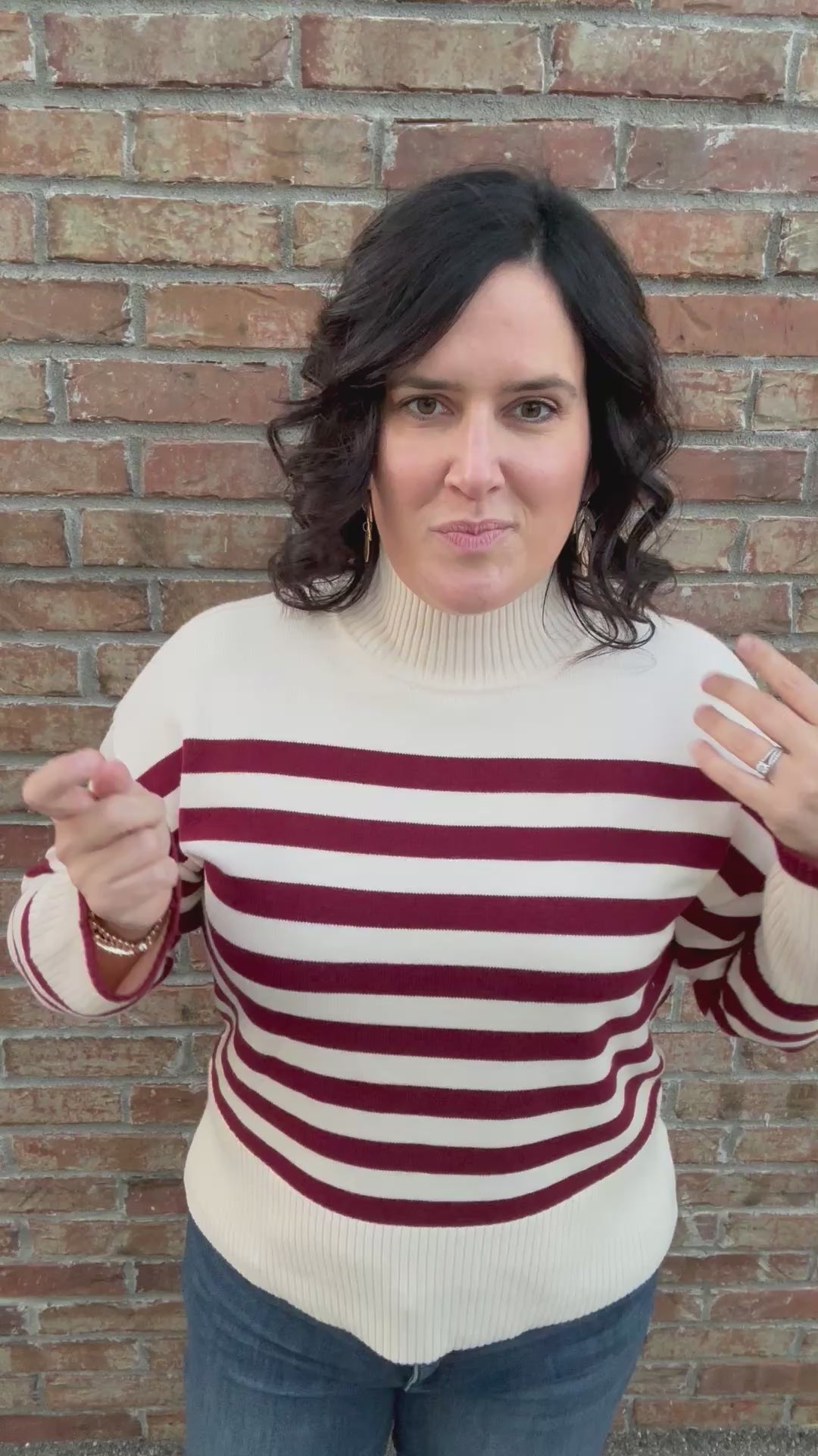 Wrap yourself in warmth and sophistication with the Caden Ivory Stripe Sweater. This timeless turtleneck pairs effortless elegance with buttery-soft comfort. Designed in cozy ivory with warm red stripes, it’s the perfect blend of classic charm and modern comfort — a sweater that feels as good as it looks.