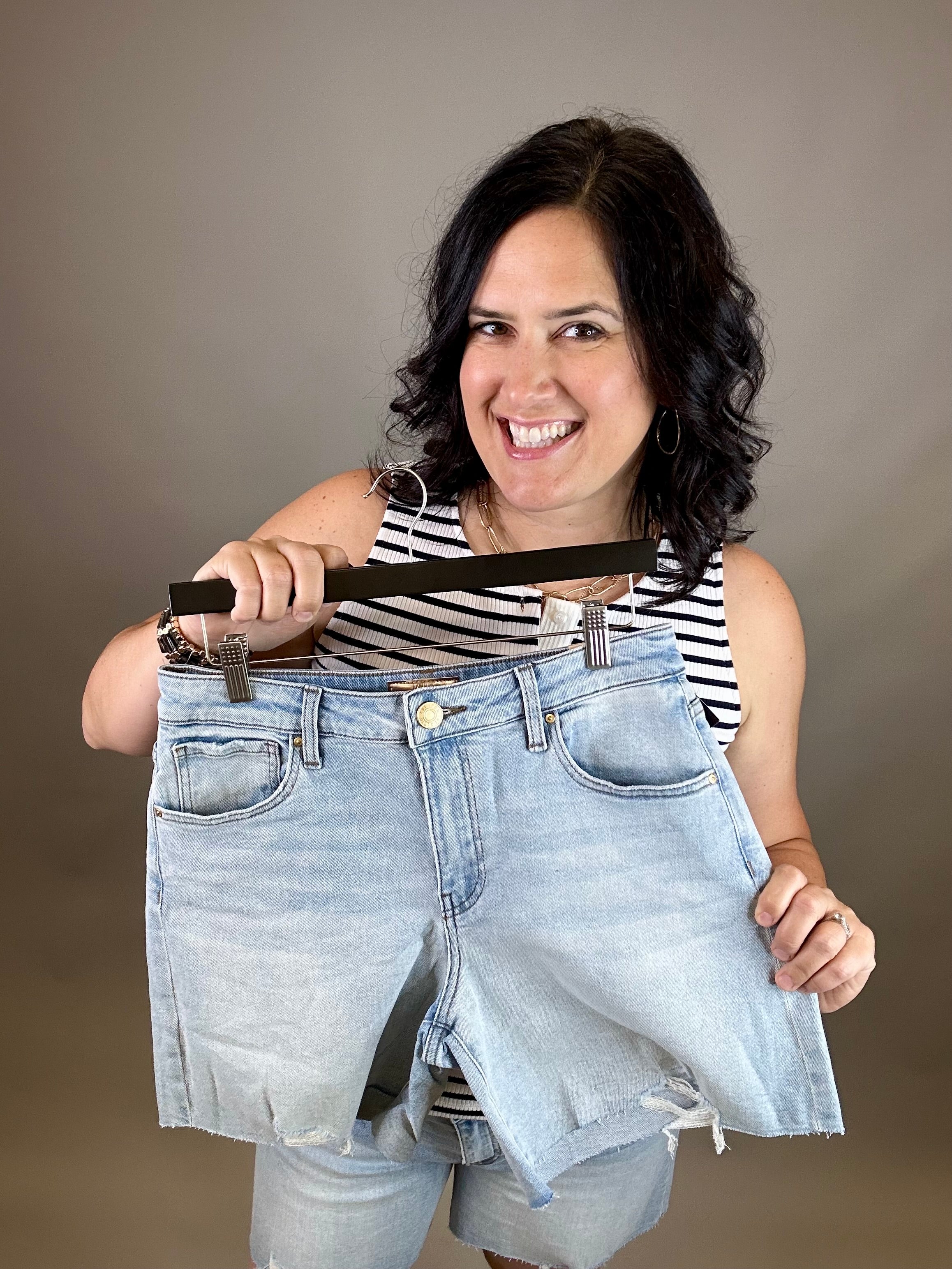 Crafted from soft, breathable denim with a hint of stretch, they feature mild distressing for that perfectly broken-in look. These are the shorts you’ll reach for when you want a laid-back feel with a polished finish.