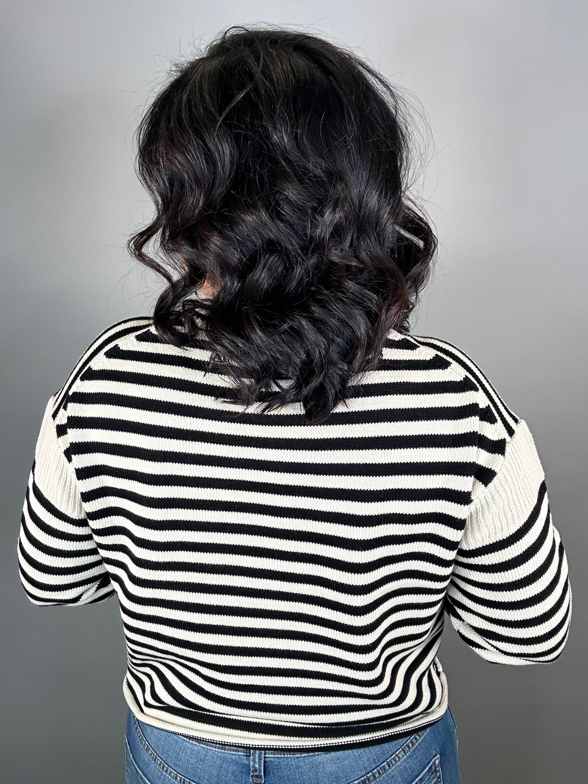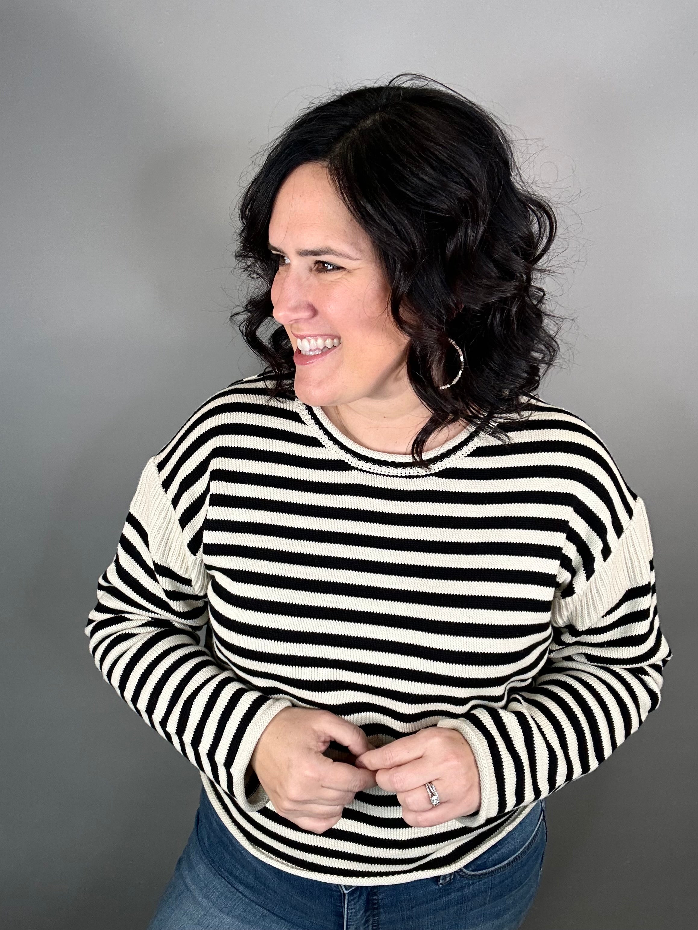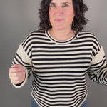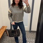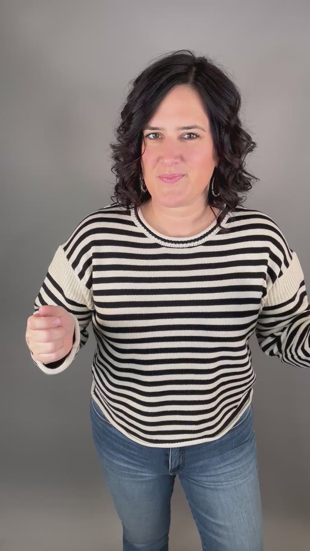 ✨ Classic stripes meet cozy sophistication — the Black/Taupe Striped Knit Sweater from Wishlist makes every day feel stylishly effortless.