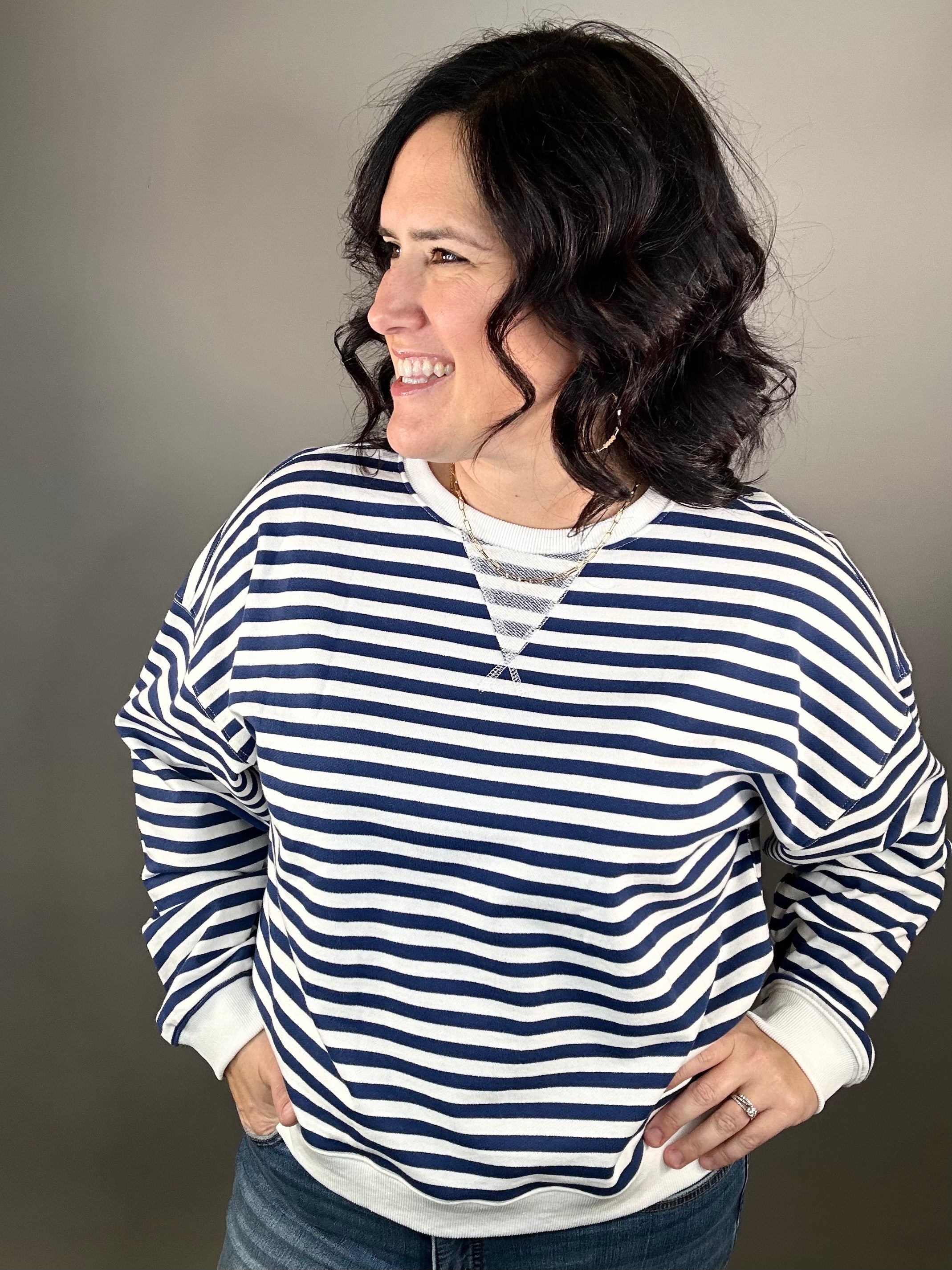 The Striped Pullover from Miou Muse is the perfect blend of laid-back comfort and everyday polish. Crafted from 100% cotton with a soft, lightweight feel, this relaxed oversized pullover is made for easy days and cozy moments — whether you’re lounging at home or heading out for a casual coffee date.
