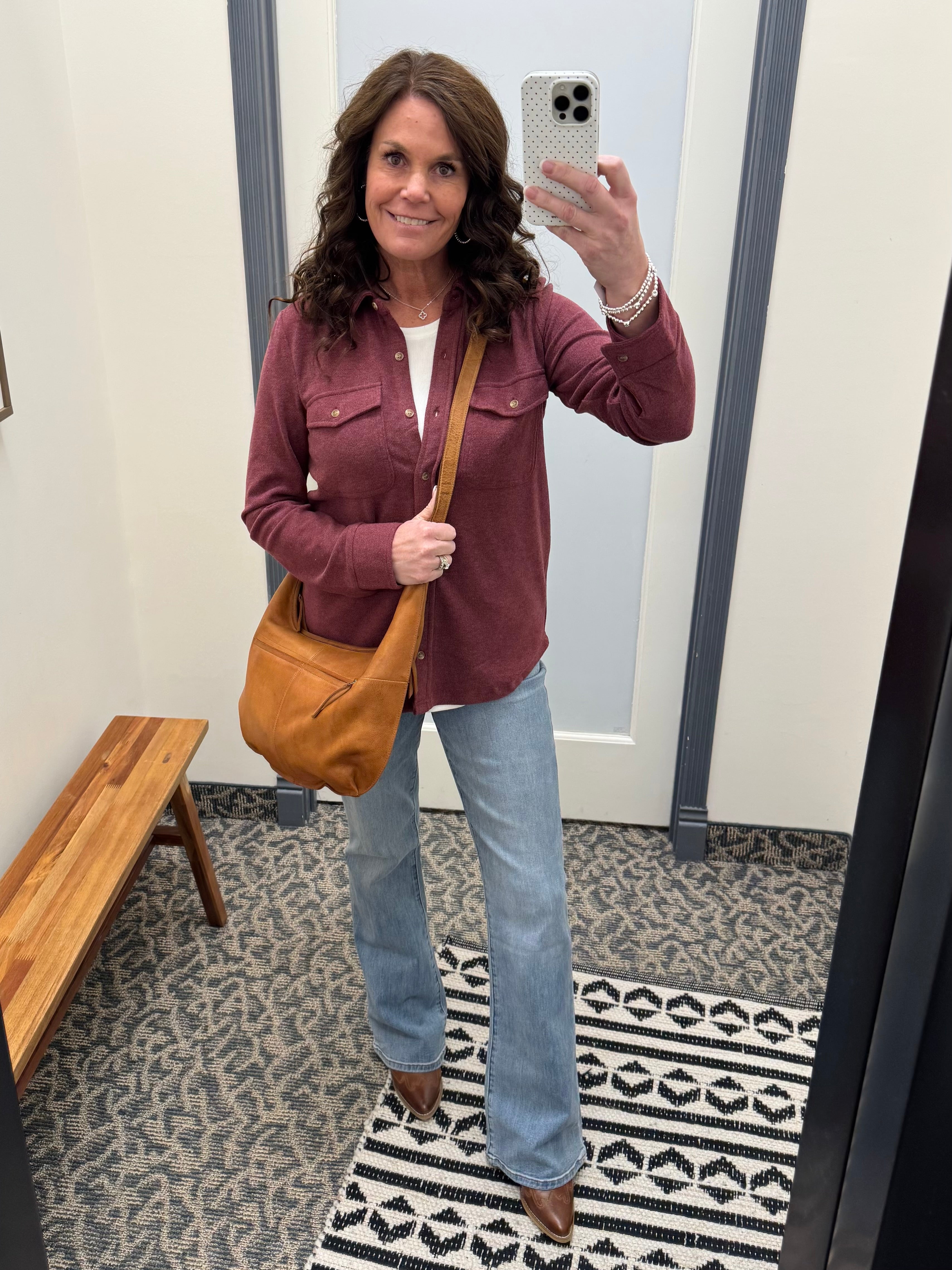 Slip it on and instantly feel effortlessly put-together yet relaxed. The soft, brushed feel gives all the comfort of your favorite lived-in flannel, while the tailored shape and western-inspired details make it feel elevated and fresh.