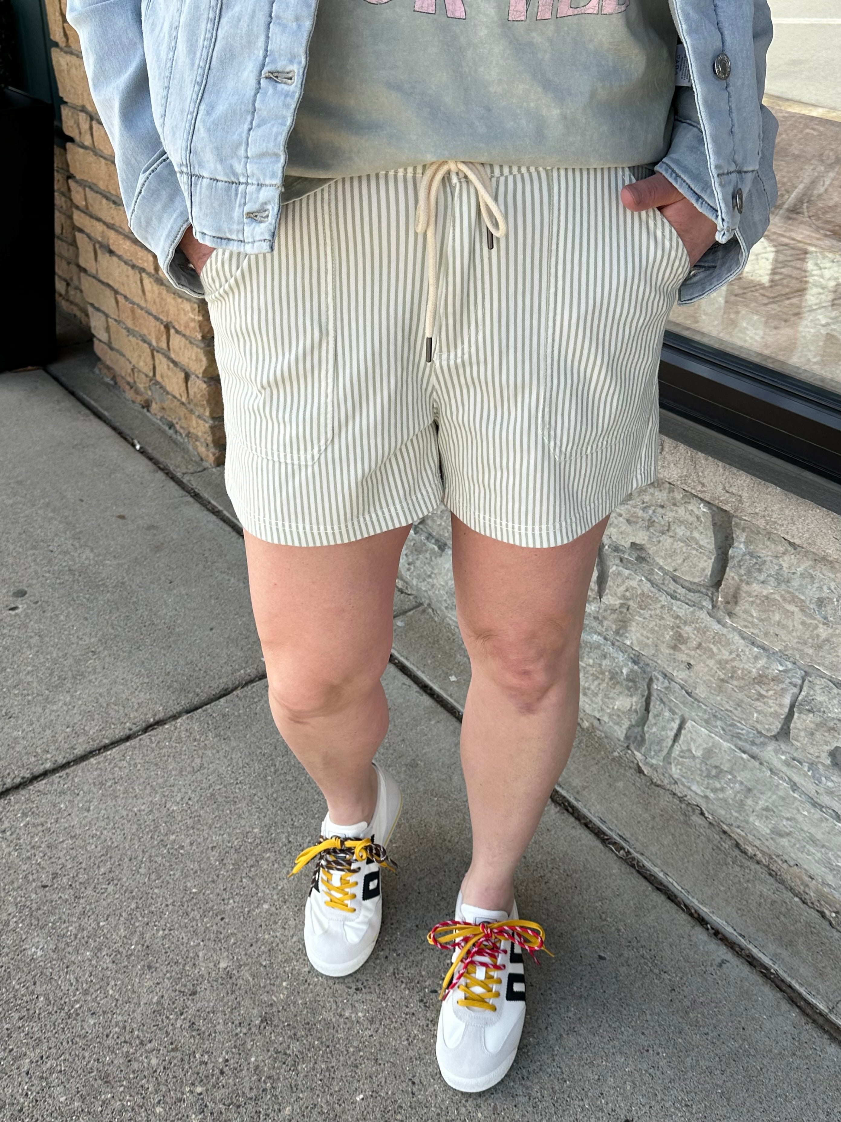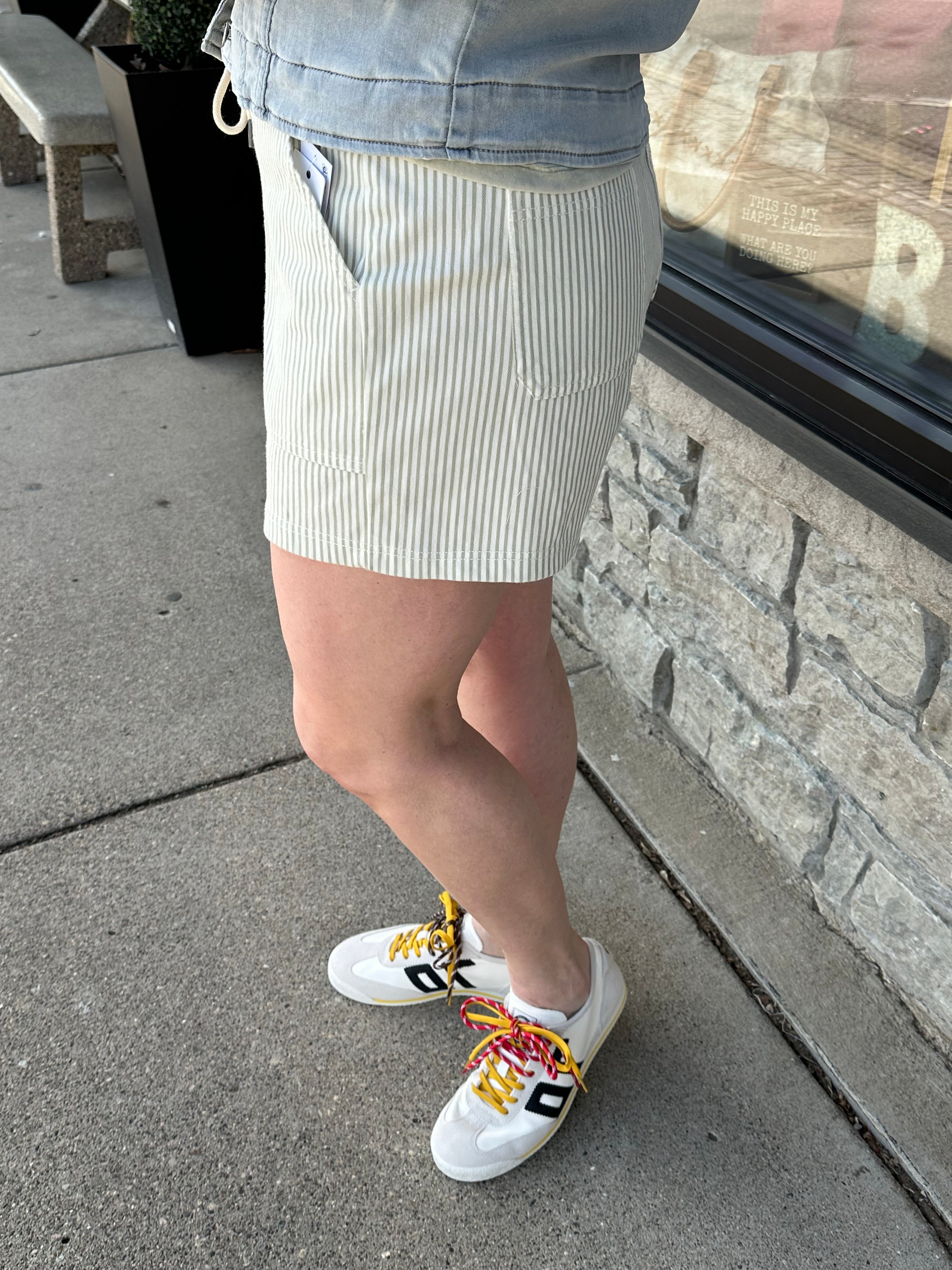 Sage/Cream Buffy Drawstring Shorts