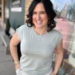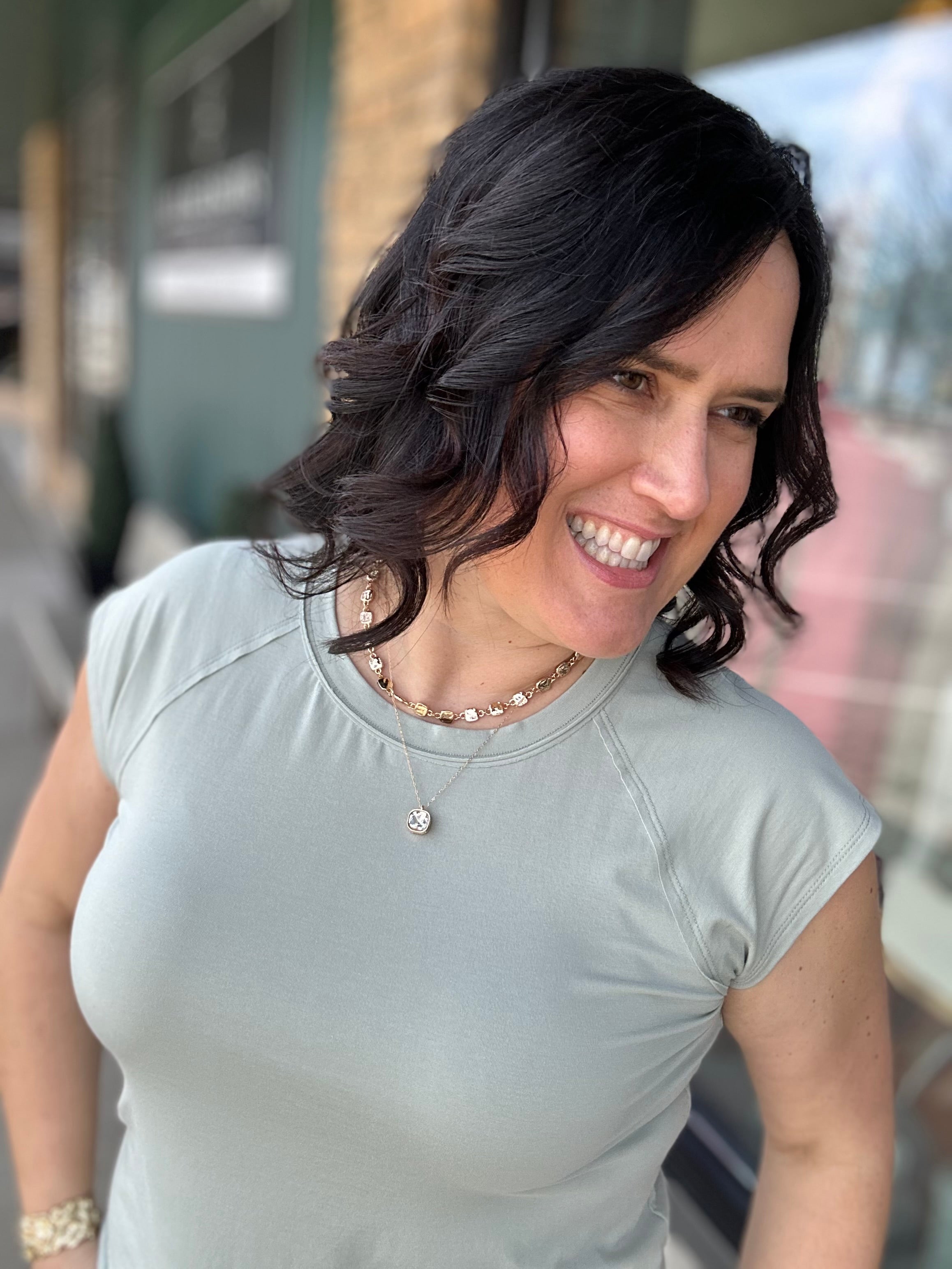 When you slip on the Lillian Tee, you’ll instantly feel relaxed, comfortable, and effortlessly put together. The fabric feels incredibly soft against your skin while the sage color adds a calm, fresh touch to your outfit. It’s that perfect everyday tee that makes you feel confident and ready for whatever your day has in store.