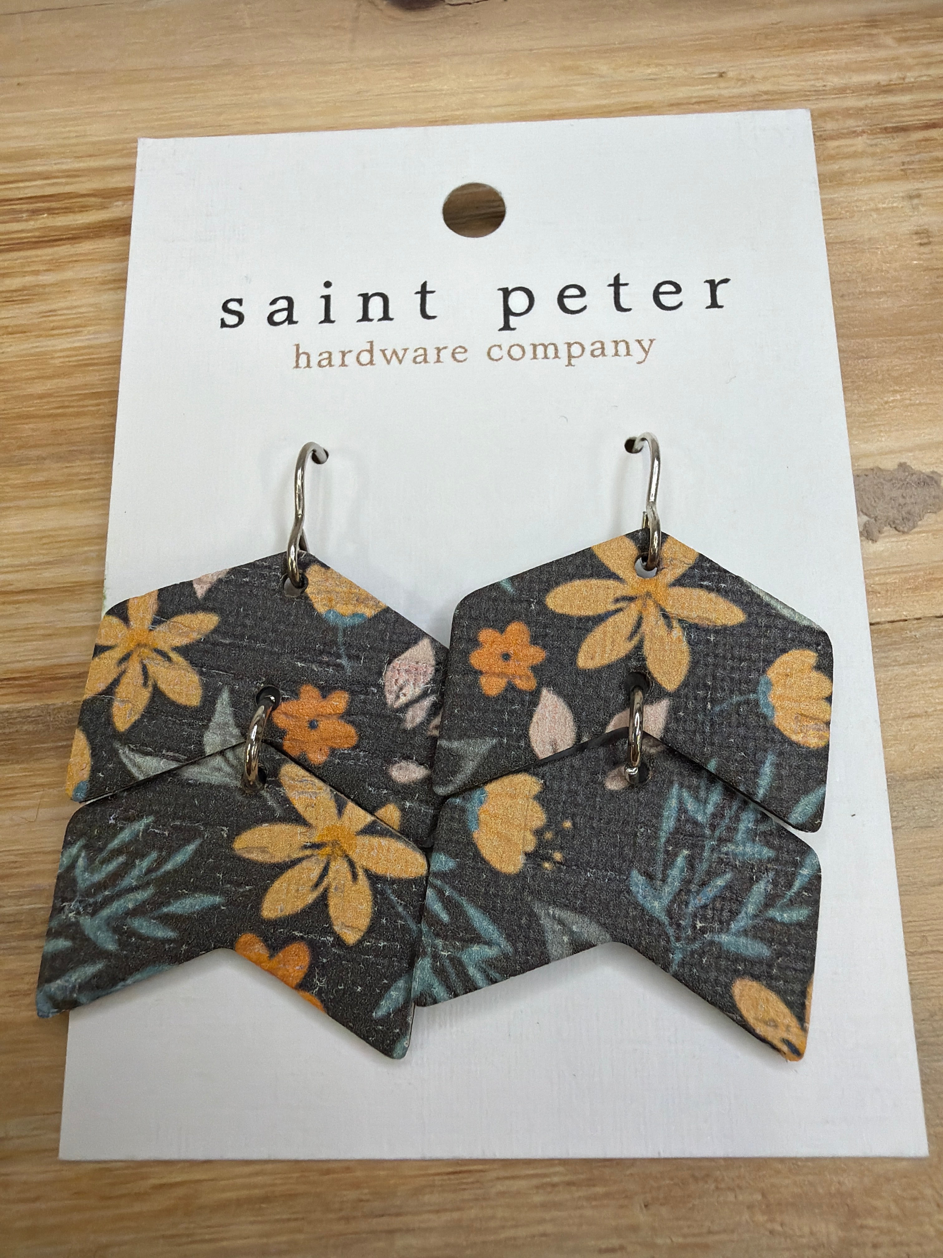 Charcoal Floral Chevron Earrings