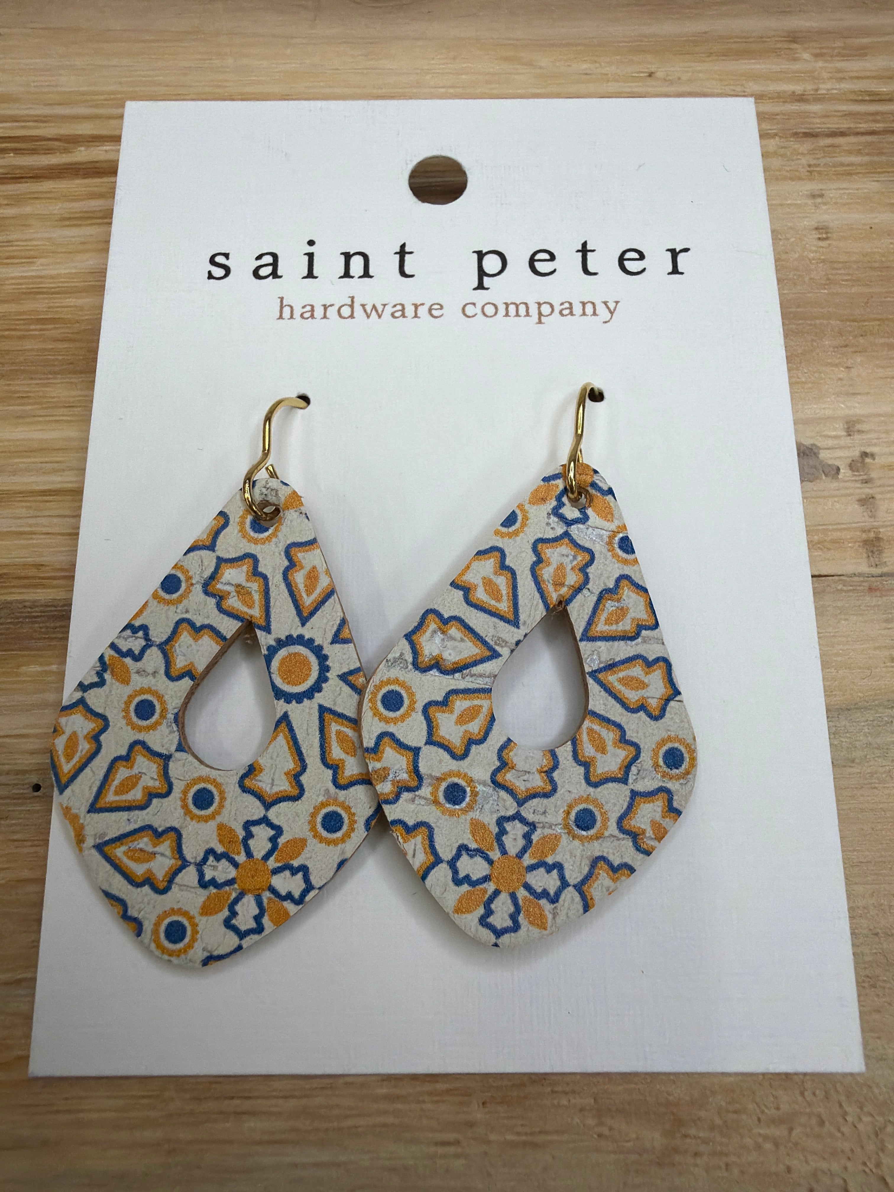 Mustard/Blue Pattern Drop Earrings