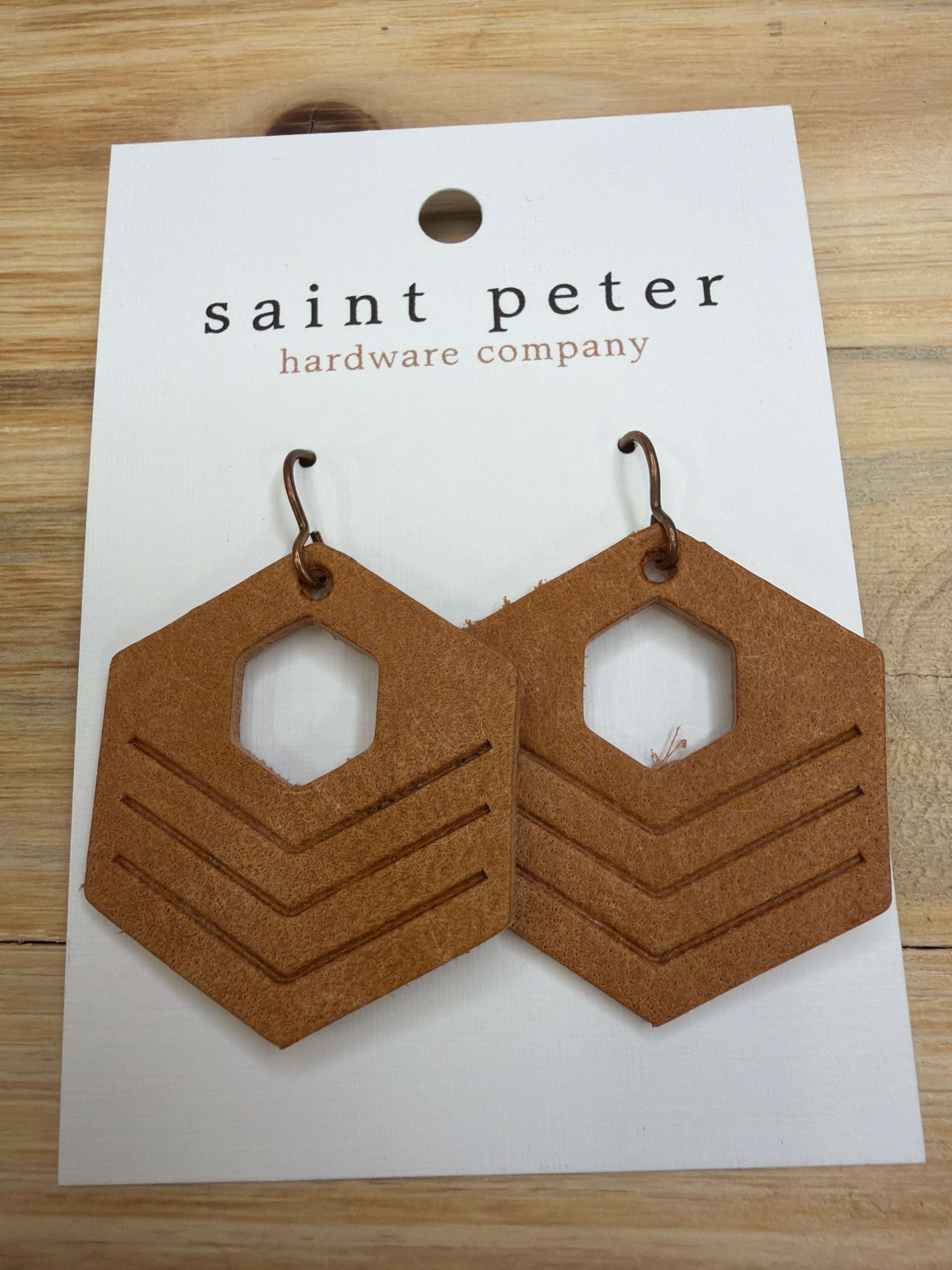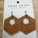 Tan Leather Hexagon Earrings