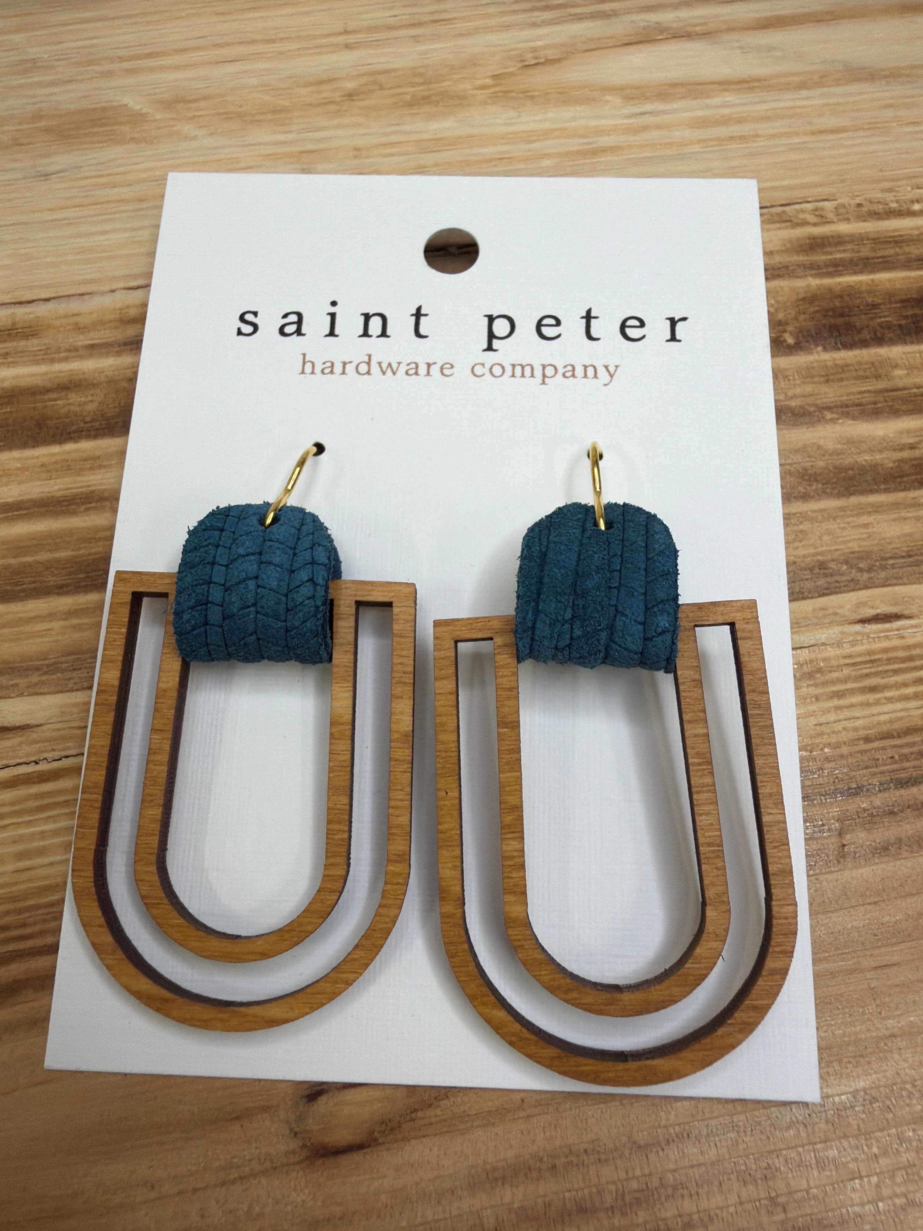 Teal Wood Drop Earrings