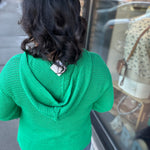 Green Drawstring Knit Hooded Sweater