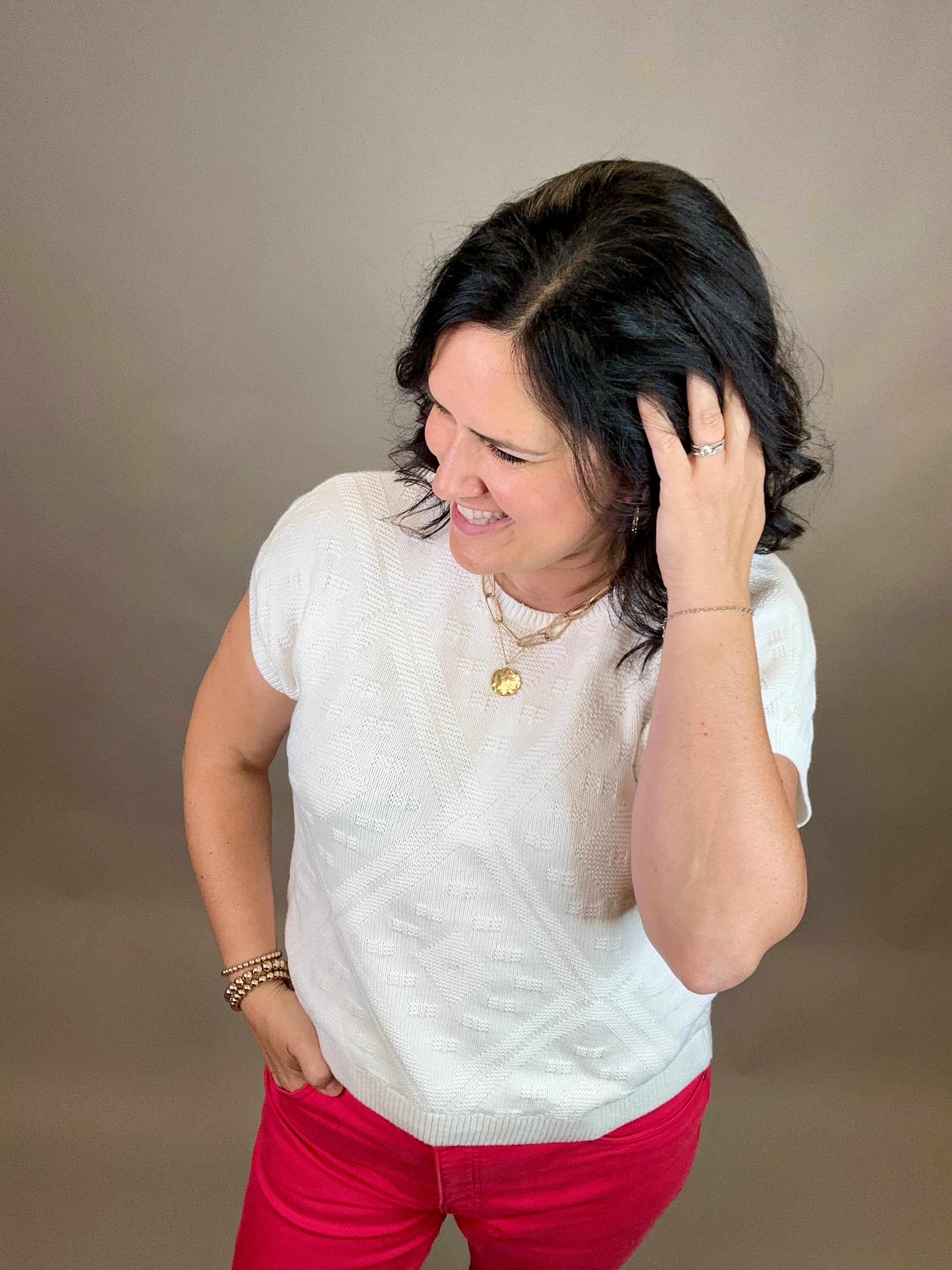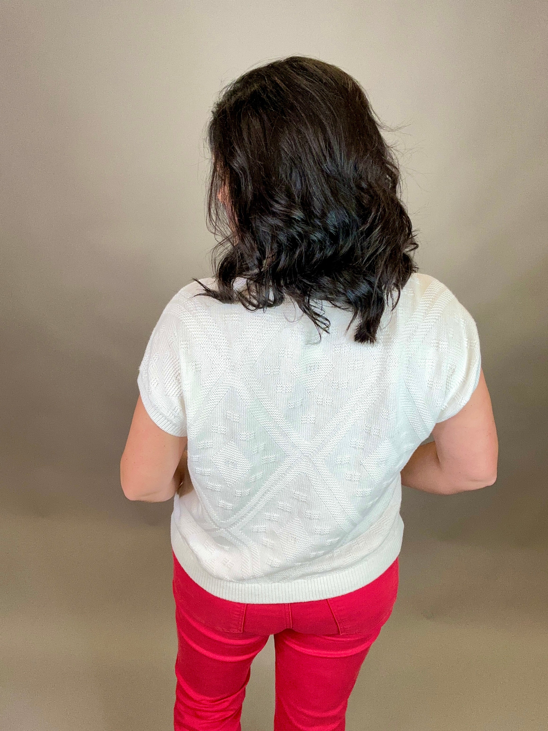 The Laurel Southwest Sweater brings a perfect blend of cozy texture and effortless style. With its lightweight cotton knit, subtle Southwest-inspired design, and short sleeves, this sweater makes you feel laid-back, grounded, and stylishly unique—like your favorite road trip in sweater form.