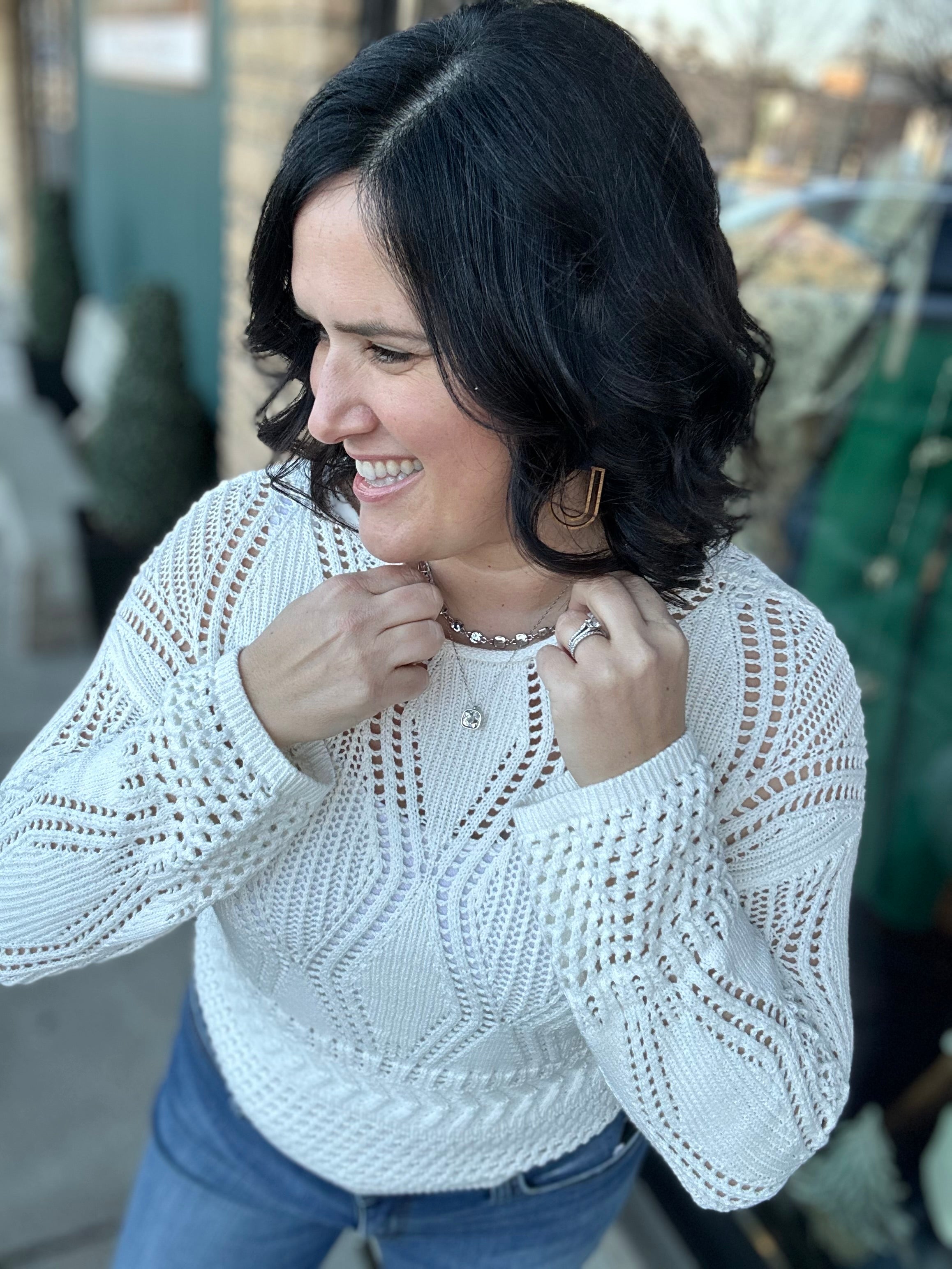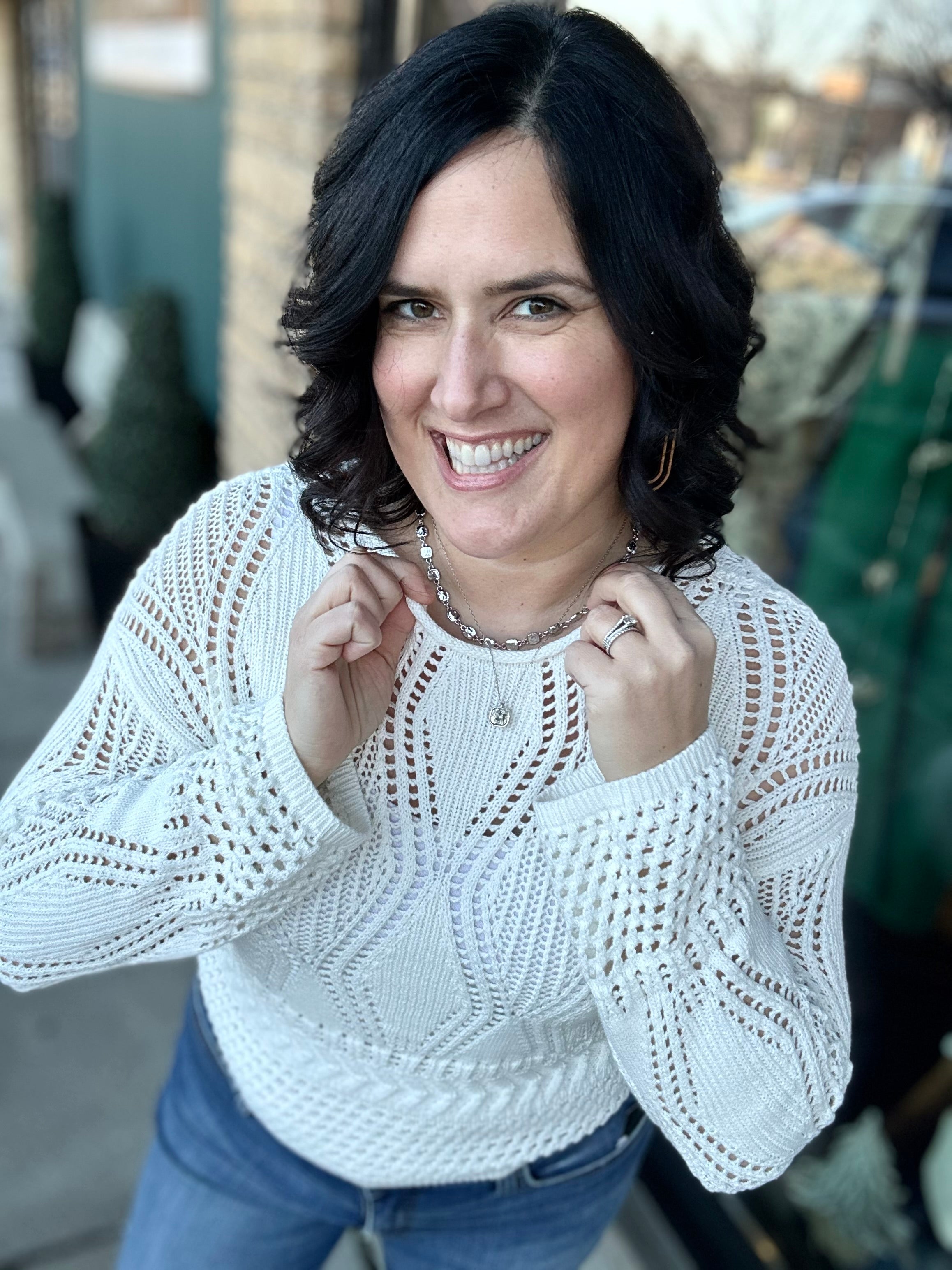 🤍 Easy, breezy, and endlessly versatile — the White Open Crochet Sweater is a must-have layering piece you’ll reach for again and again.