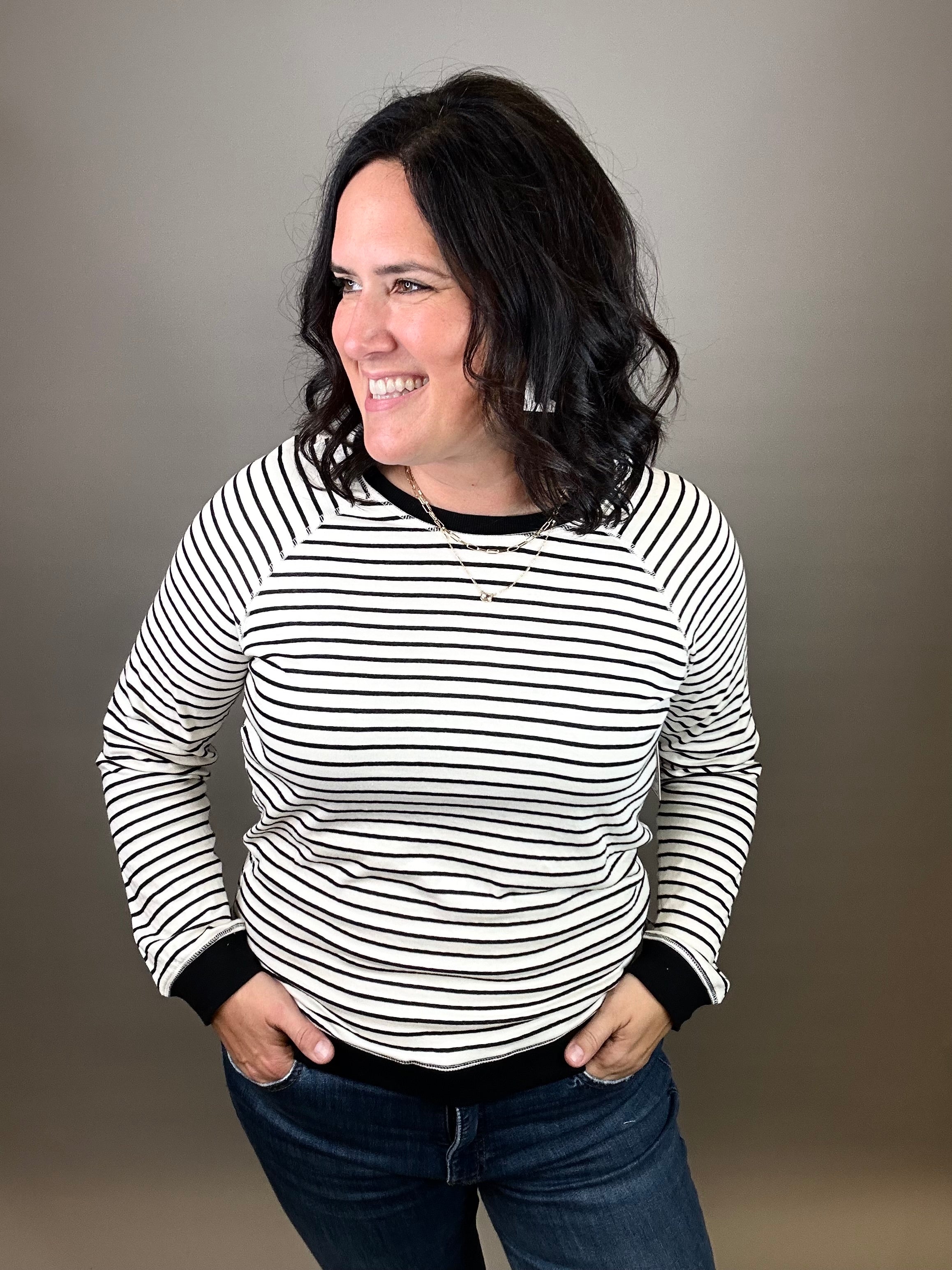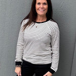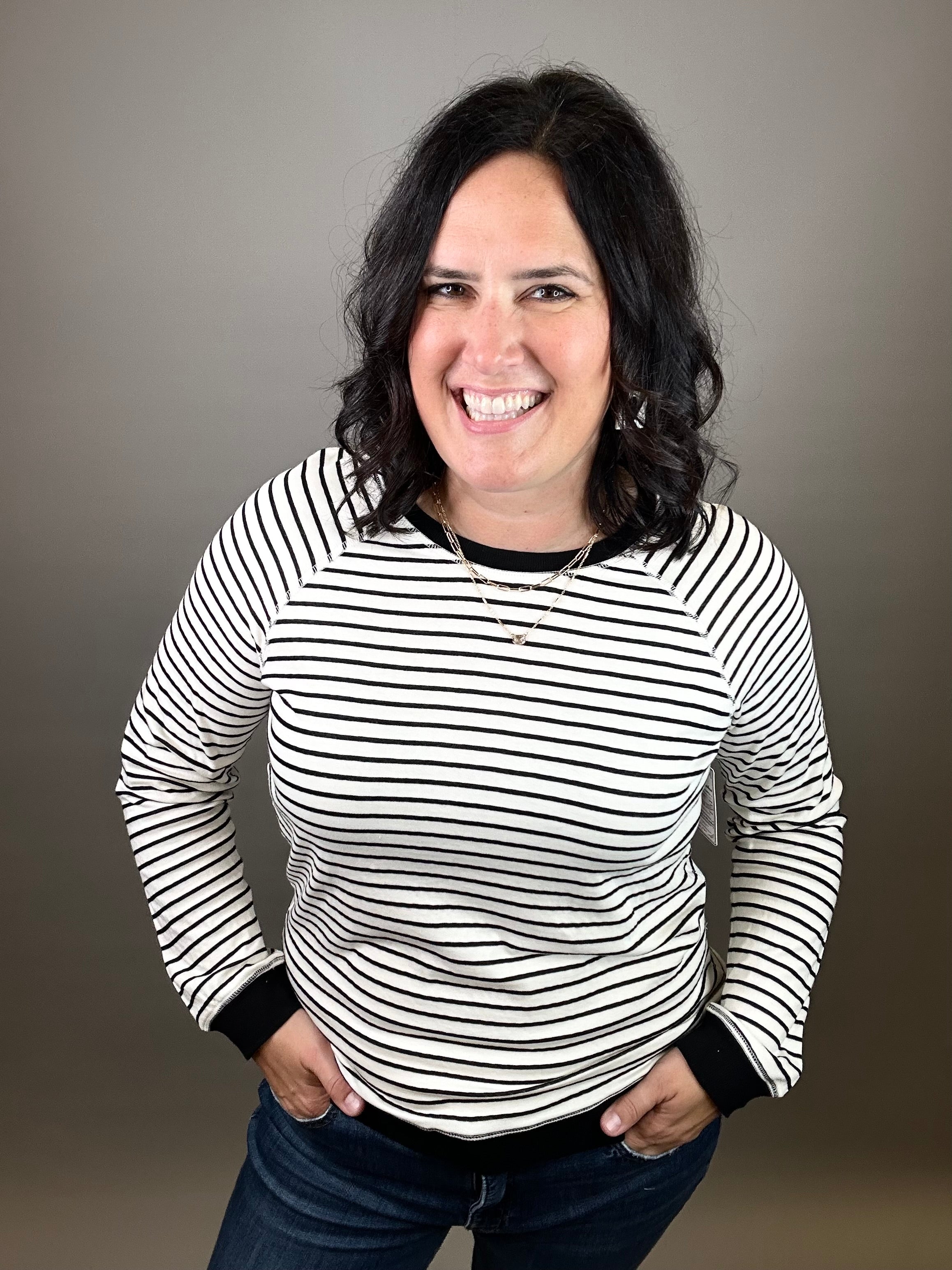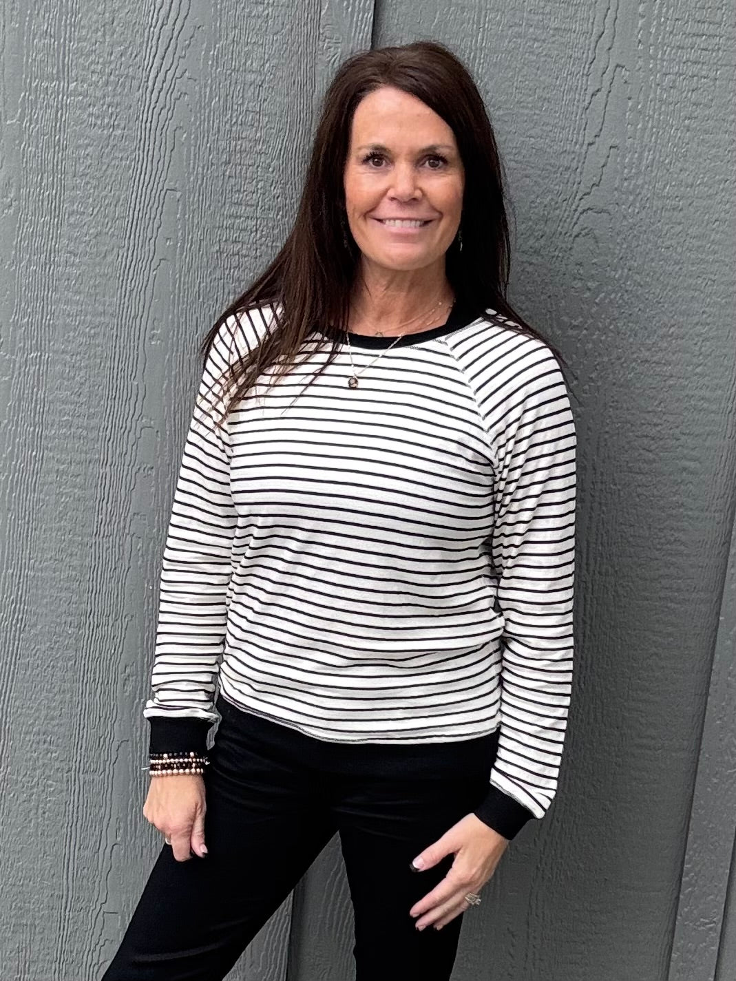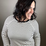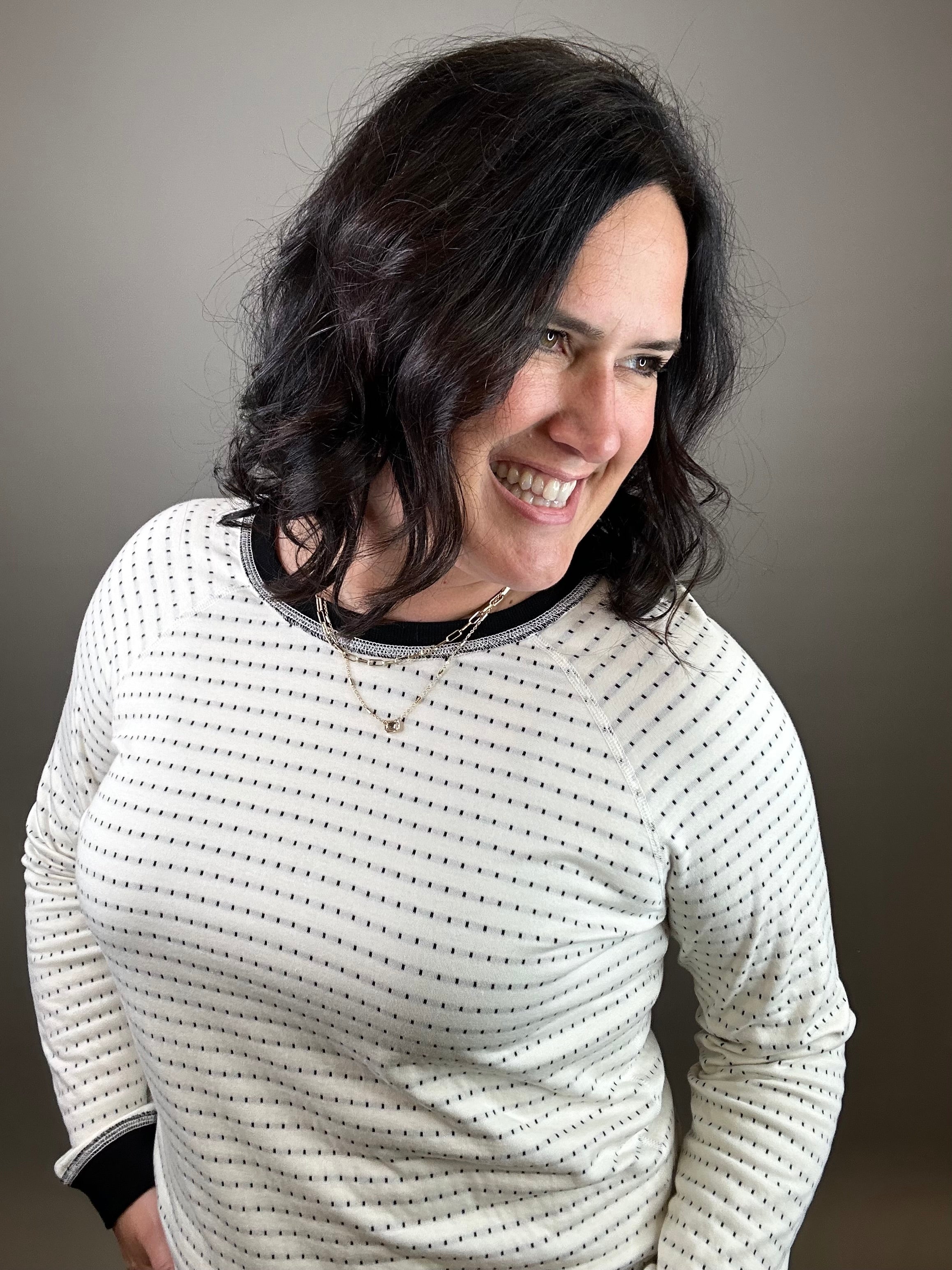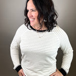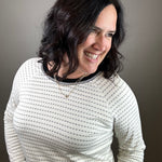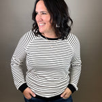 Twice the style, one cozy favorite. The Frannie Top from Flag and Anthem is the ultimate in versatility — a reversible long-sleeve top that gives you two looks in one. One side features classic black stripes on a white base, while the reverse offers a charming white backdrop with tiny black polka dots. Crafted from a soft rayon-cotton blend, it’s breathable, cozy, and perfect for every season.