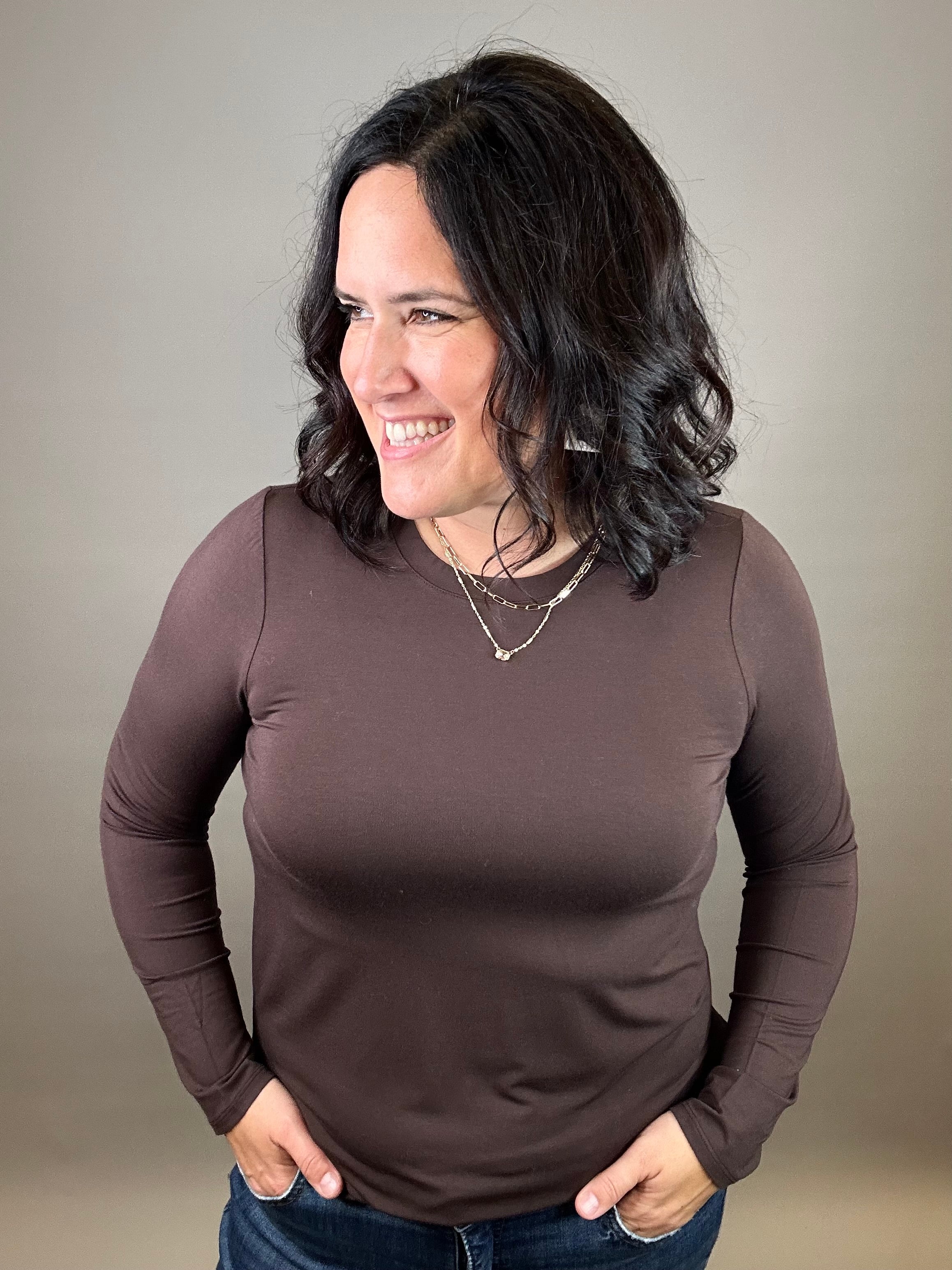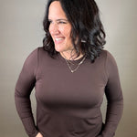 The Stassia Top is the everyday staple your closet has been waiting for—simple, classic, and incredibly soft. Crafted from a buttery modal blend, this long-sleeve crew neck feels silky against your skin and keeps you comfortable from morning to night. With its true-to-size fit, it’s effortless to wear alone or layered under your favorite jackets, cardigans, or vests as the temperatures drop.