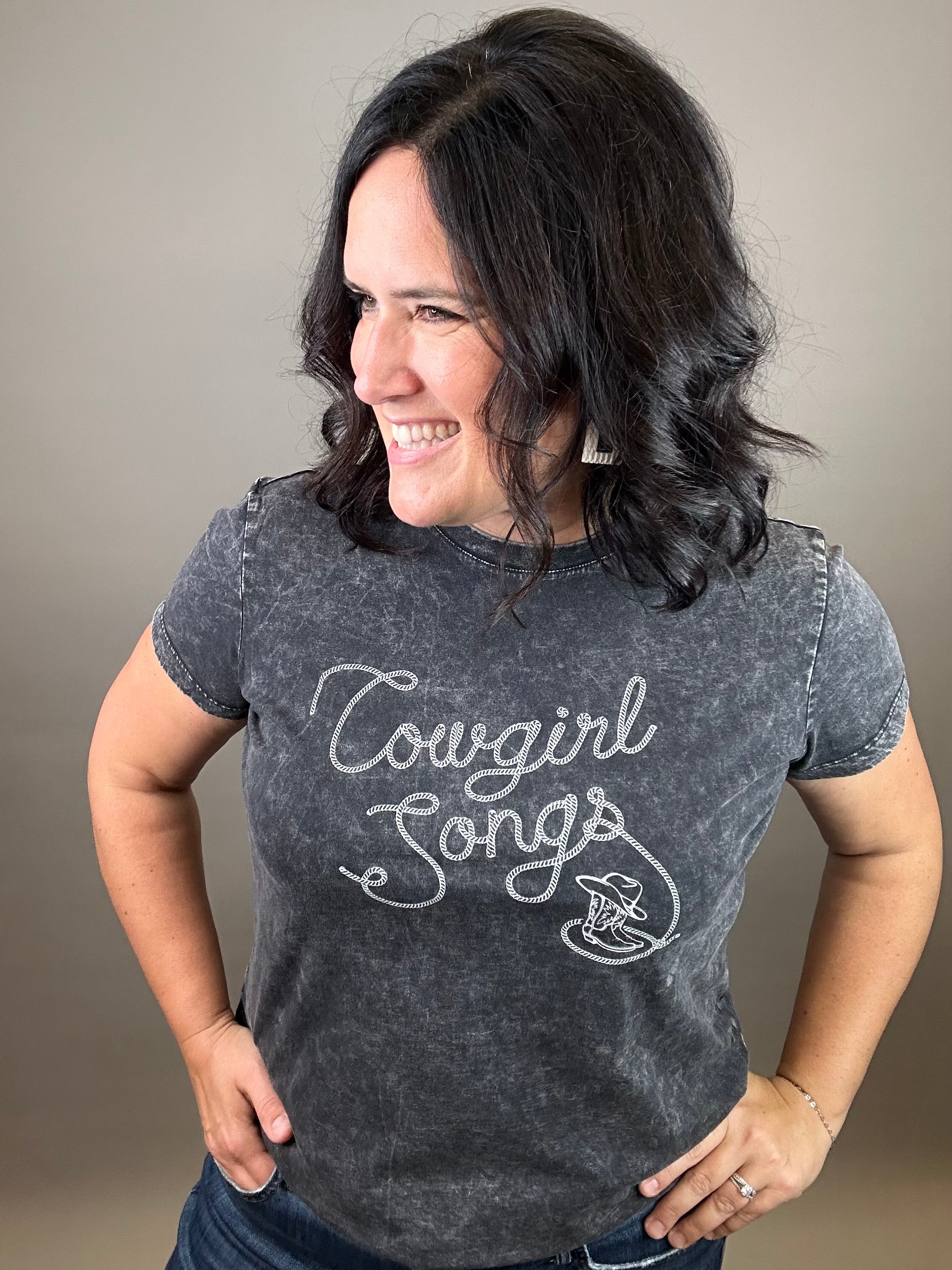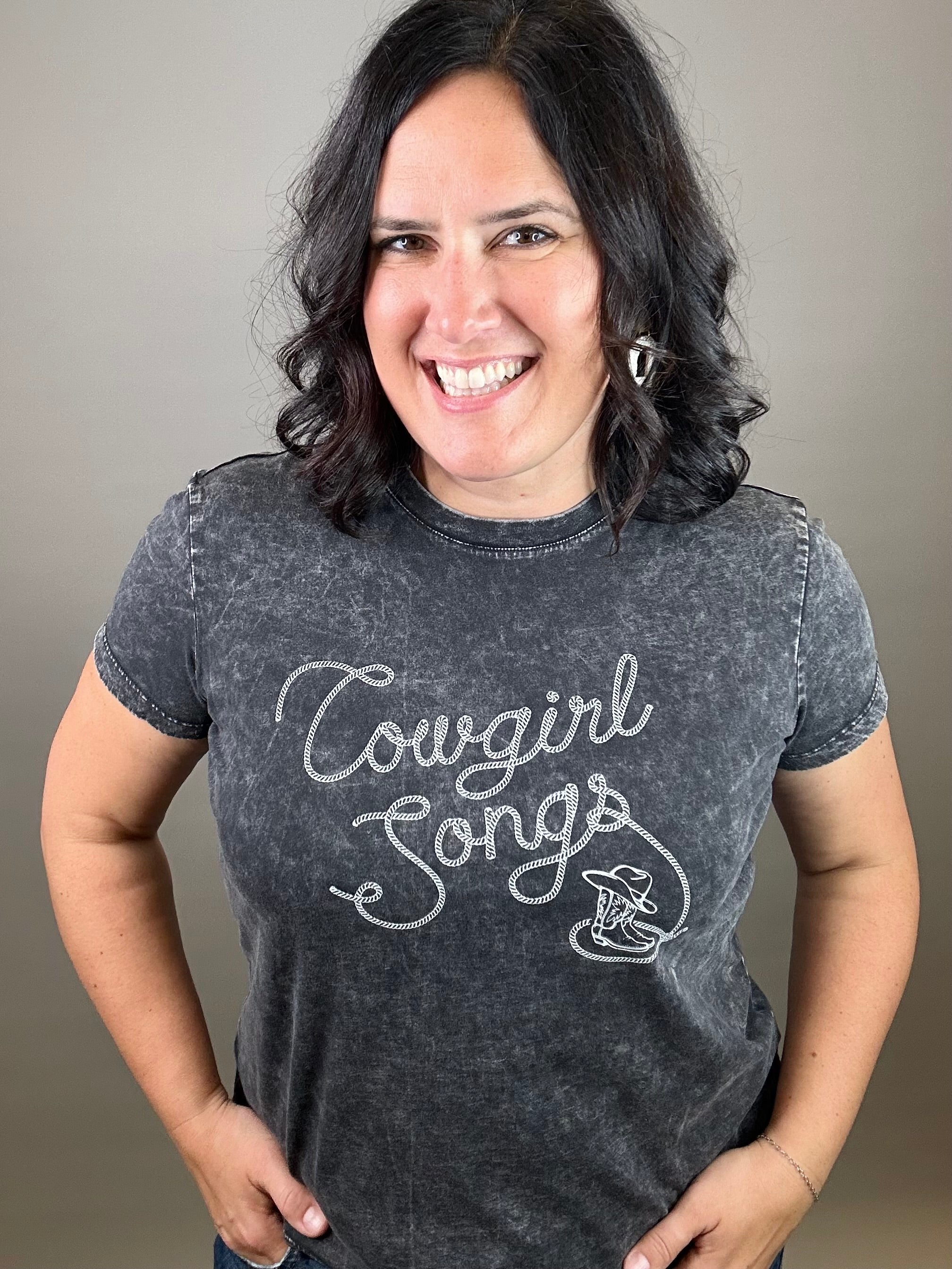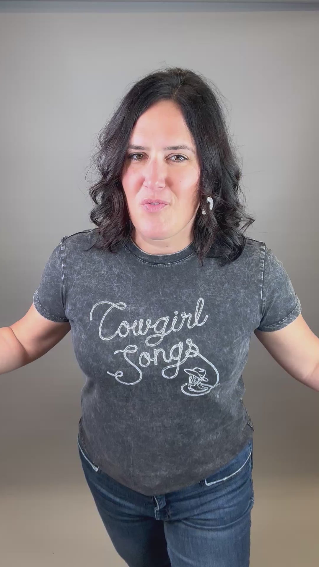 The Cowgirl Songs Tee is that soft, vintage-inspired favorite that feels like it’s been in your closet for years. Crafted from 100% cotton with a subtle washed effect, this relaxed-fit crewneck reads “Cowgirl Songs” in a faux embroidery print — giving you effortless Western charm with a touch of nostalgia.