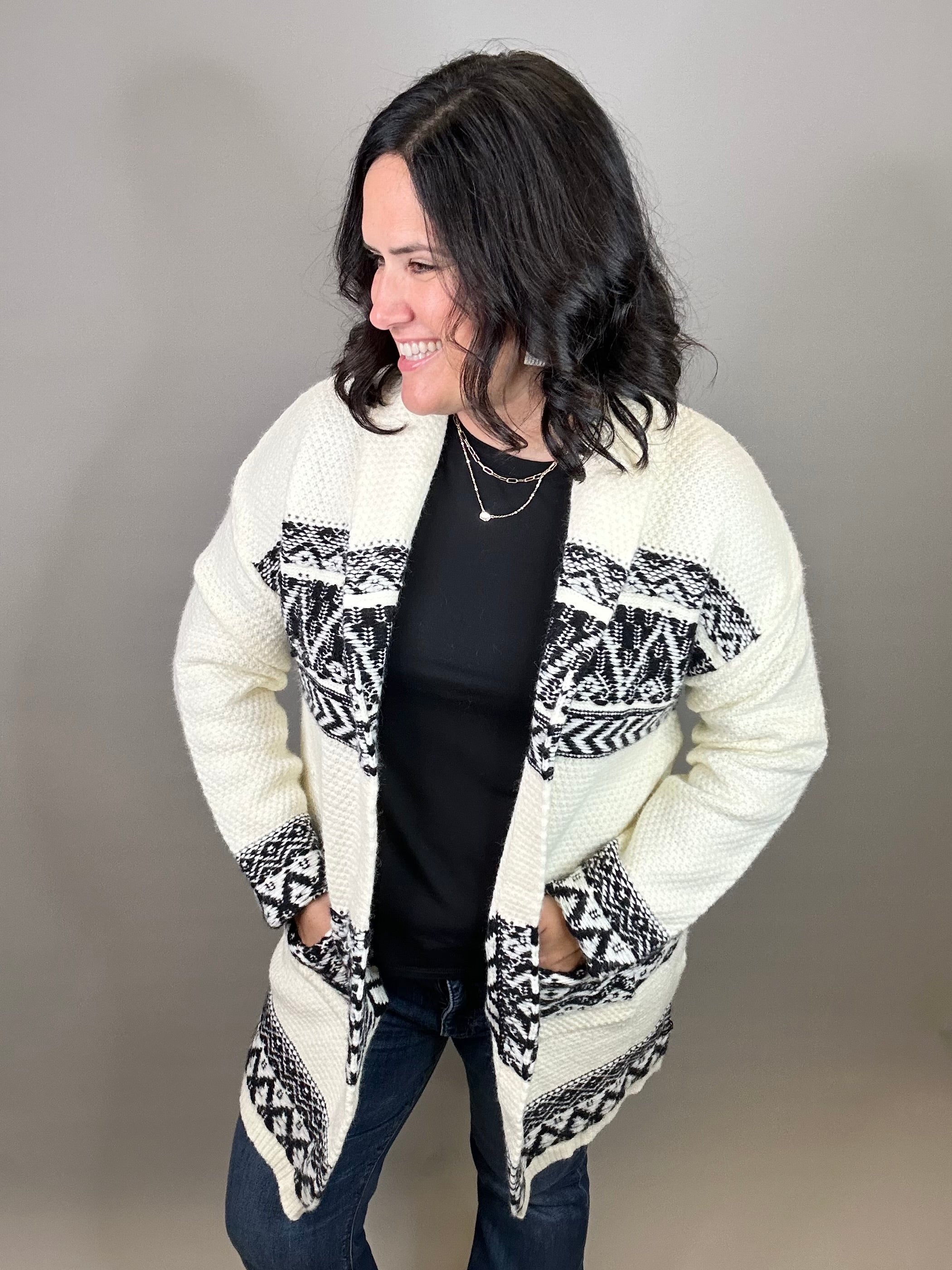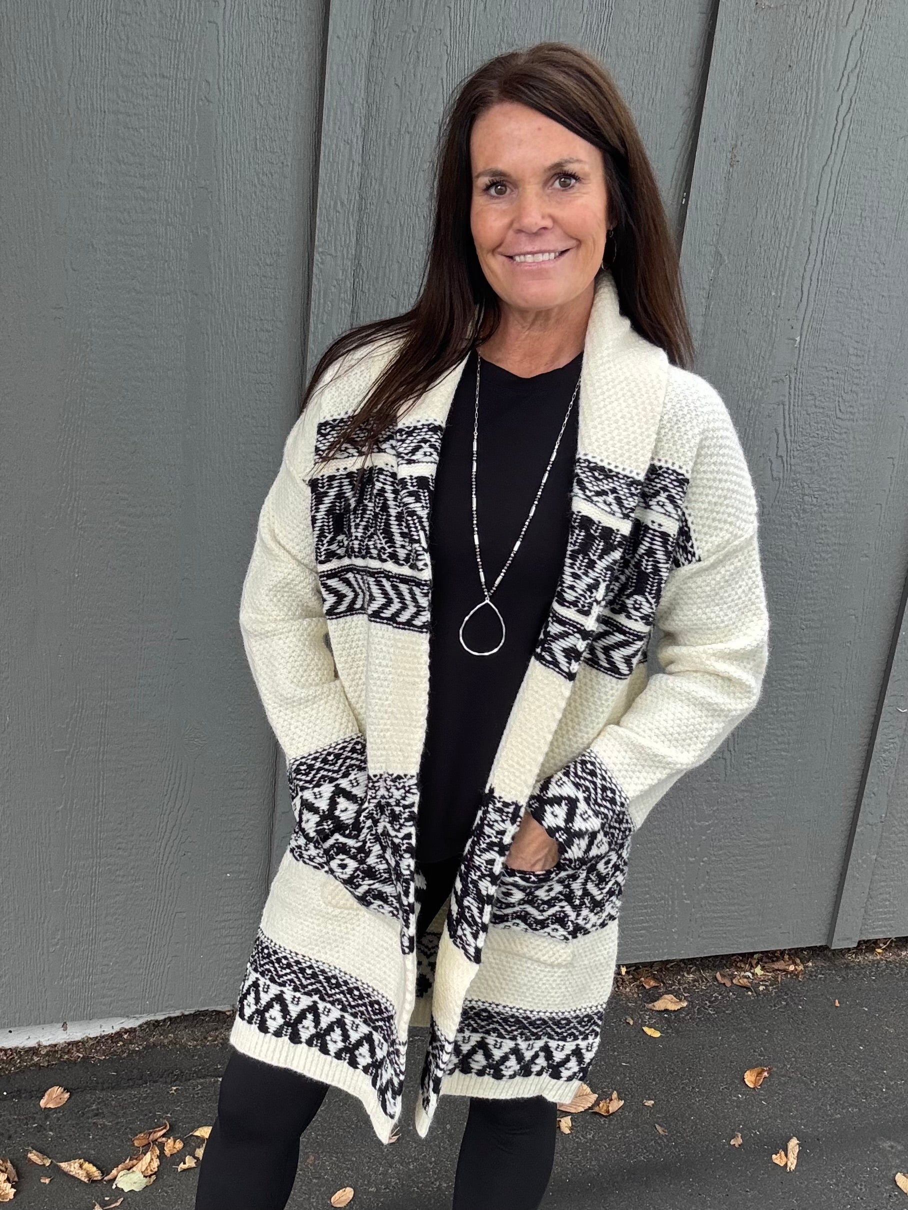 Ivory/Black Motif Coatigan
