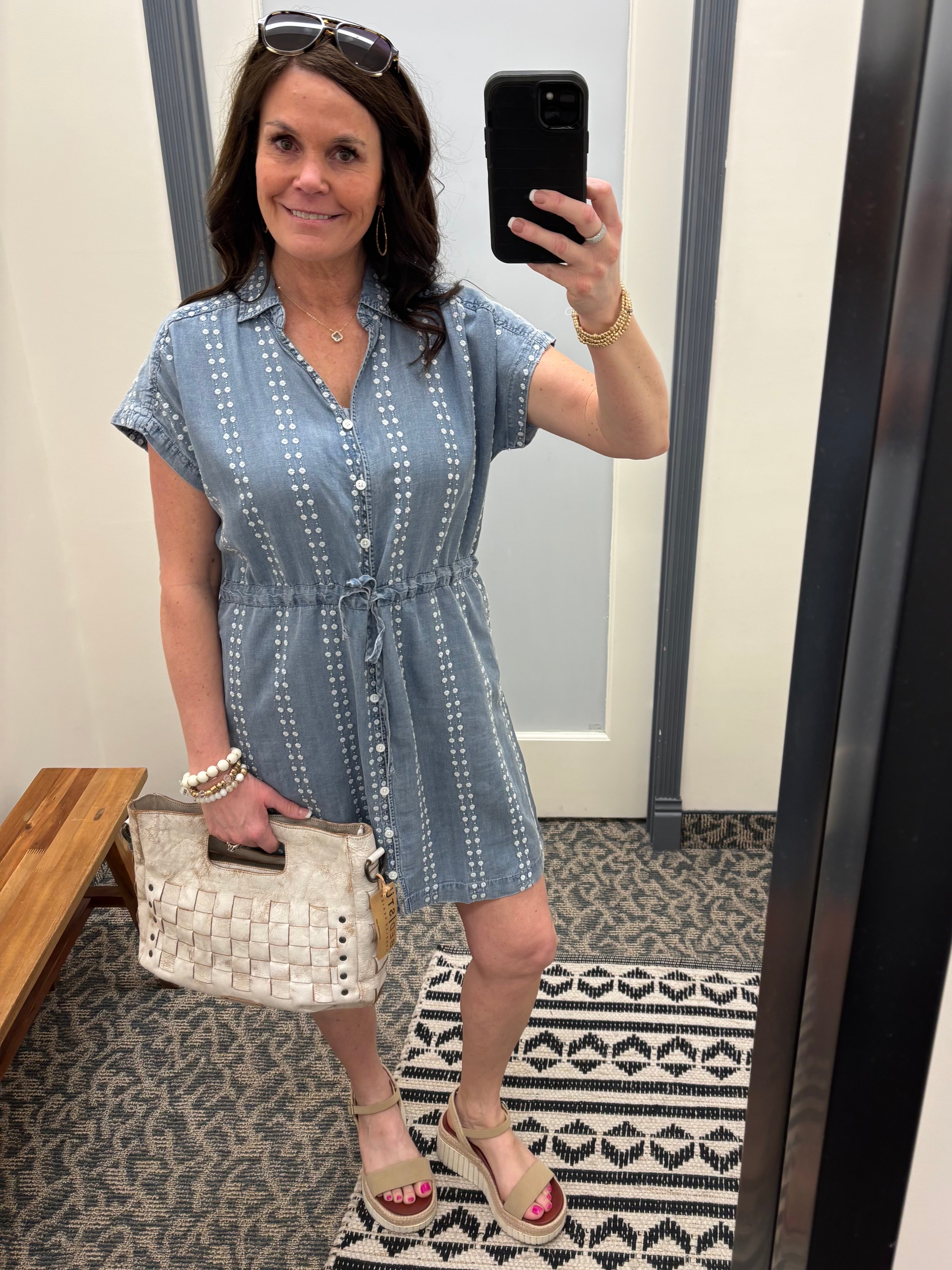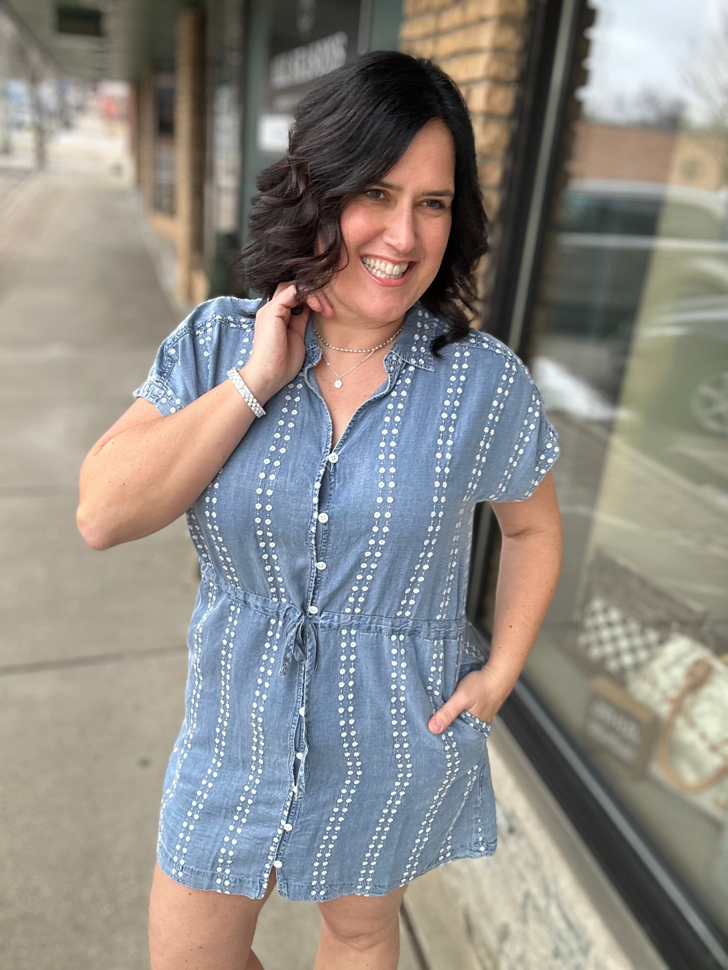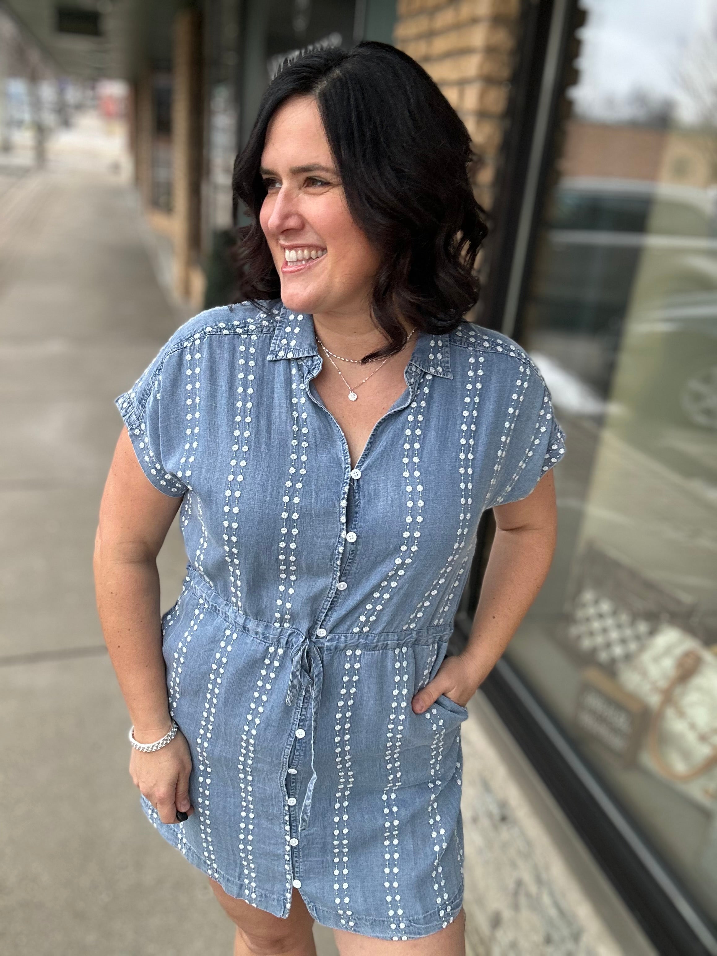Easy, breezy, and effortlessly charming — the Natalia Dress from Thread & Supply is one of those throw-on-and-go pieces that instantly makes you feel put together. With its soft daisy stripe pattern, flowy silhouette, and ultra-comfy Tencel fabric, this dress is all about relaxed femininity with everyday wearability.