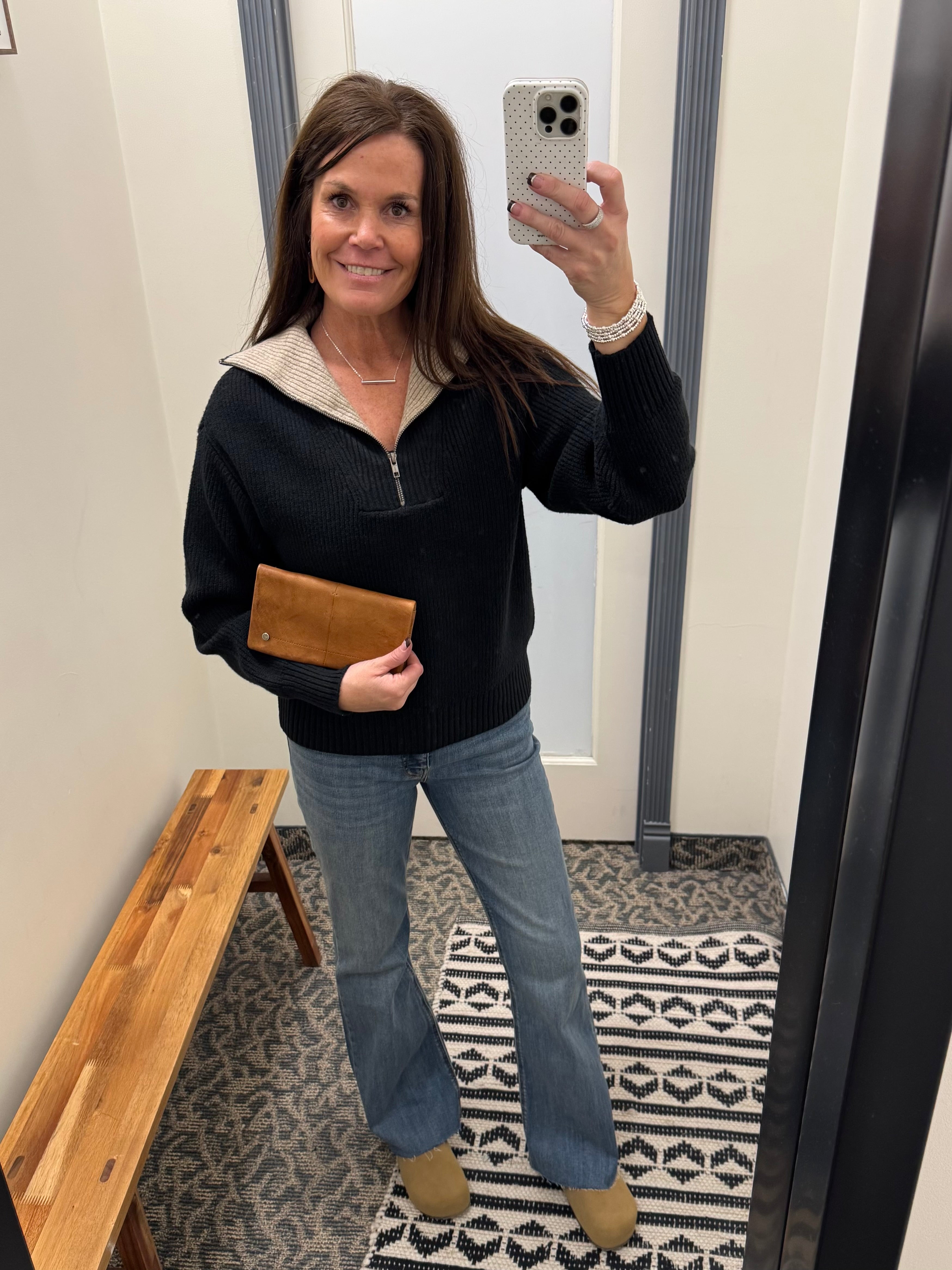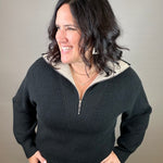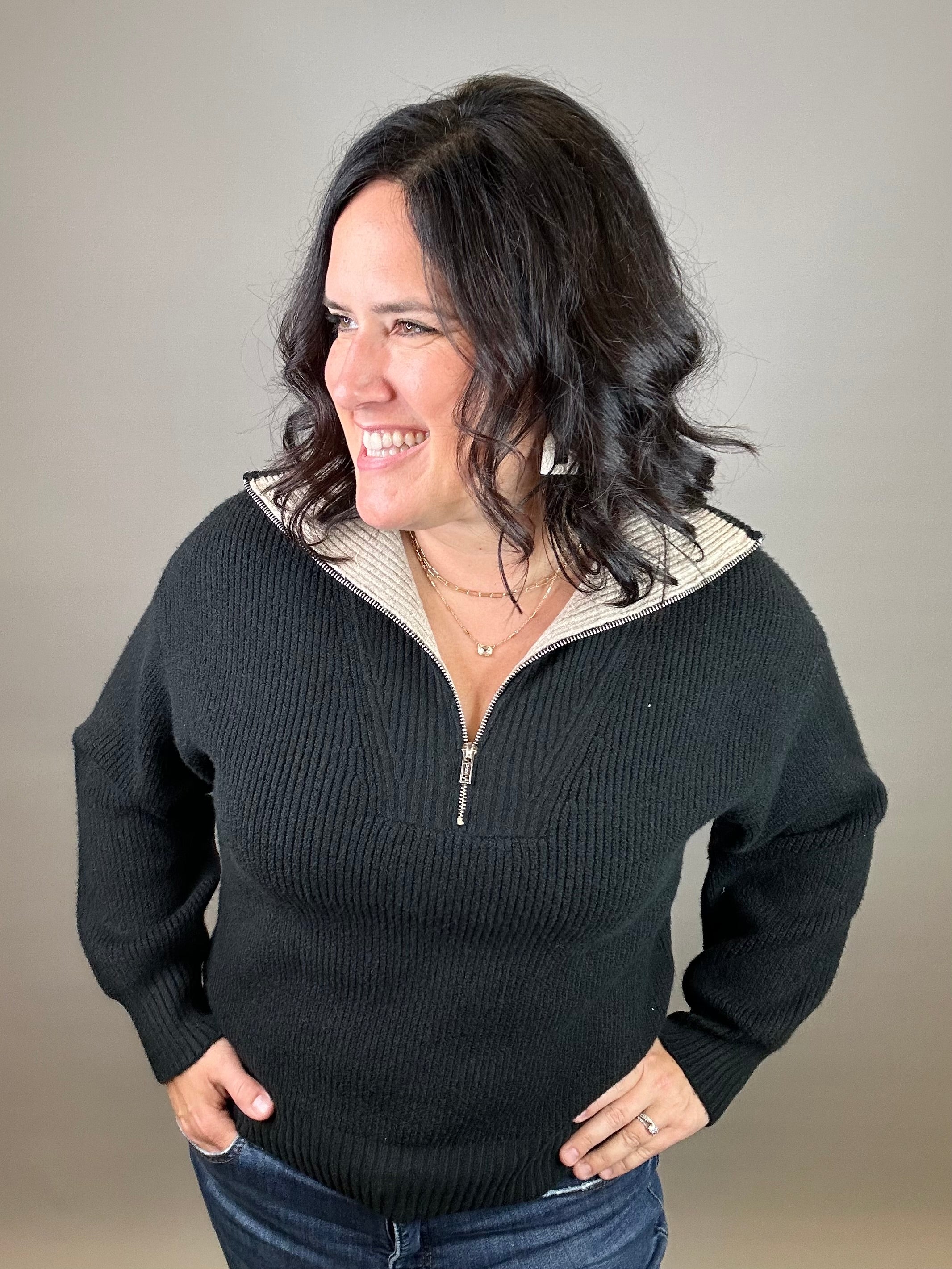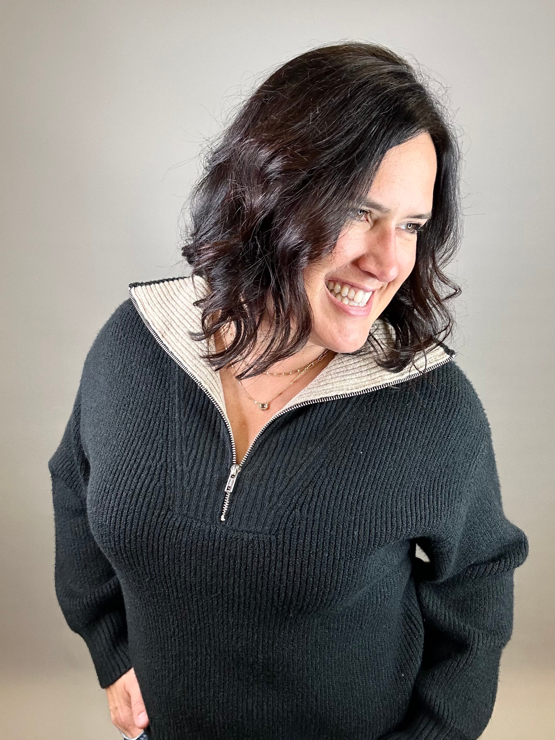The Black Celia Pullover is the versatile, go-anywhere knit your wardrobe has been waiting for. With its ribbed fabrication, high collar, and sleek half-zip design, this piece effortlessly blends timeless style with modern ease.