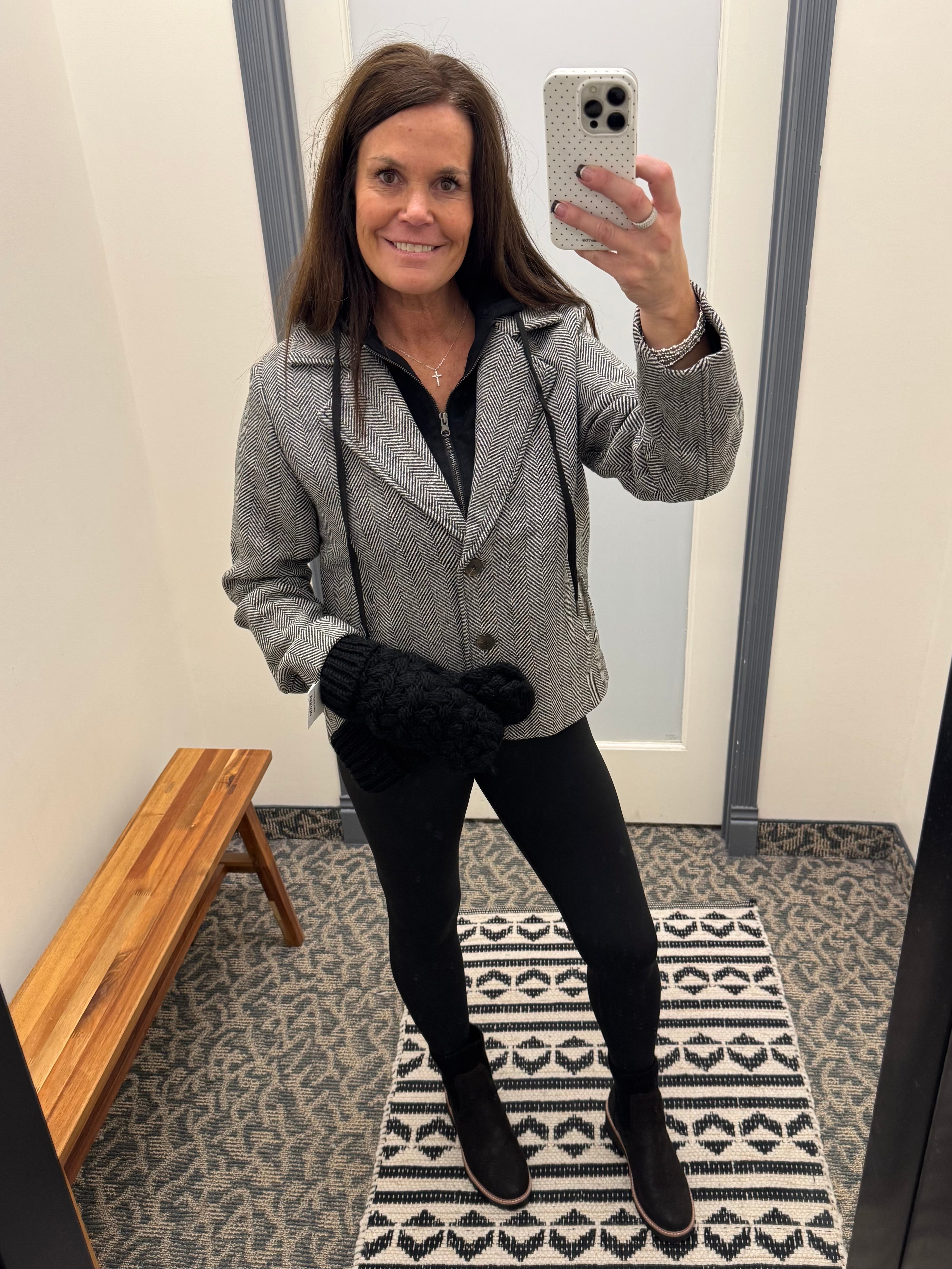 Put-together, confident, and ready to take on the day. The structured shape and tailored details give you a sleek look, while the soft fabric keeps you cozy and comfortable.