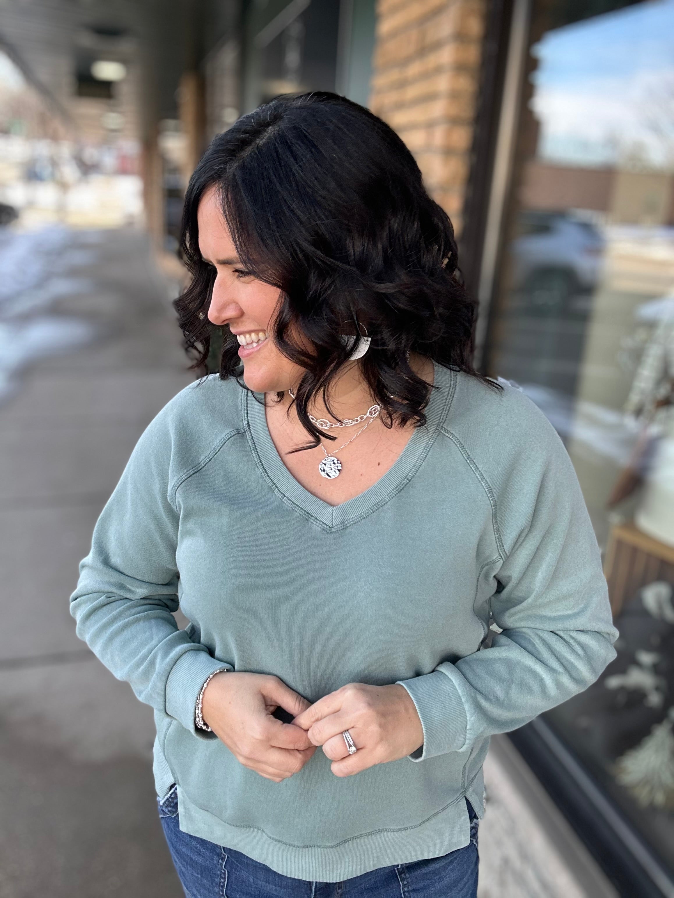 This sweatshirt makes you feel comfortable, confident, and casually put-together. It has that soft, worn-just-right feel that’s cozy without looking sloppy — perfect for busy days when you still want to feel stylish and relaxed.