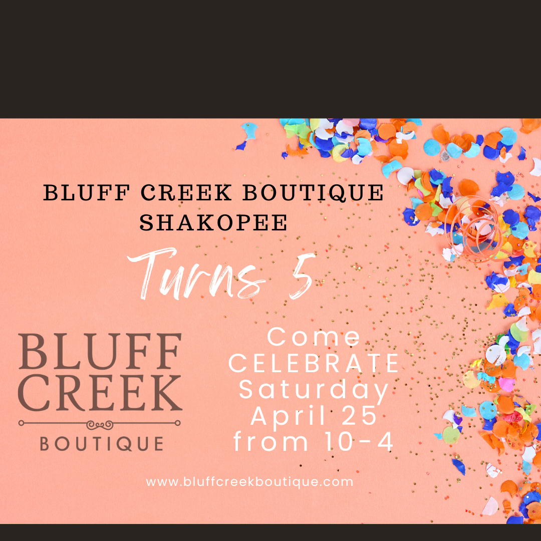 BCB Shakopee turns 5!Come join us for a fun day full of celebrating! Sips, Snacks, our FAMOUS ENVELOPE DRAW, permanent jewelry (10-1) and MORE!First 20 ladies in line will have their chance at winning a $50 gift card to use each month for a YEAR! PLUS more fun to be found in each lucky envelope! Gifts - deals -discounts and giveaways!Come down!! Join us and celebrate the day!AN Amazing SWAG BAG for the first 20 ladies to spend $150+!We CAN'T WAIT to celebrate with you! We are forever grateful for each and every one of you! We will see you Saturday April 25 with your party hats on!